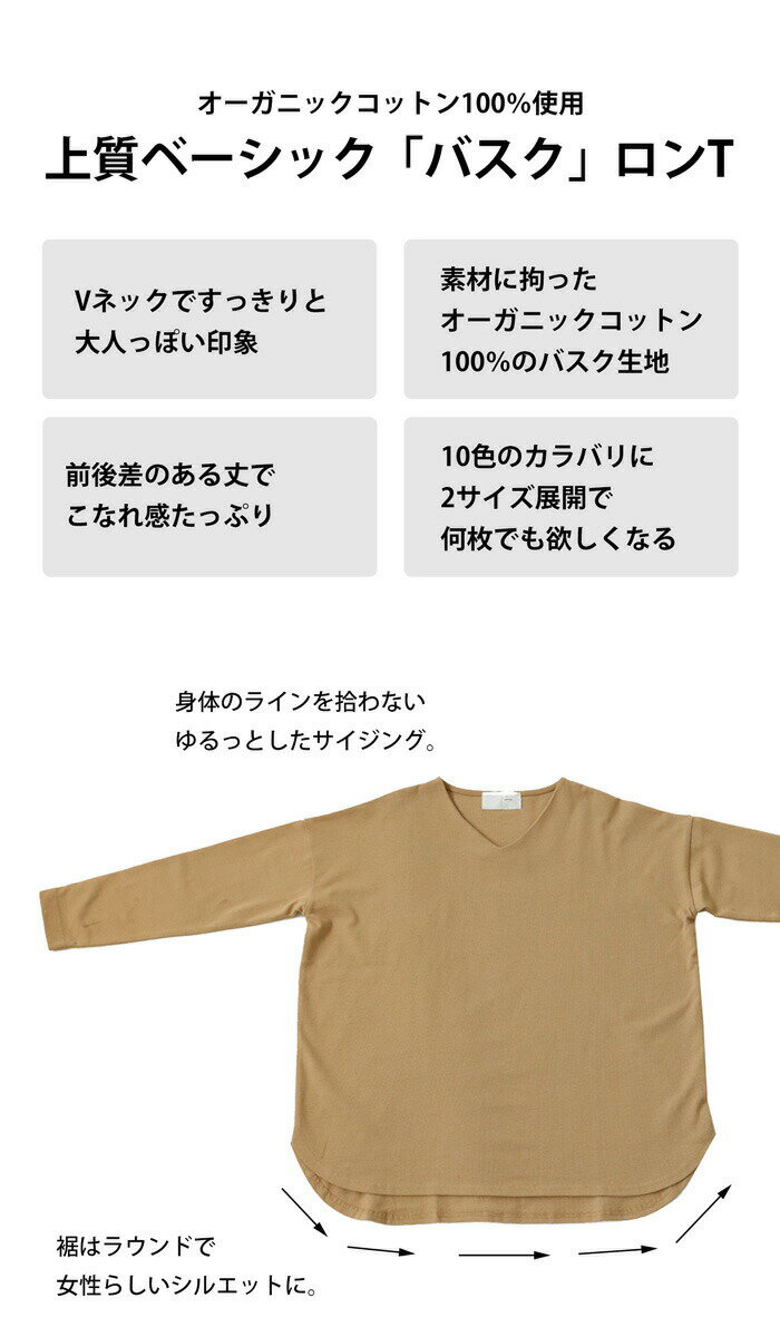 【期間限定!2点購入でさらに20%OFFクーポン!】アウトレット 50%OFF オーガニックコットンバスクT レディース トップス 長袖 綿・メール便不可