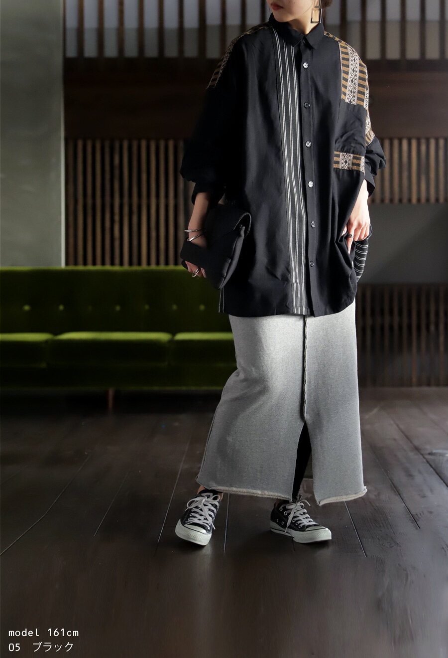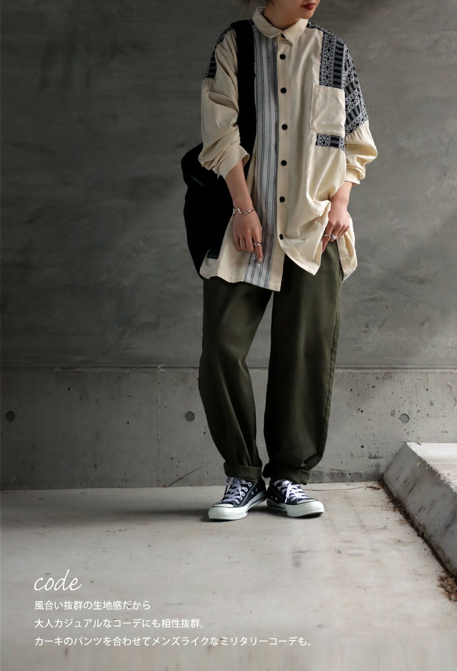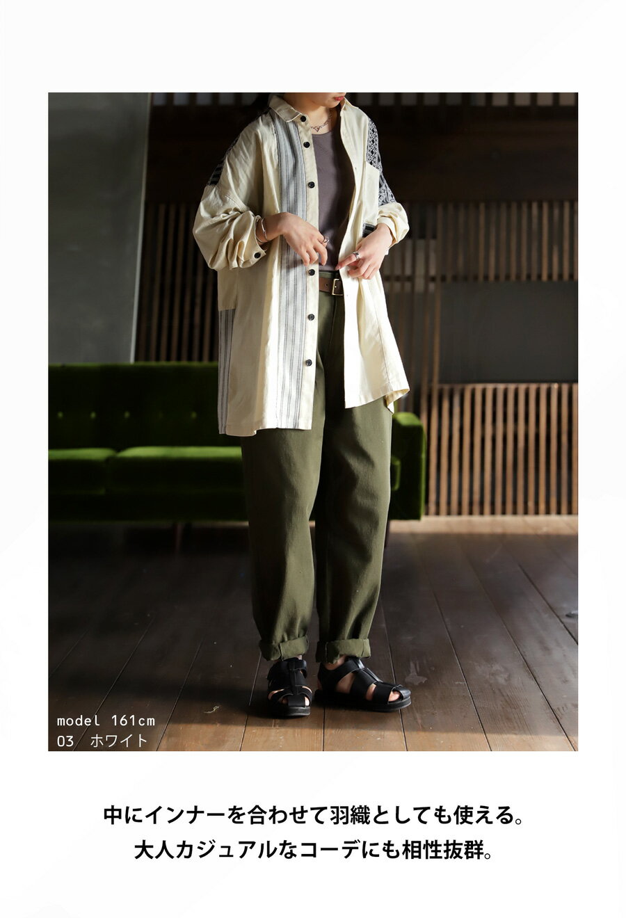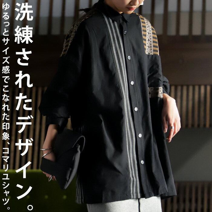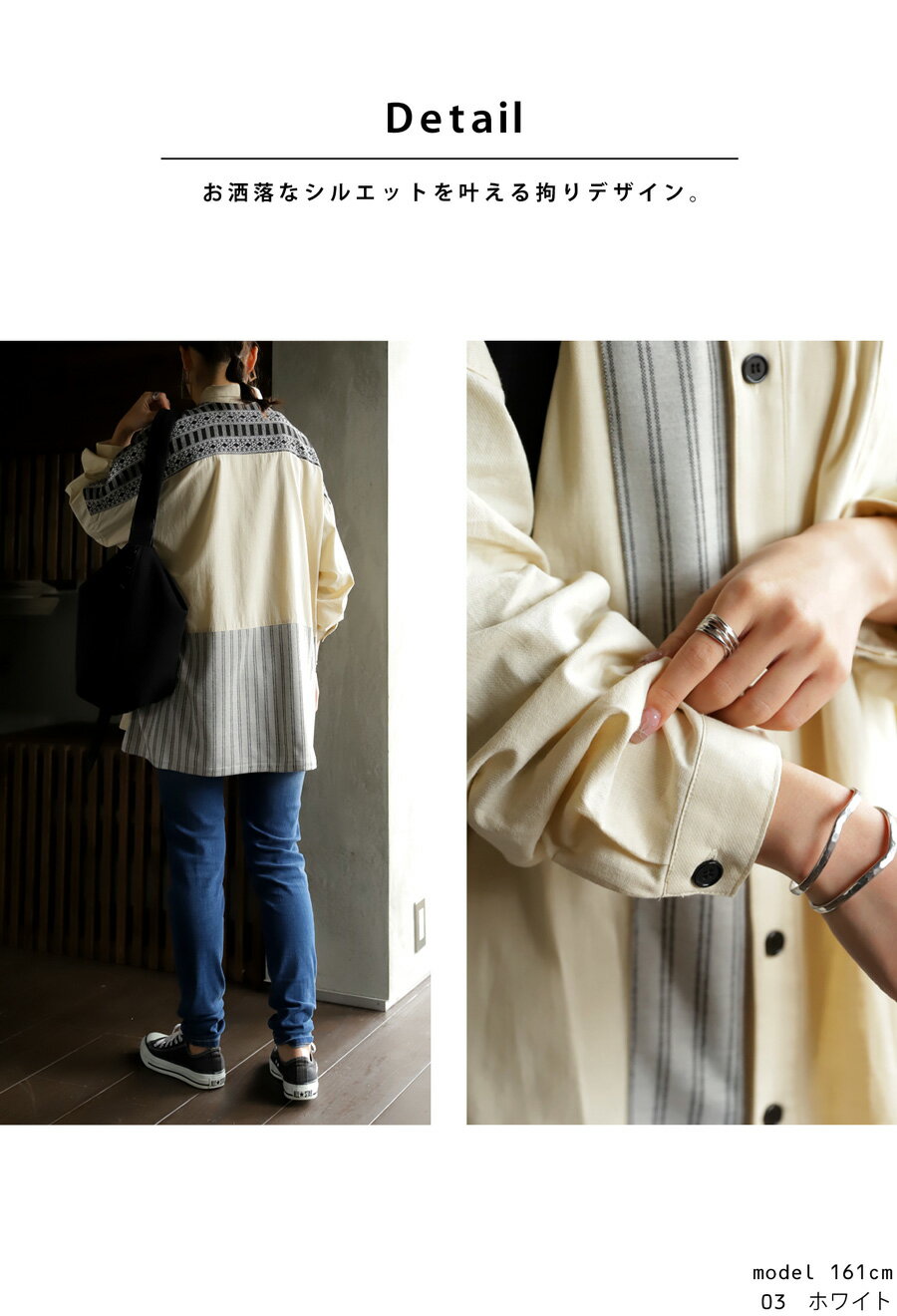トップス シャツ 羽織り 異素材 パッチワーク 綿100% コットン バルーン キリム柄 ジャガード アシメトリー ボリューム ワイド ゆったり ナチュラル カジュアル レトロ ヴィンテージ 大人 レディース おしゃれ 誕生日 プレゼント AminaCollection