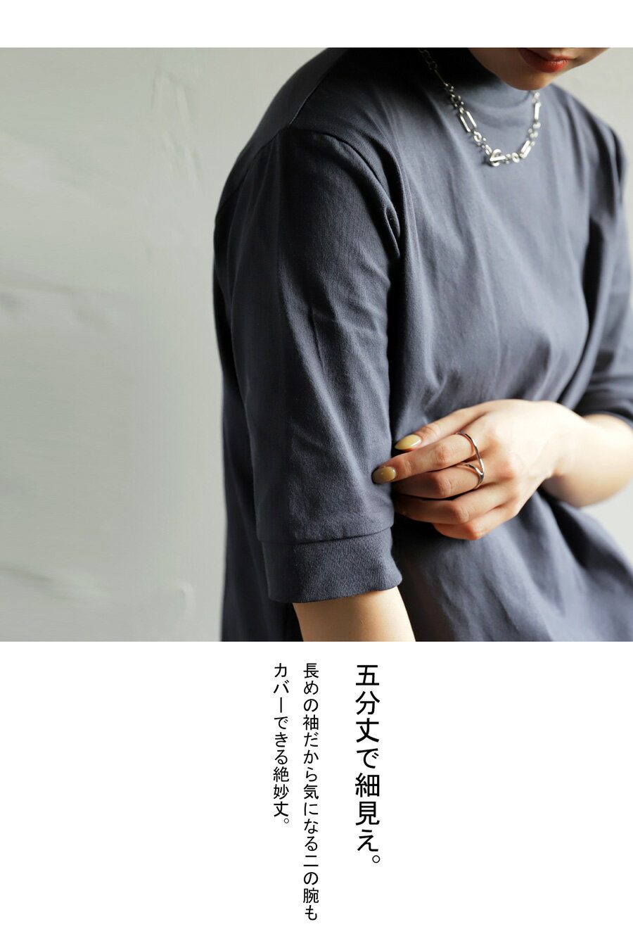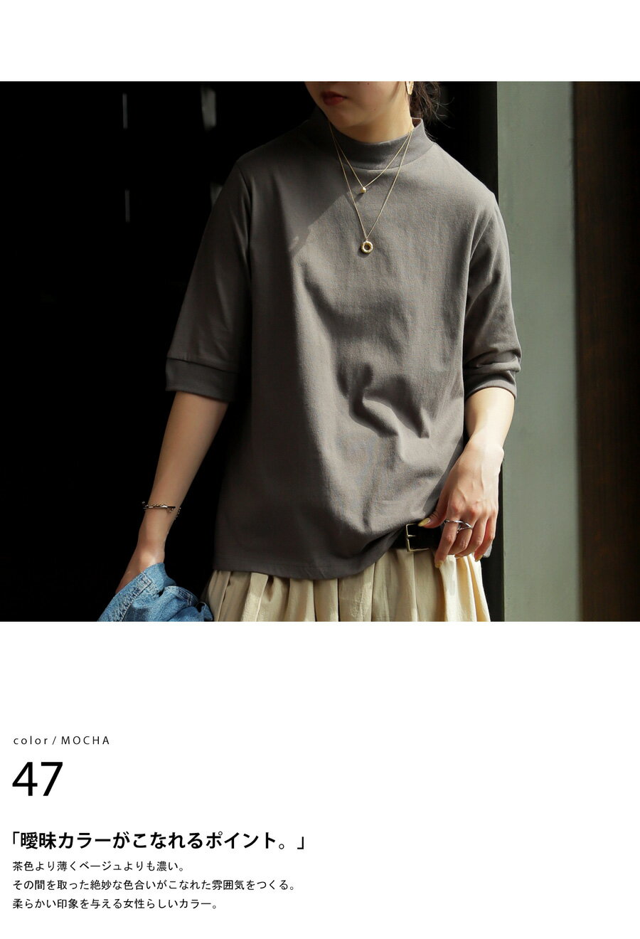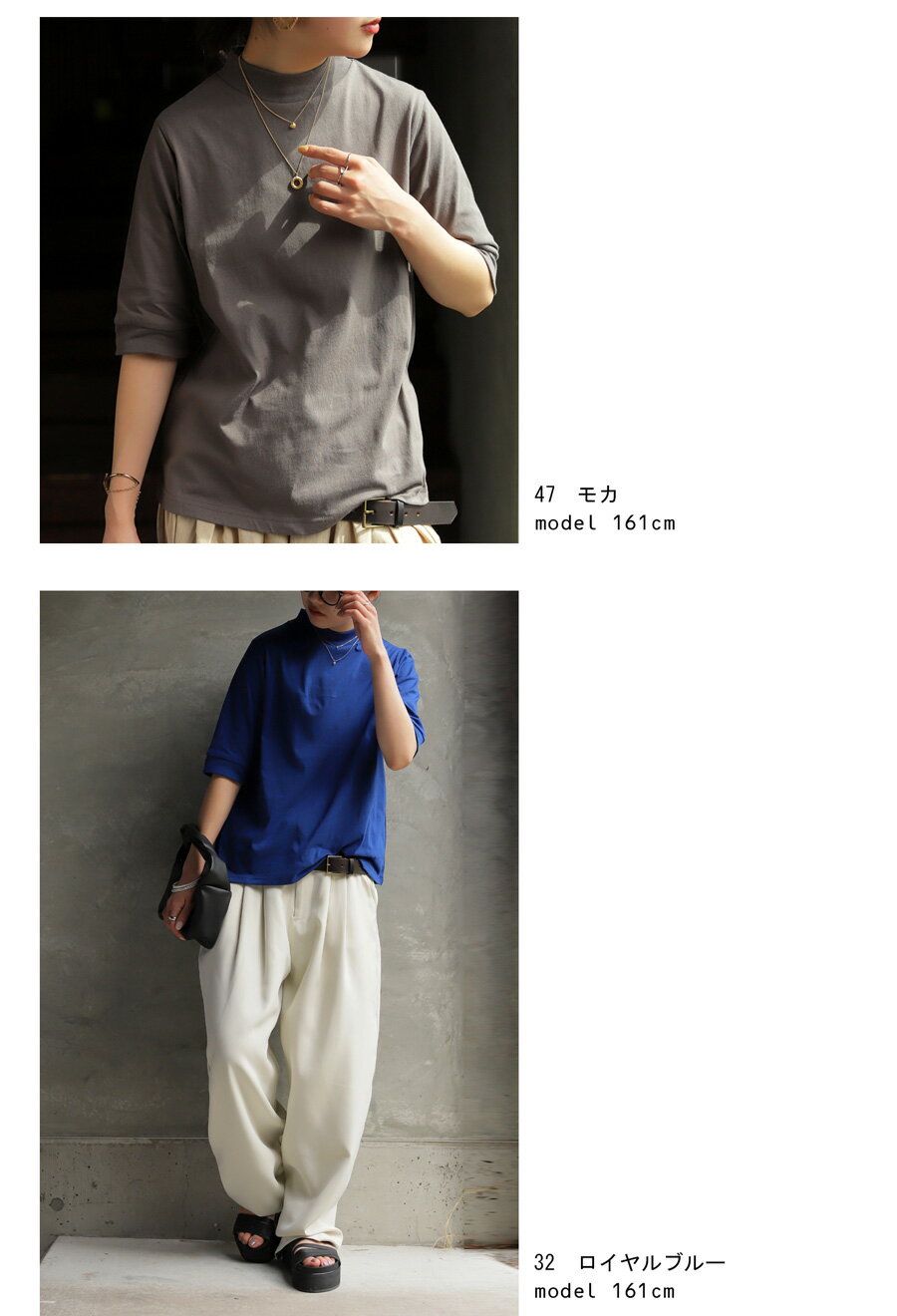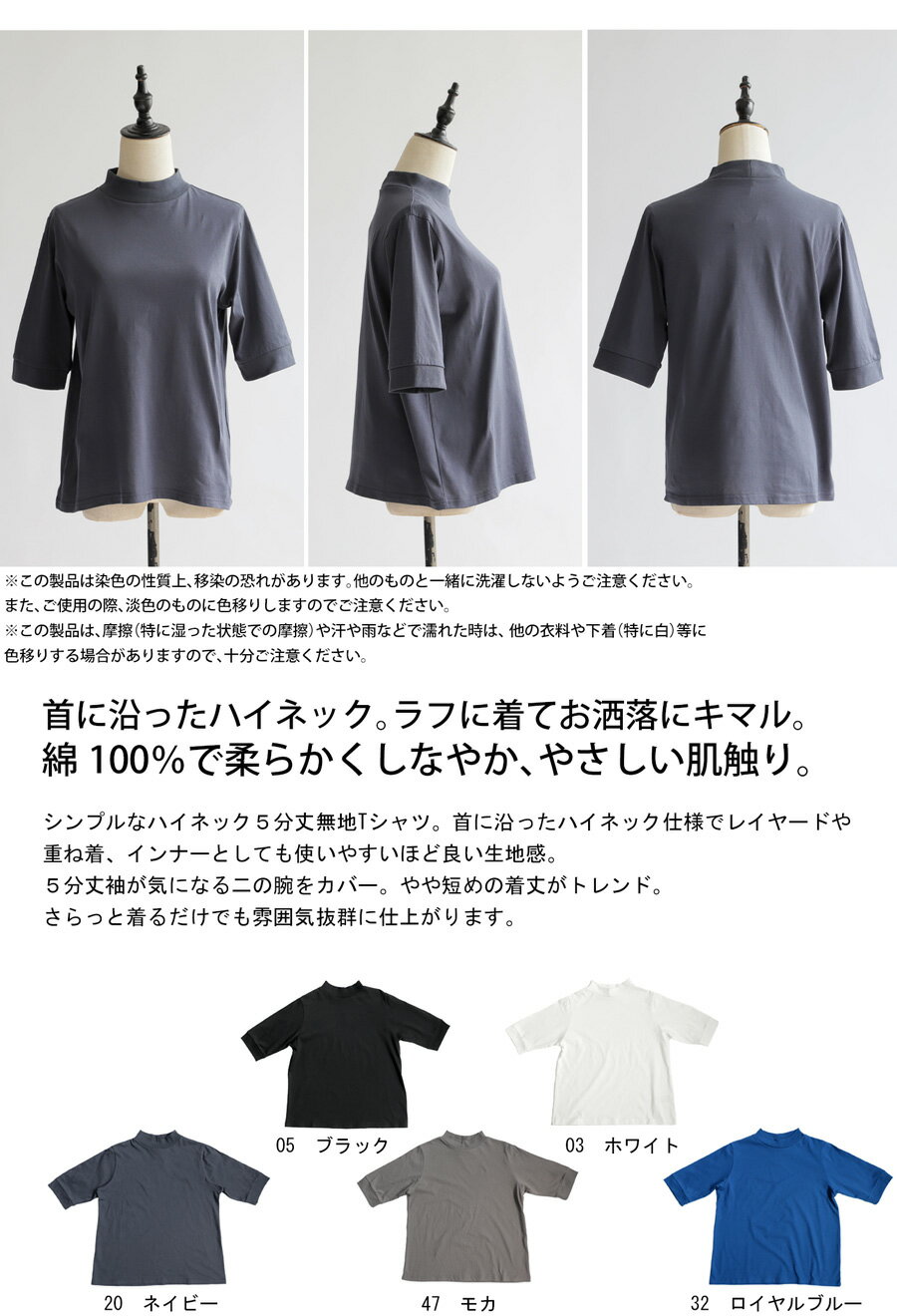 【選べる福袋!まとめ買いクーポン】【再入荷】トップス プルオーバー カットソー 五分袖 Tシャツ 綿 綿100% コットン ハイネック 日焼け対策 ネイビー モカ ロイヤルブルー