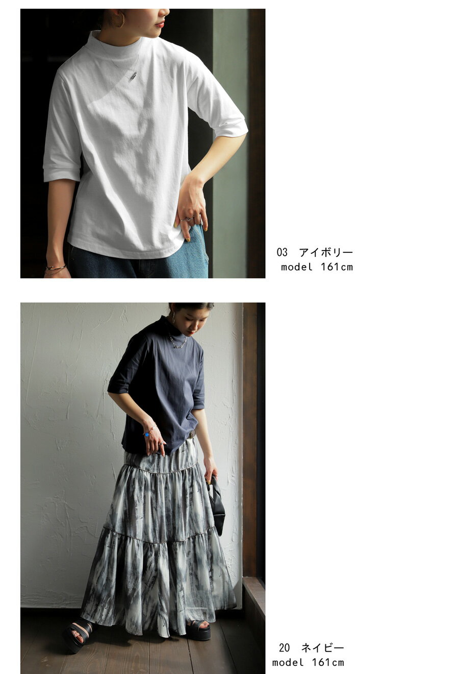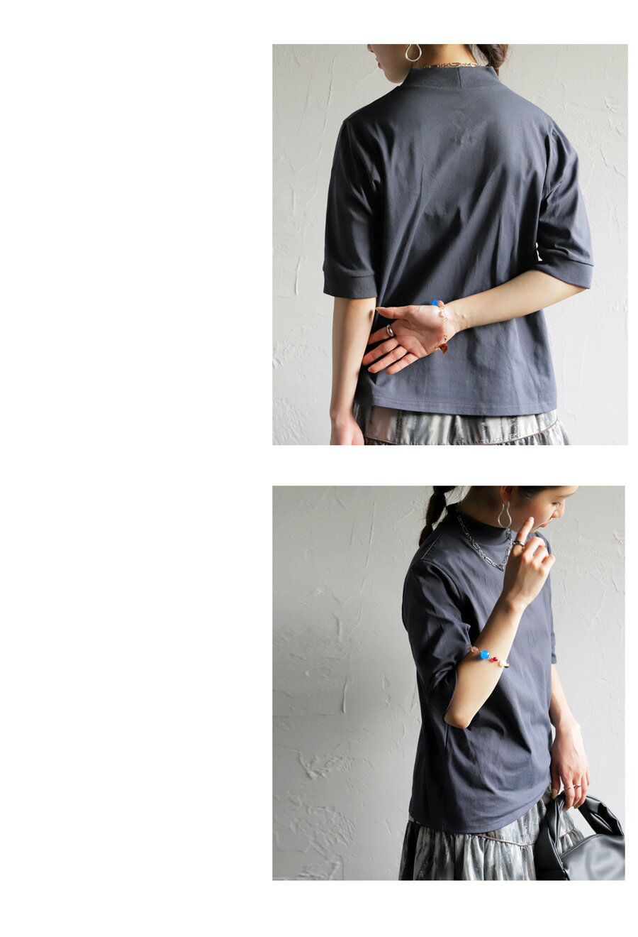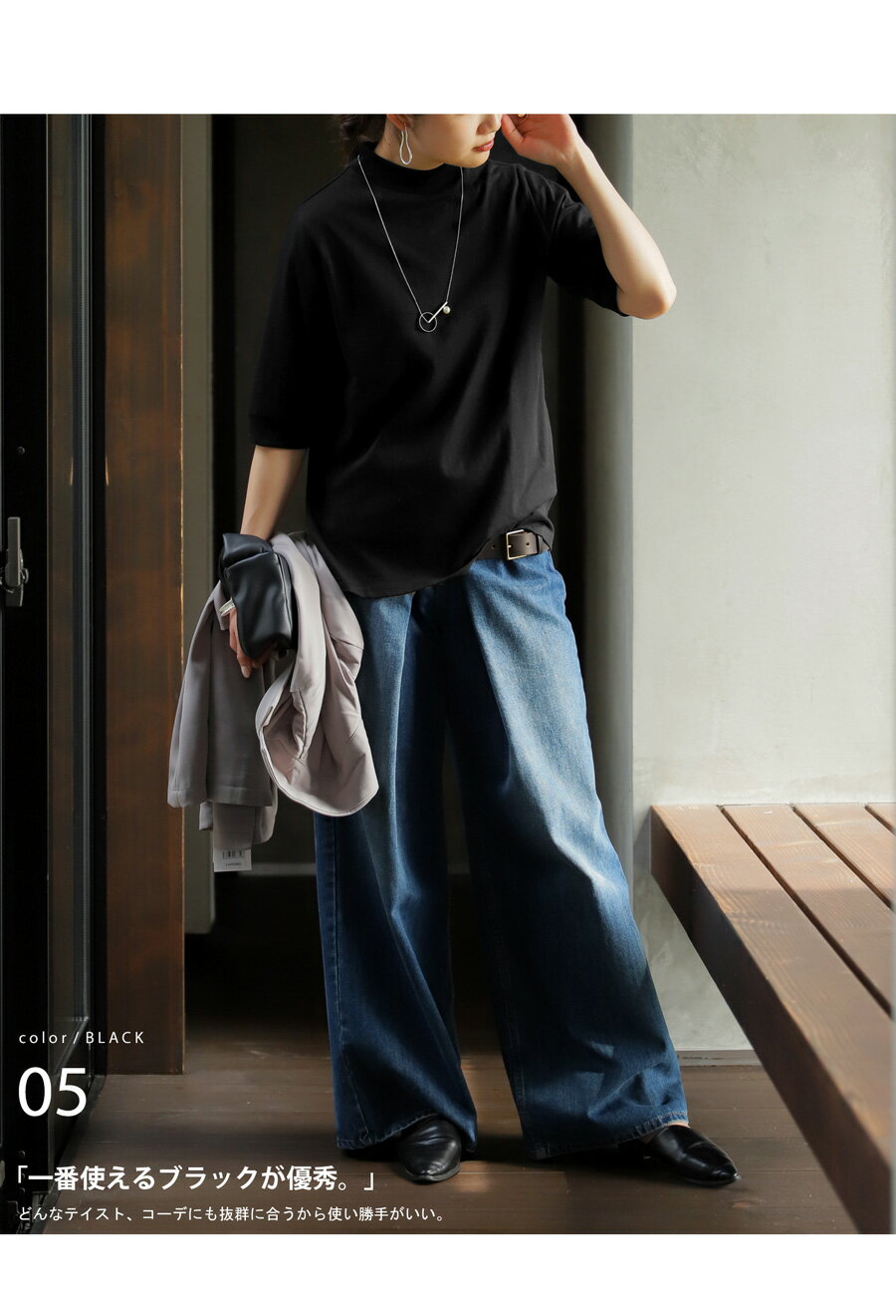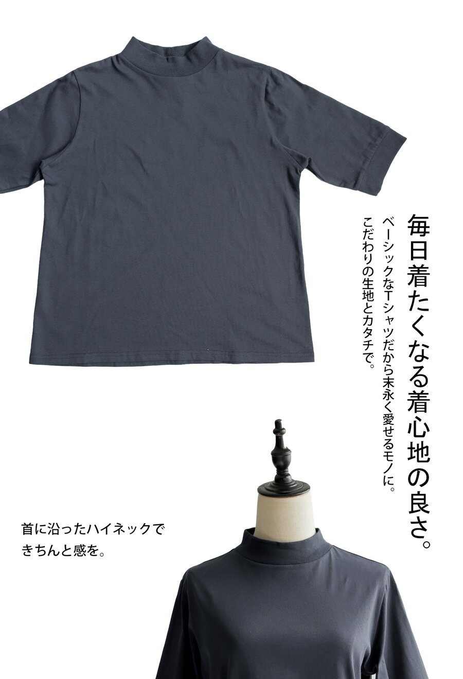 【選べる福袋!まとめ買いクーポン】【再入荷】トップス プルオーバー カットソー 五分袖 Tシャツ 綿 綿100% コットン ハイネック 日焼け対策 ネイビー モカ ロイヤルブルー