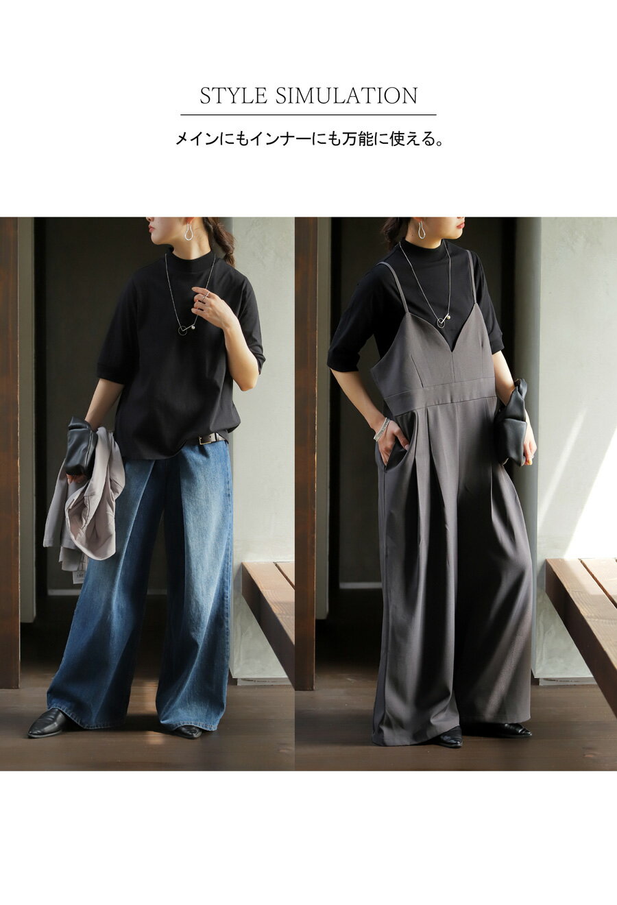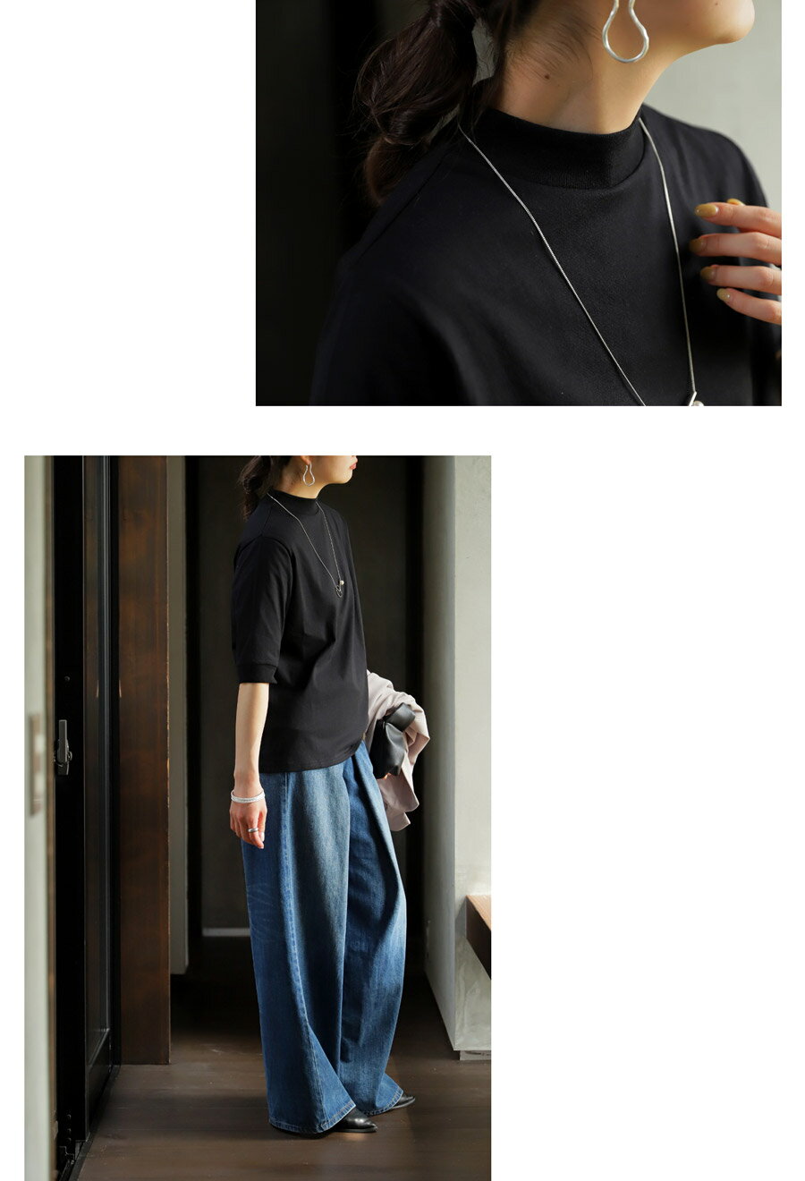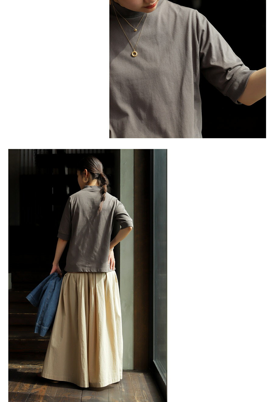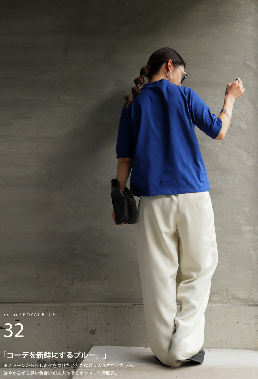 【選べる福袋!まとめ買いクーポン】【再入荷】トップス プルオーバー カットソー 五分袖 Tシャツ 綿 綿100% コットン ハイネック 日焼け対策 ネイビー モカ ロイヤルブルー
