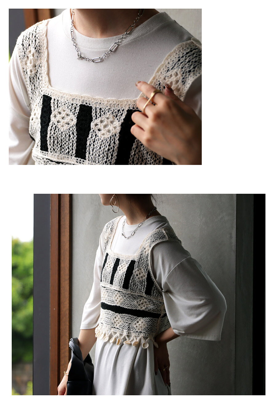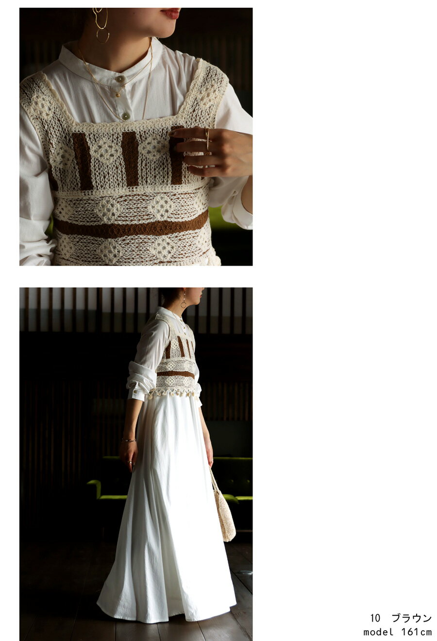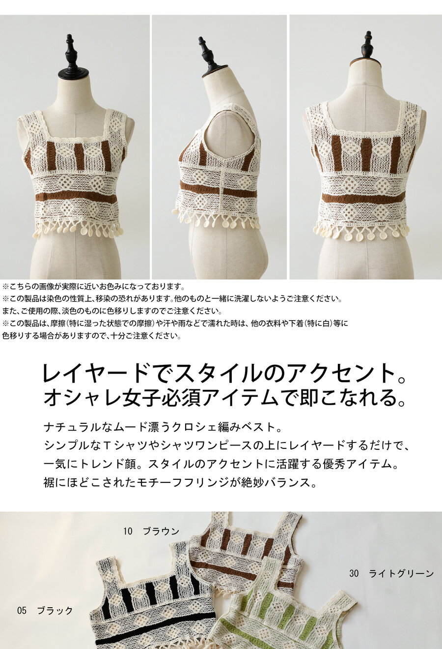 ベスト トップス クロシェ編み クロシェ ニットベスト 羽織り ビスチェ 重ね着 レイヤード ショート丈 トレンド ニュアンスカラー ブラウン ホワイト シンプル ナチュラル カジュアル レトロ 春夏 大人 レディース おしゃれ かわいい 誕生日 プレゼント ◎メール便可!