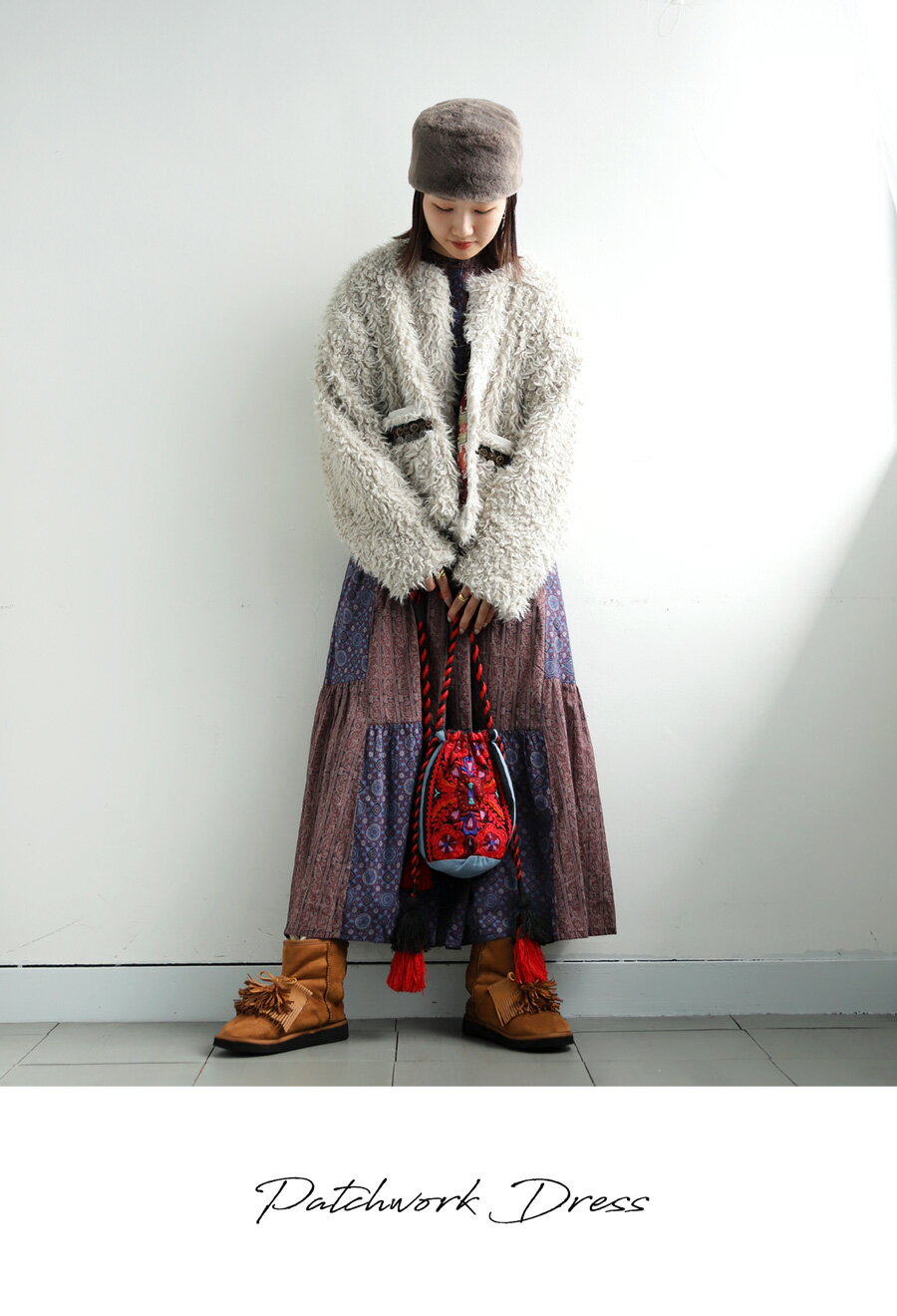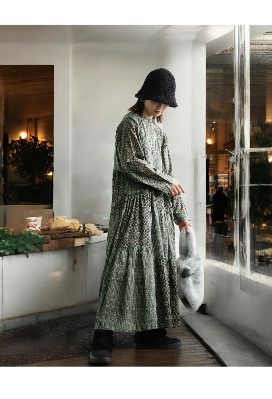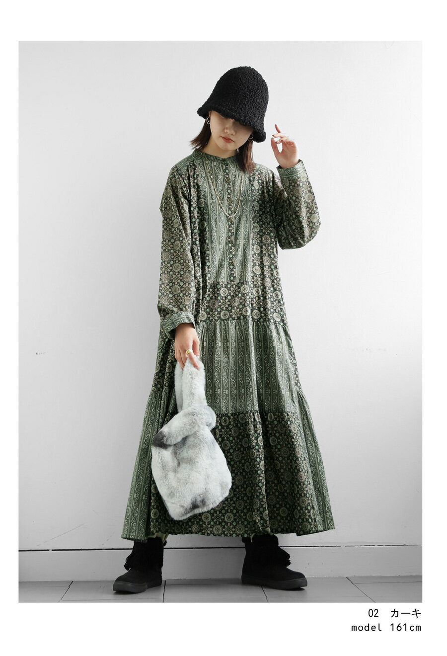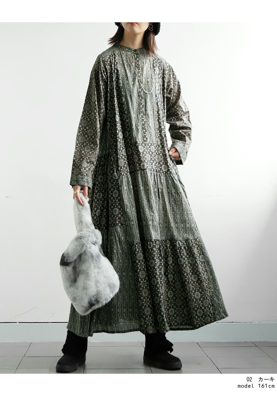 トップス ワンピース ワンピ 長袖 ロング ロングワンピ レーヨン 綿100% コットン ペイズリー柄 アジュラック柄 総柄 ギャザー パッチワーク ゆったり ナチュラル カジュアル レトロ 大人 レディース おしゃれ 誕生日 プレゼント AminaCollection