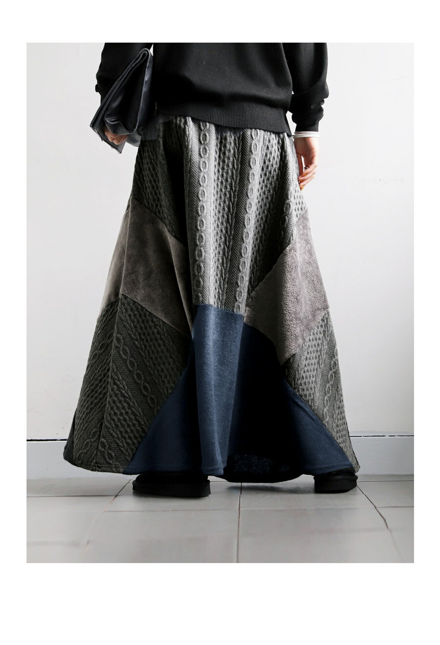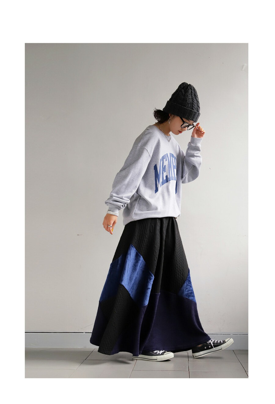 ワイドスカート スカート ロングスカート ボトムス ロング丈 マキシ丈 ベロア ニット ニットスカート 秋冬 大きめ ナチュラル カジュアル レトロ ヴィンテージ 秋冬 ブラック グレー グリーン 大人 レディース おしゃれ 誕生日 プレゼント AminaCollection