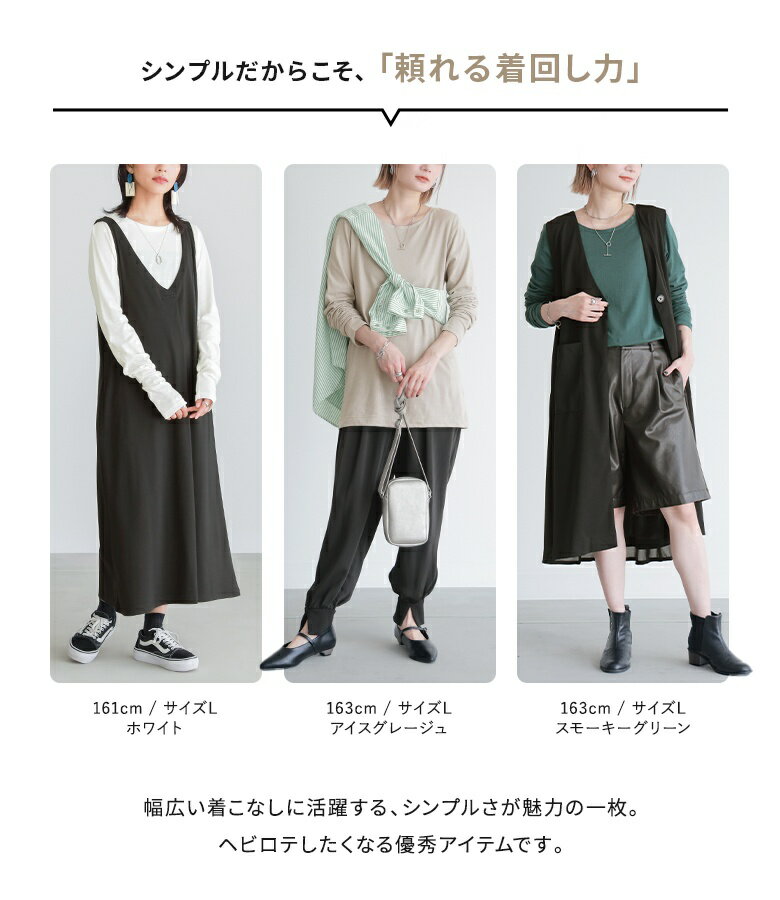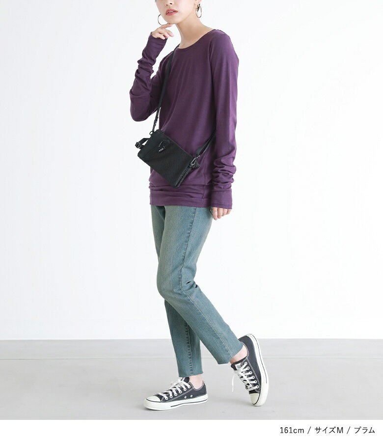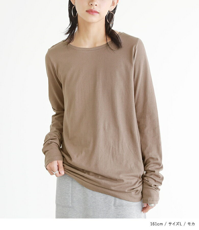 トップス ロンT Tシャツ インナー レディース カットソー ロングTシャツ 長袖 クルーネックTシャツ レイヤード Uネック 丸首 無地 シンプル コットン100% 綿100% 日本製 重ね着 お尻が隠れる 丸首 春 夏 秋 冬 春夏 秋冬 オシャレウォーカー ※メール便可※【5】