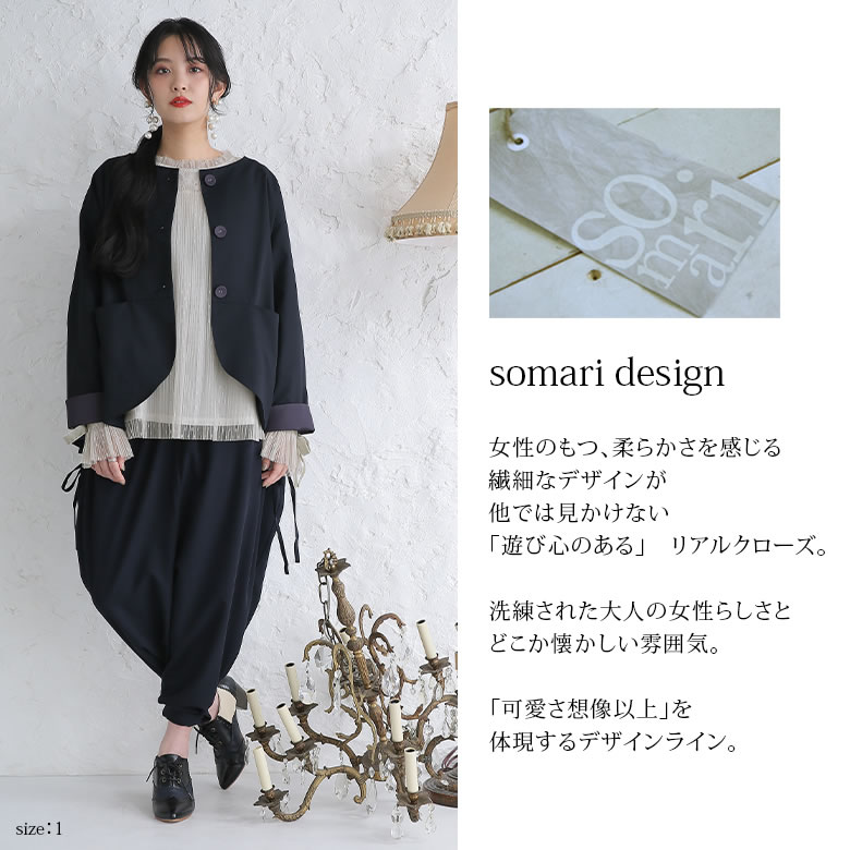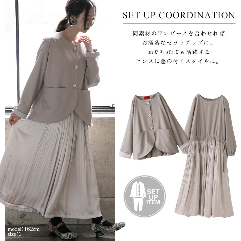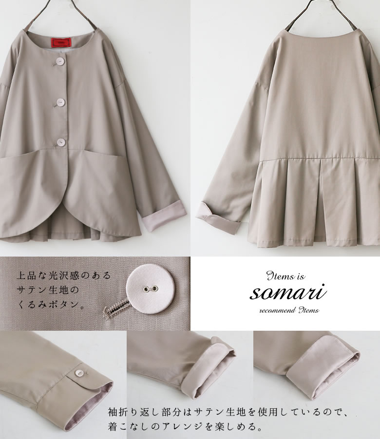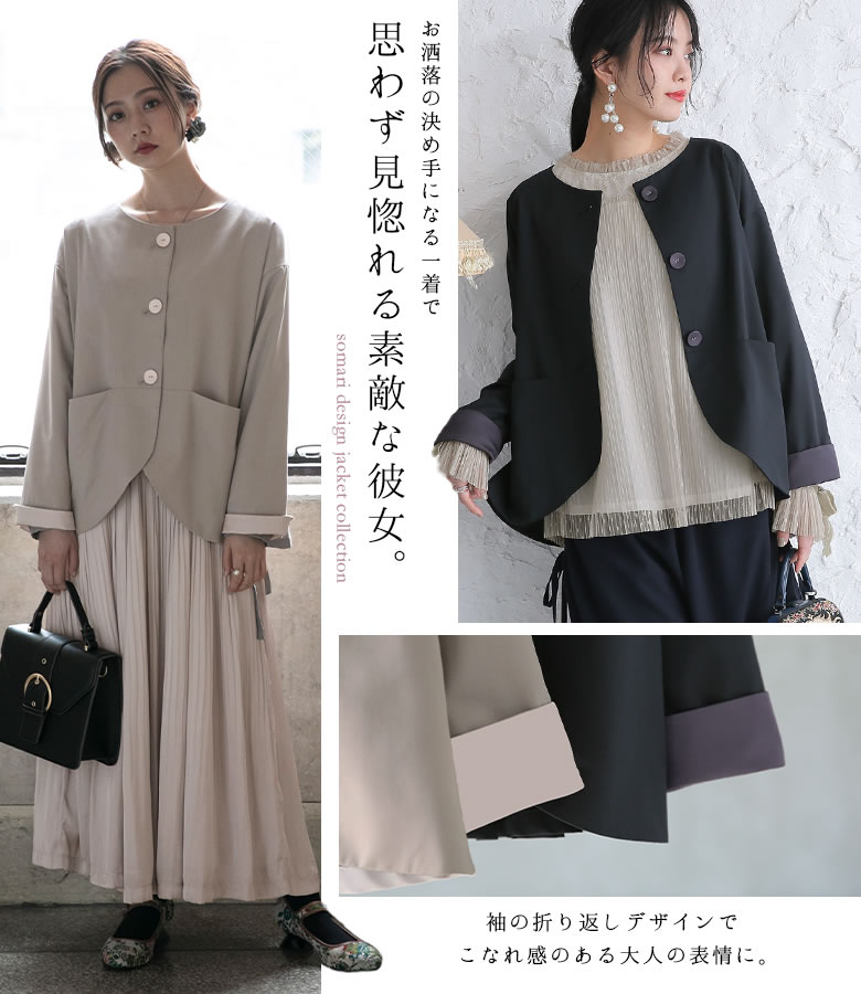 『タックデザインノーカラージャケット』[somari imagination ジャケット レディース ライトアウター スプリングコート セットアップ 長袖 フォーマル 結婚式 パーティー]【メール便不可】【20】