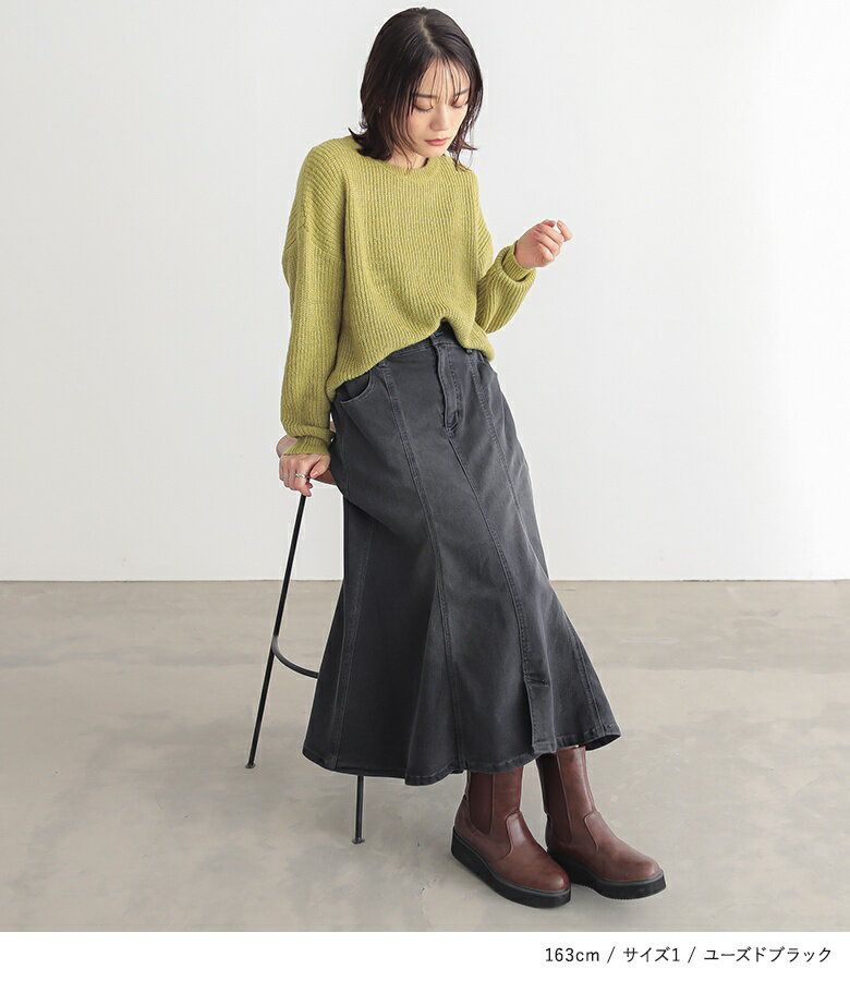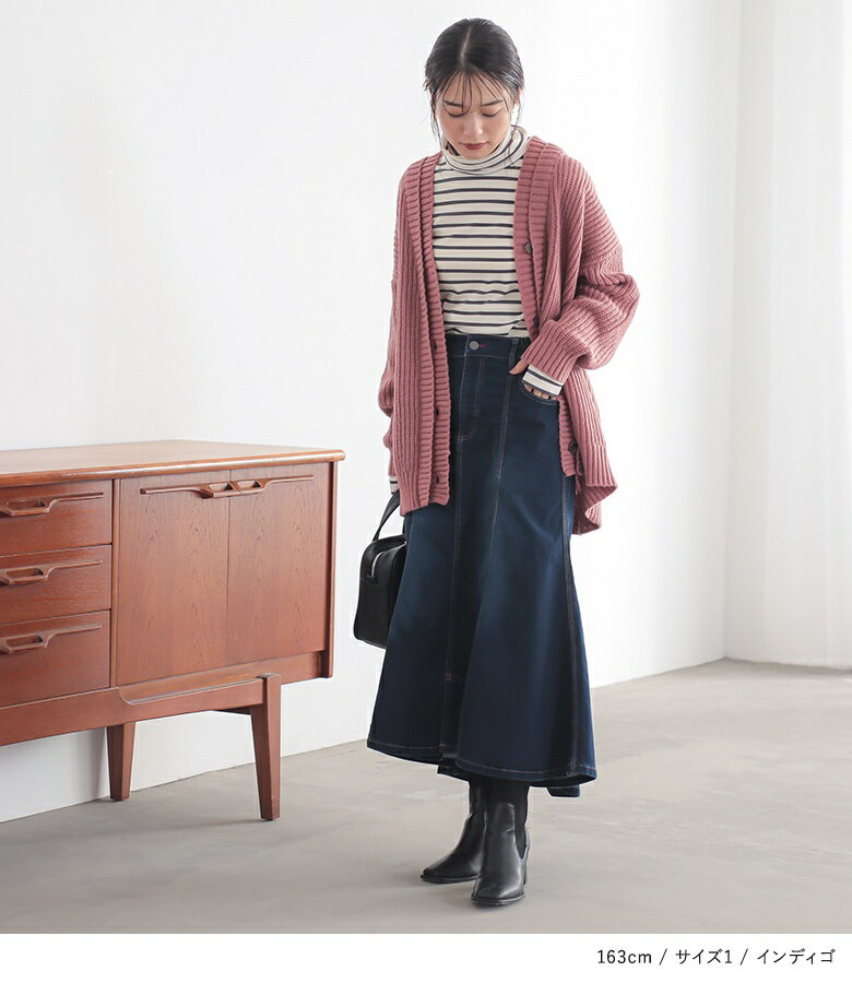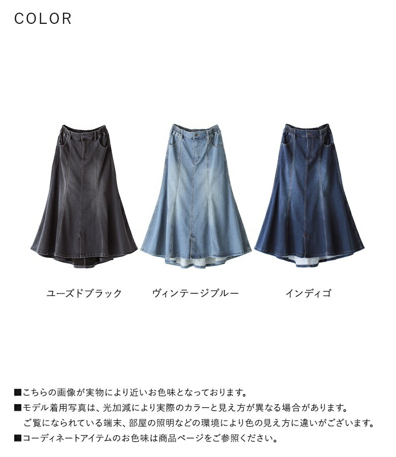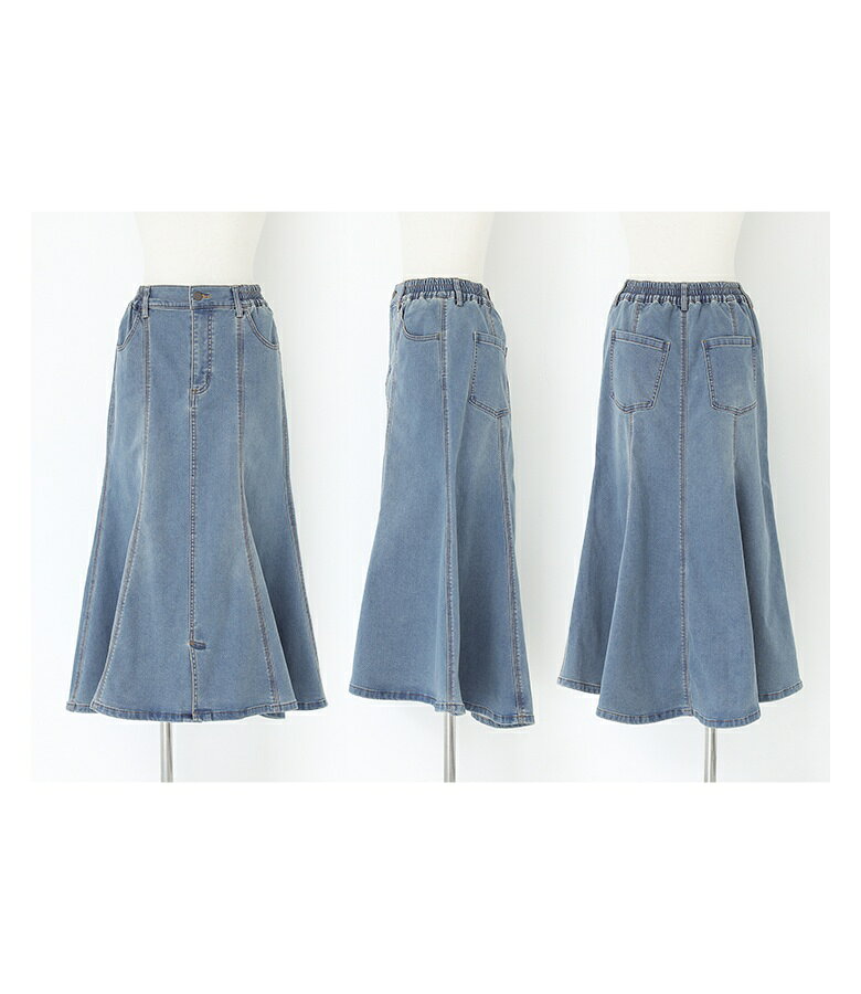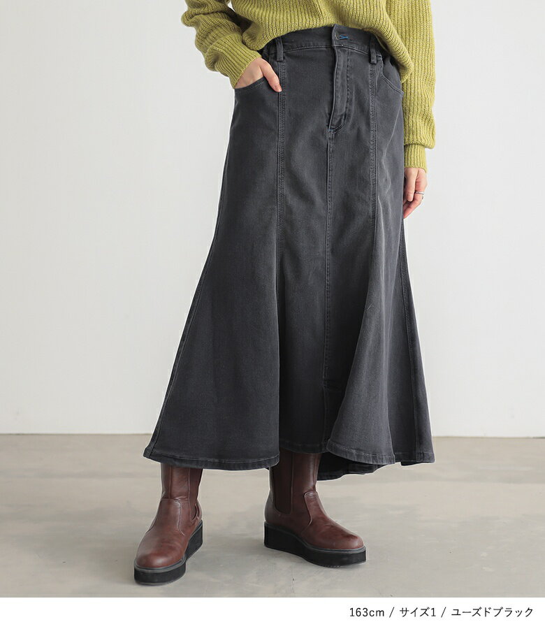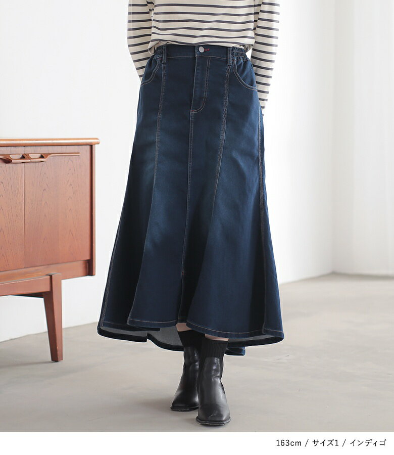 【全品送料無料】デニムスカート レディース ロング マキシ フレアスカート マーメイドスカート 裏起毛 ストレッチ 伸びる ウエストゴム パウダー加工 防寒 あったかボトムス カジュアル ヴィンテージ モード シンプル オシャレウォーカー【メール便不可】【30】