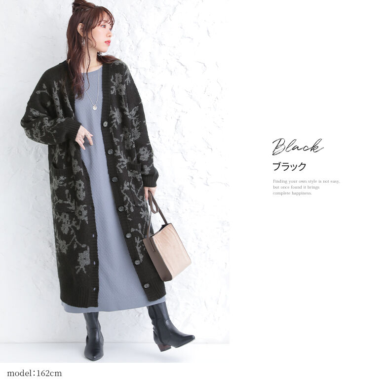 [1/31 23:59迄クーポンで10%OFF]『モヘヤタッチ花柄ジャカードニットロングカーディガン』[n'OrLABEL ロング ニットカーディガン レディース 秋冬 トップス 羽織 長袖 深Vネック 配色 ローゲージニット ジャガード]【メール便不可】【50】