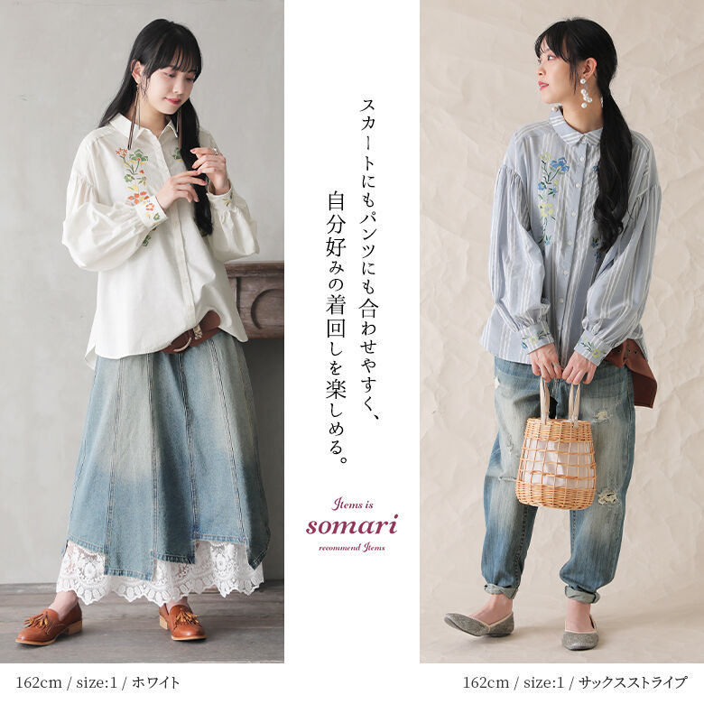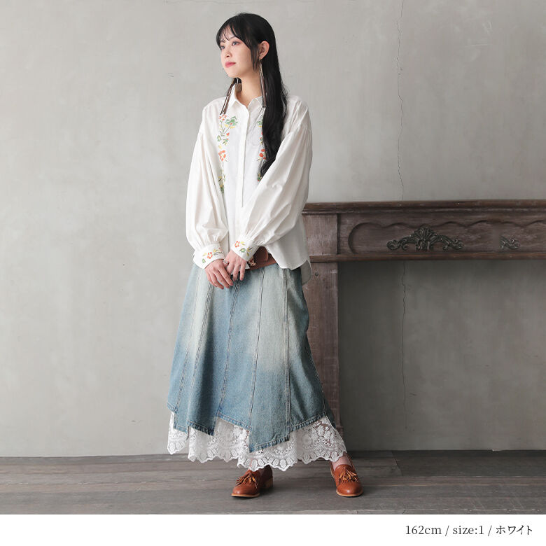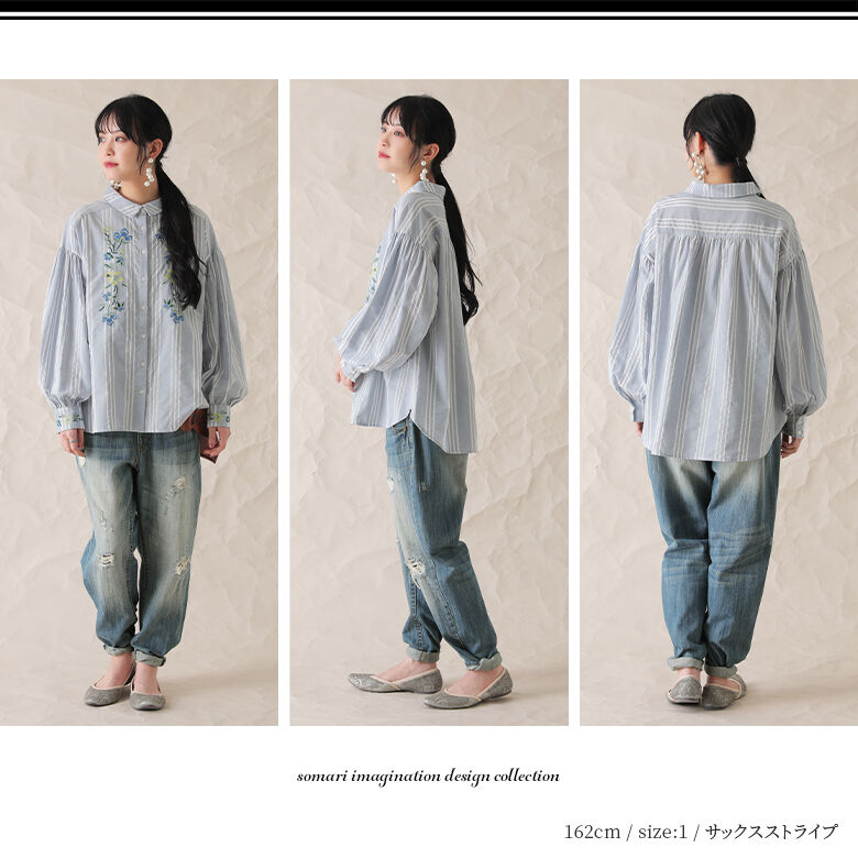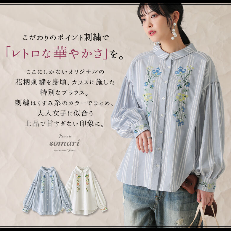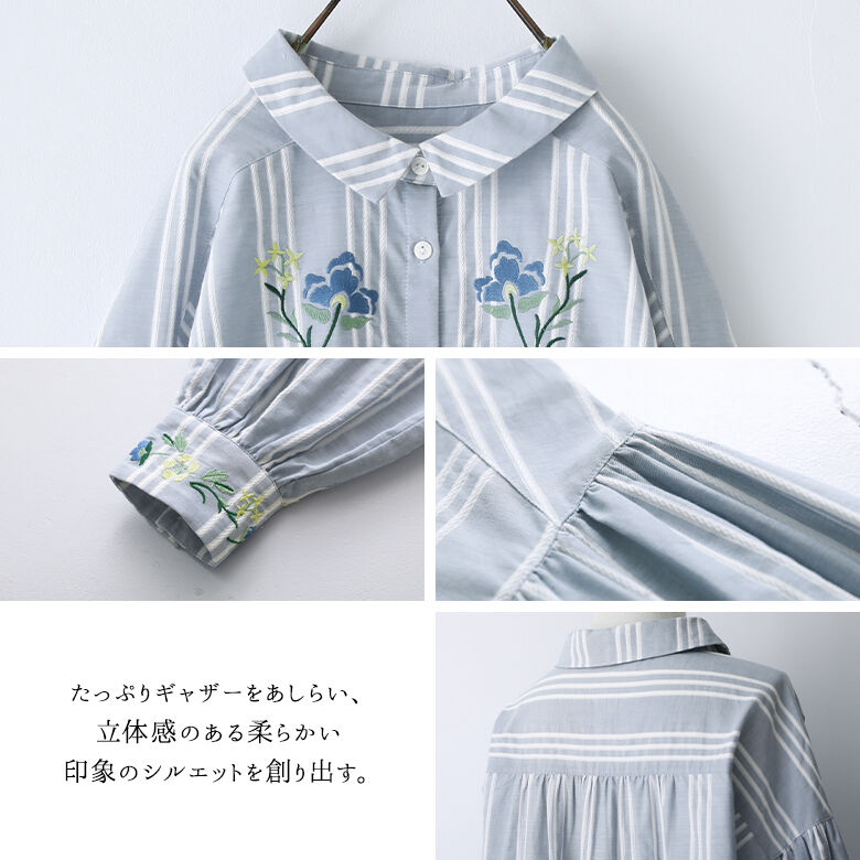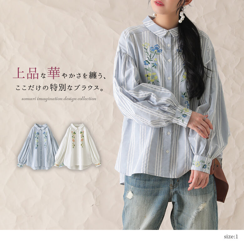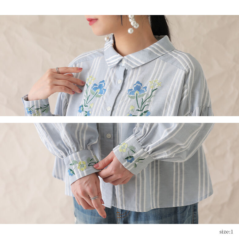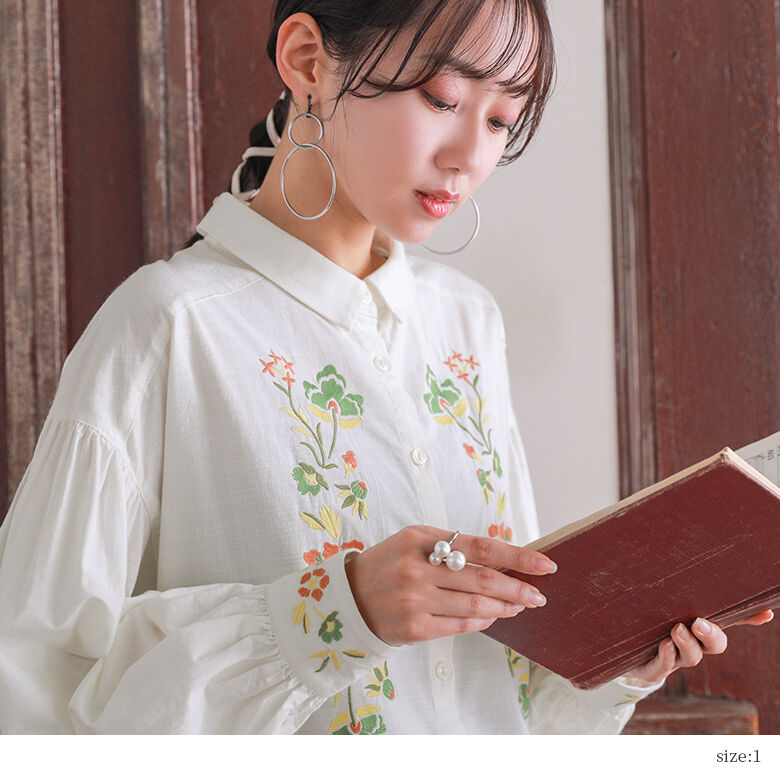 [12/26 1:59迄クーポンで最大20%OFF]ブラウス シャツ レディース トップス ボタンシャツ 前開きシャツ 襟付きシャツ 柄シャツ 襟付き 長袖 パフスリーブ ぽわん袖 バルーン袖 ボリューム袖 花柄 フラワー フレア 無地 綿混 コットン【メール便不可】【20】