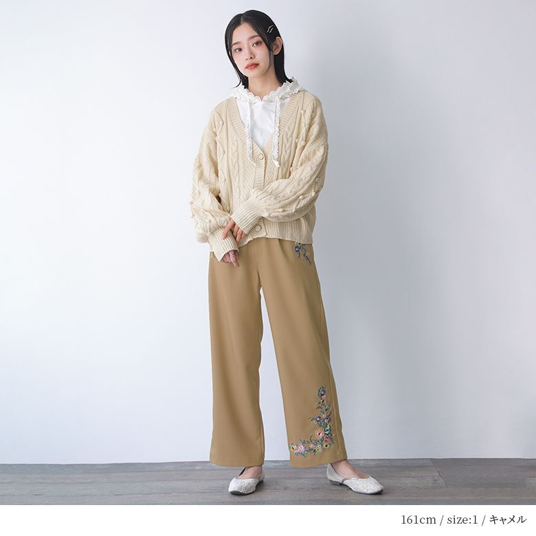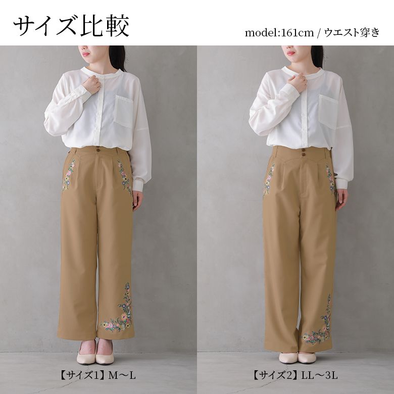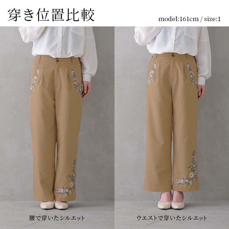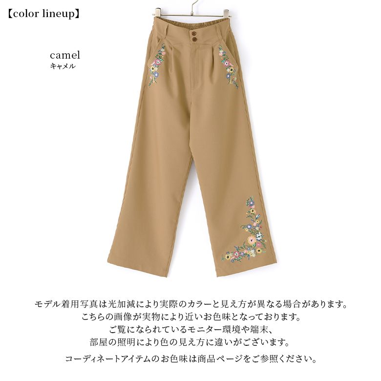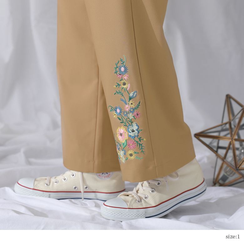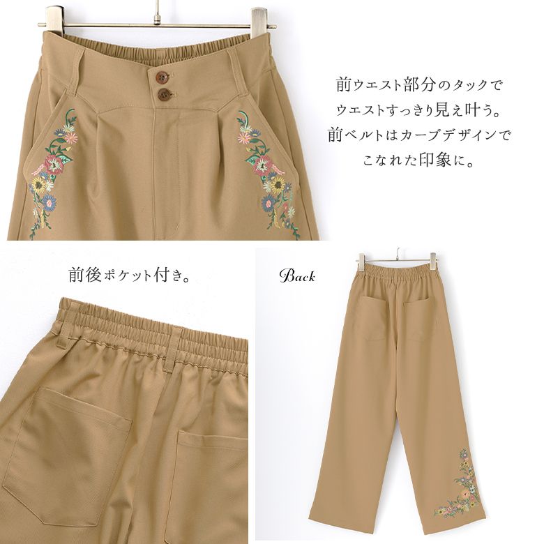 【50%OFF】『花柄刺繍ストレートワイドパンツ』[somari imagination ロング パンツ レディース ボトムス ストレート ワイド タックパンツ フラワー 刺繍 ツイル生地 ウエストゴム]◇【メール便不可】【20】