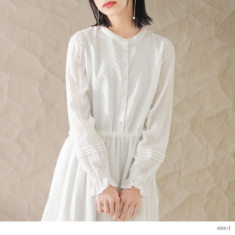 【全品送料無料】『ドットドビーコットンティアードワンピース』[somari imagination ロングワンピース レディース 長袖 バンドカラー 裏地付き キャンディスリーブ レース リボン]【メール便不可】【30】