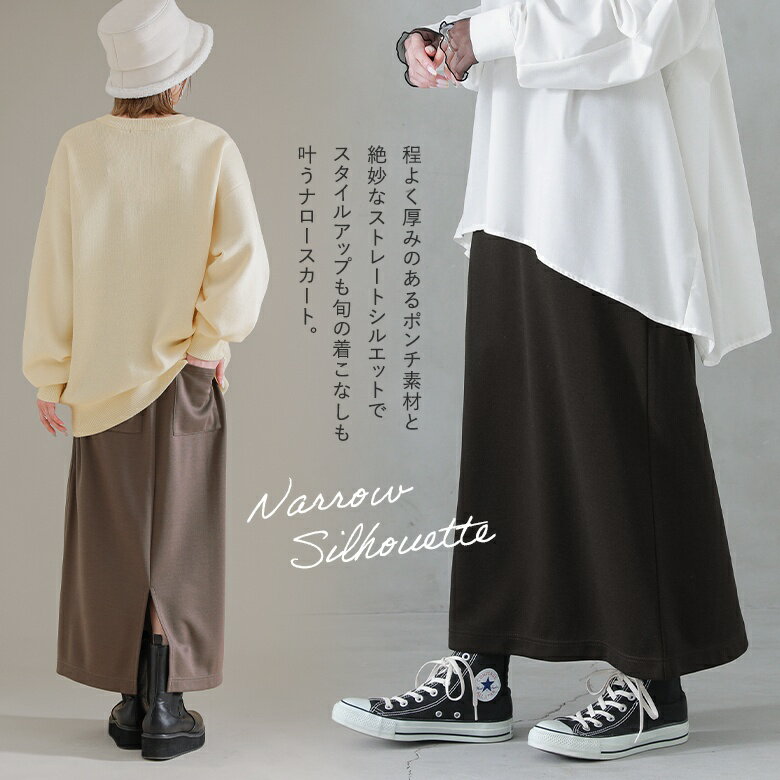 【全品送料無料】ロングスカート レディース ボトムス スカート ナロー ストレート ロング丈 フルレングス ウエストゴム バックスリット スラッシュ開き 無地 動きやすい ポンチ素材 カットソー ストレッチ 伸縮性 伸びる オシャレウォーカー【メール便不可】【20】