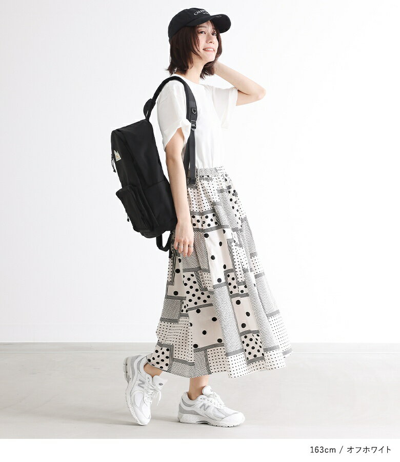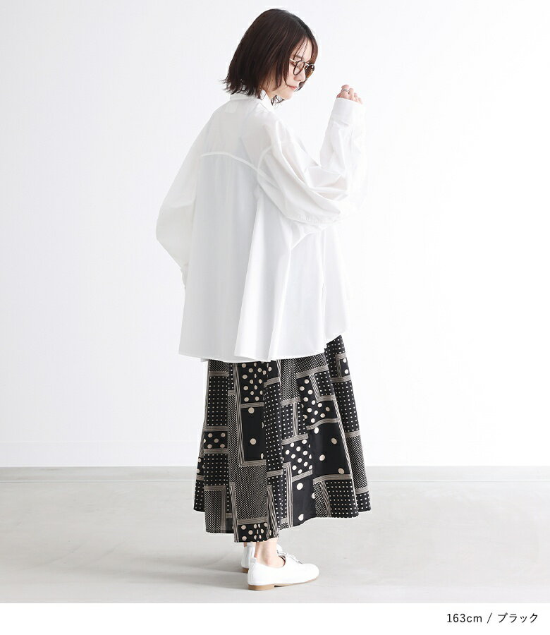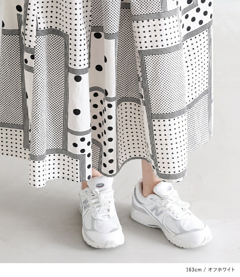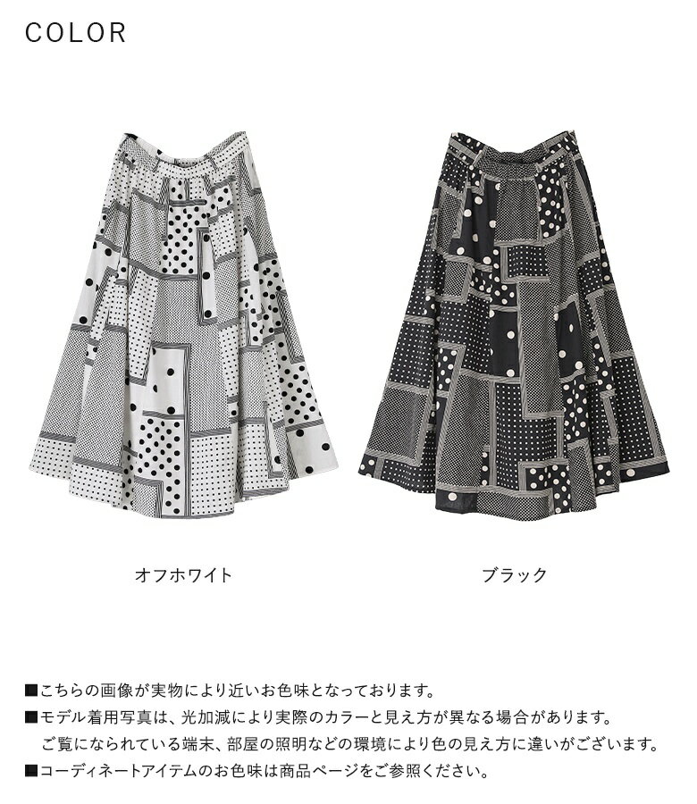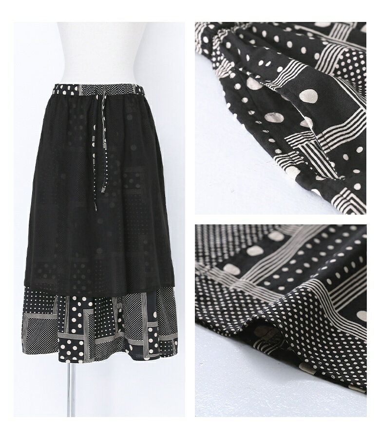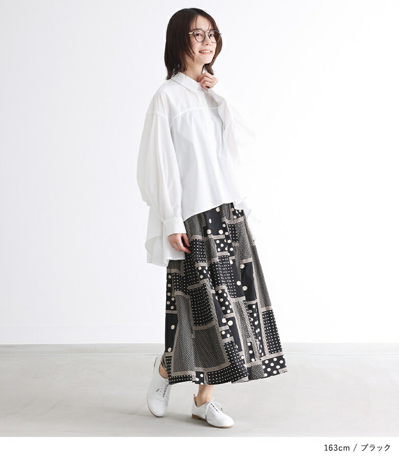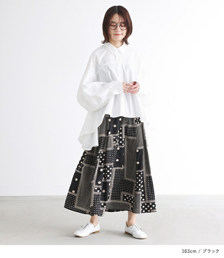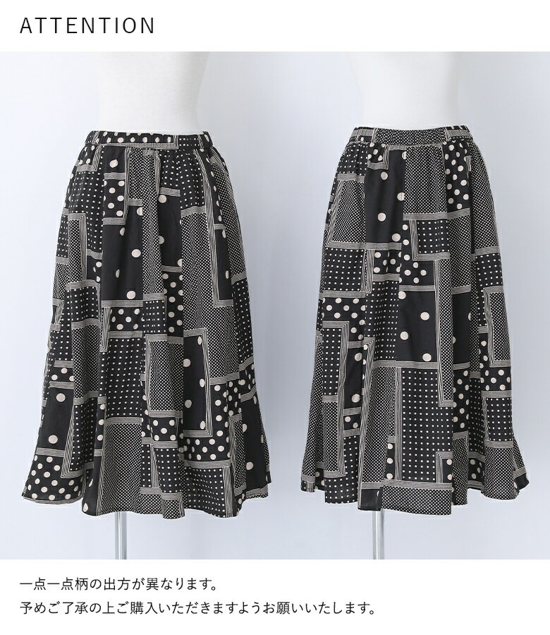 【送料無料】『変形ドットプリントフレアスカート』[スカート ロングスカート ロング丈 ボトムス レディース 春 フレア フレアスカート コットン100% 綿100% ウエストゴム]【メール便不可】【20】