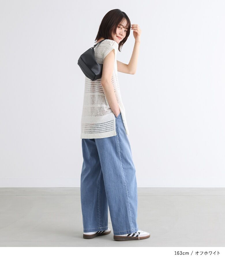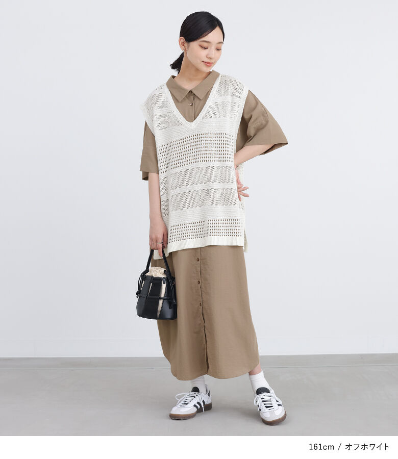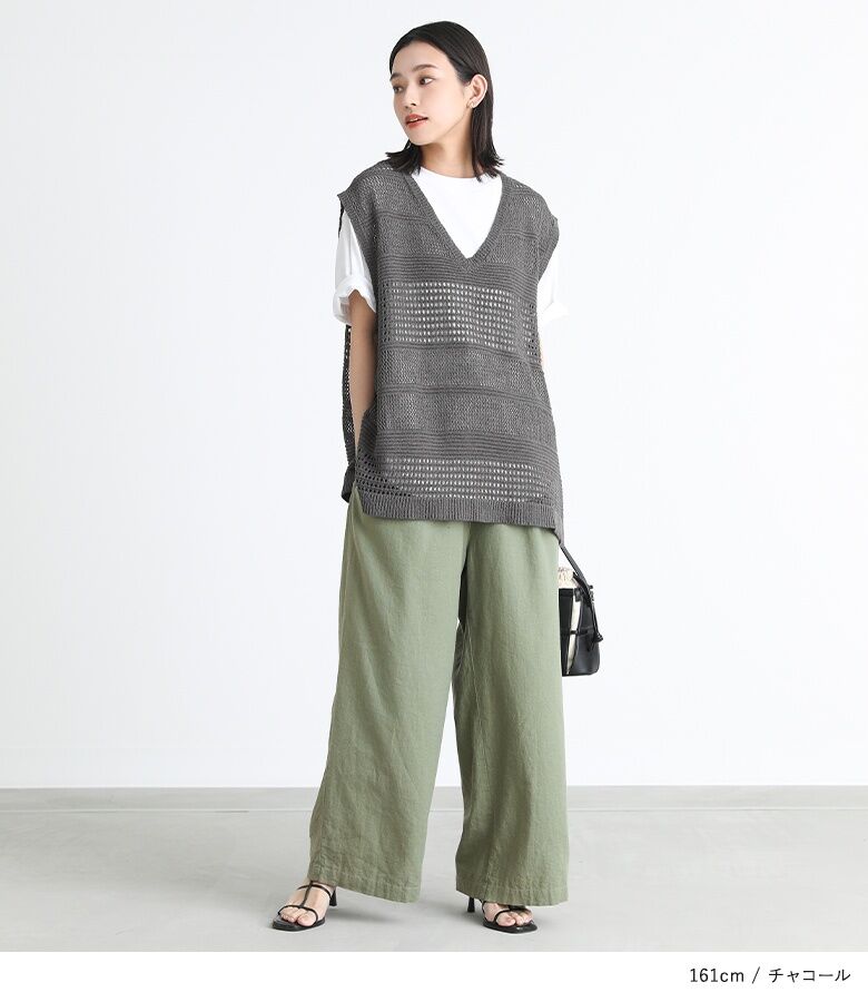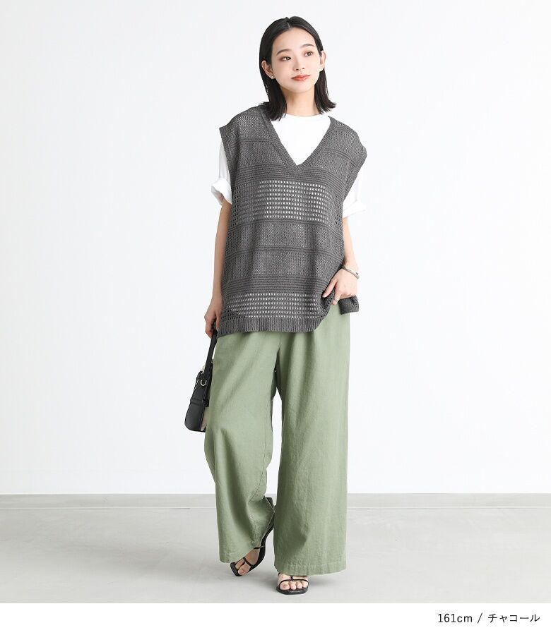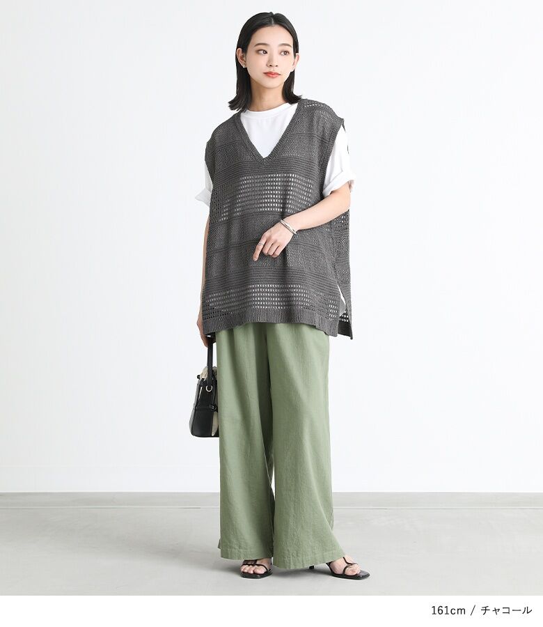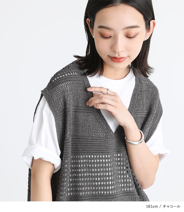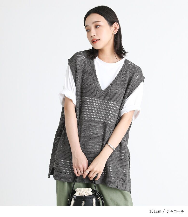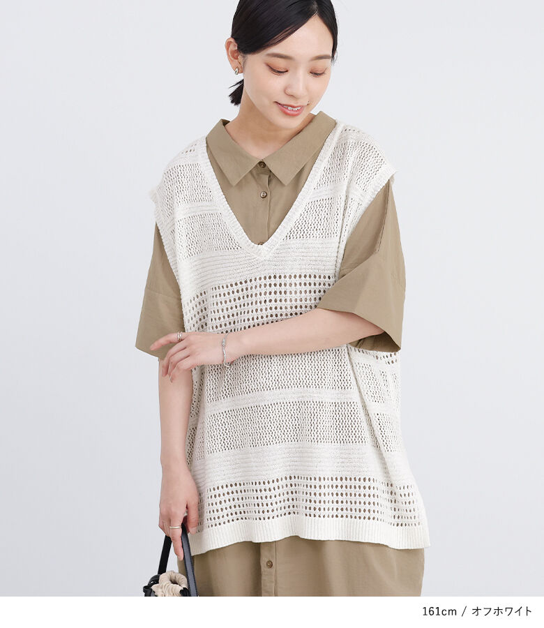 【全品送料無料】『テープヤーン透かし編みニットベスト』[n'OrLABEL ニットベスト レディース トップス サマーニット ノースリーブ 透かし編み Vネック スリット テープヤーン]※メール便可※【10】