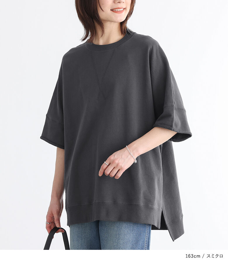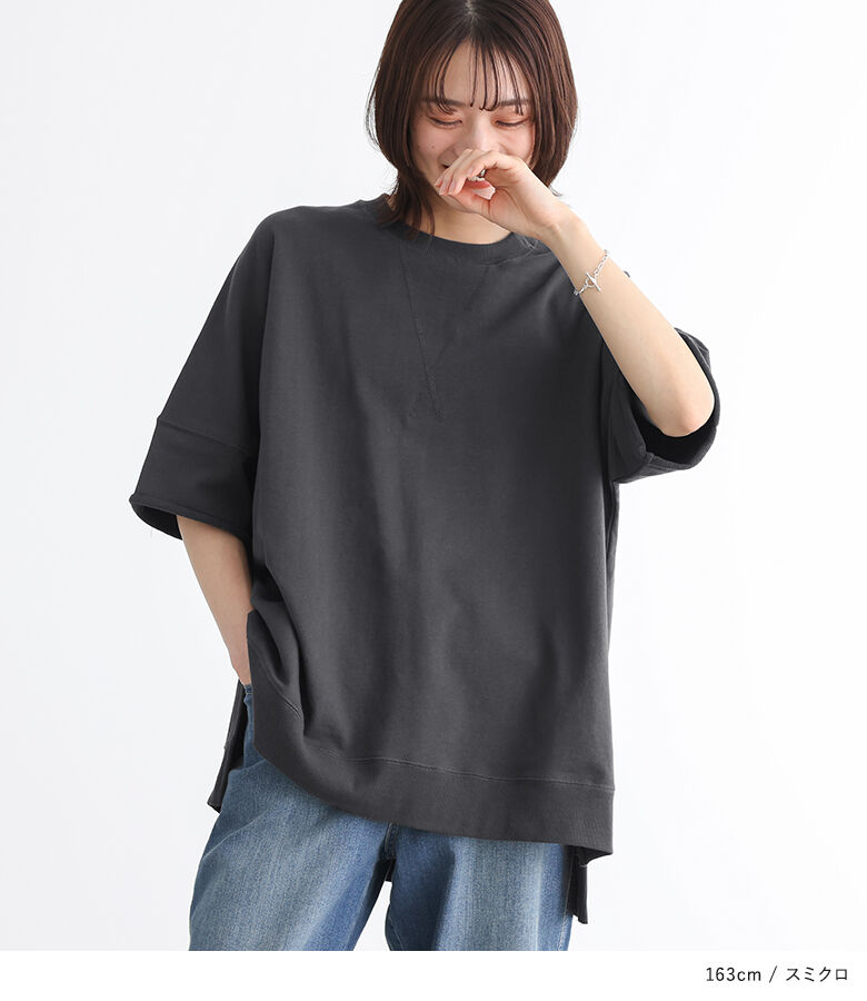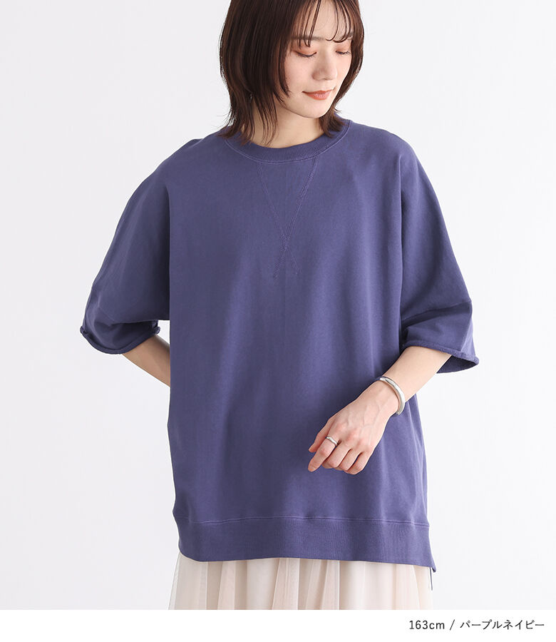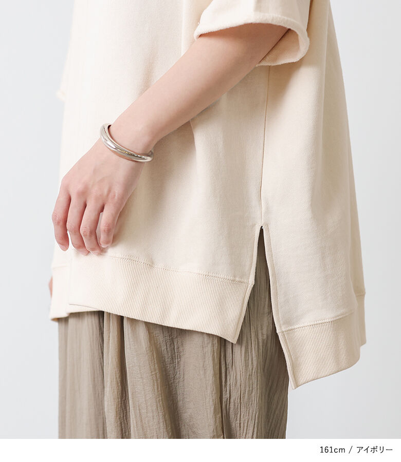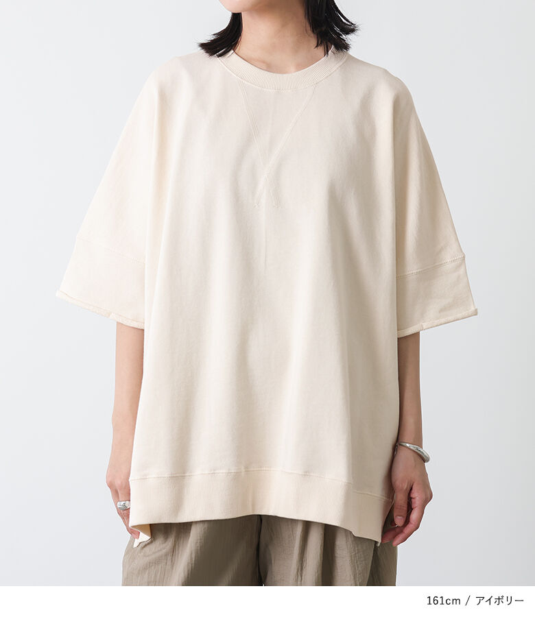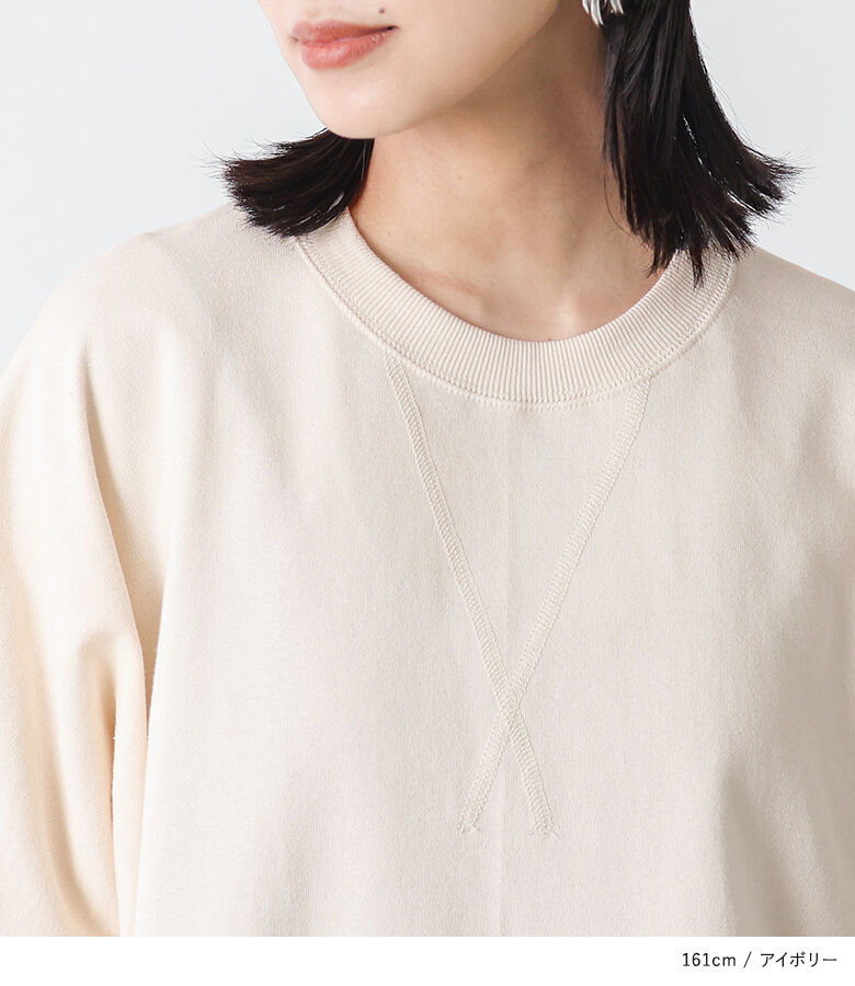 【全品送料無料】『半袖スウェットプルオーバー』[n'OrLABEL スウェット トレーナー レディース 春夏 トップス プルオーバー 半袖 五分袖 ミニ裏毛 USAコットン 綿100% クルーネック スリット シンプル カジュアル]【メール便不可】【20】