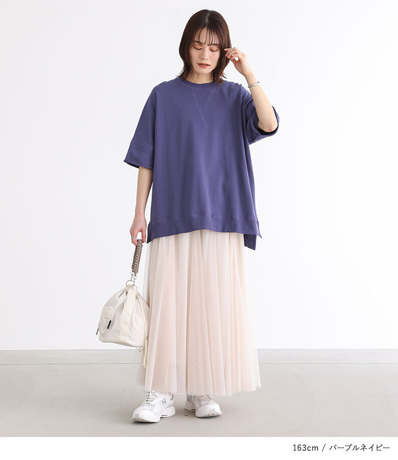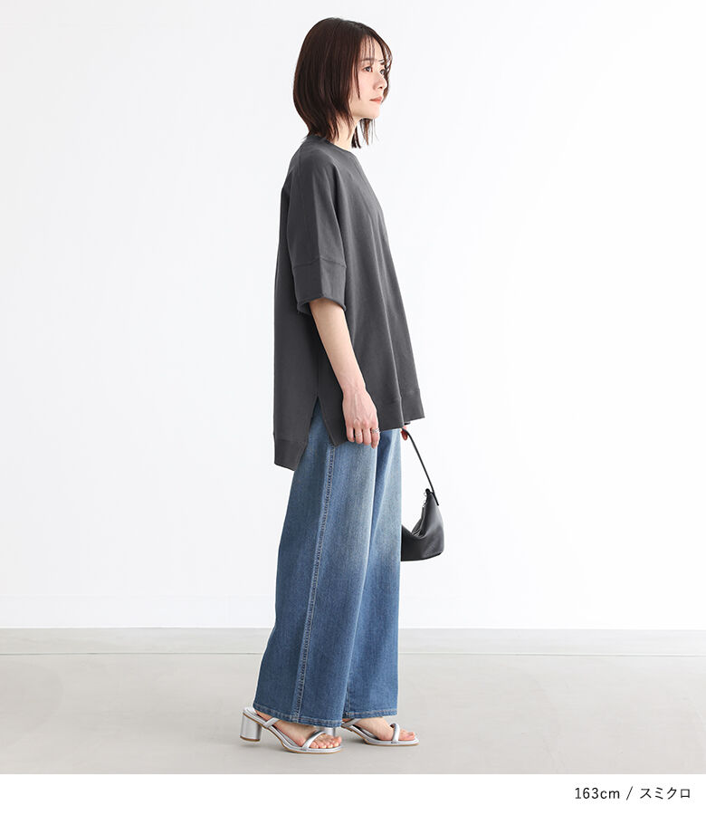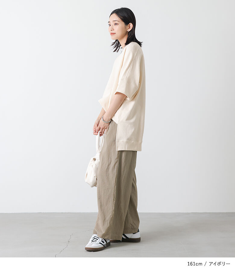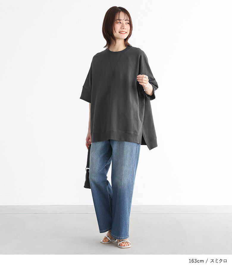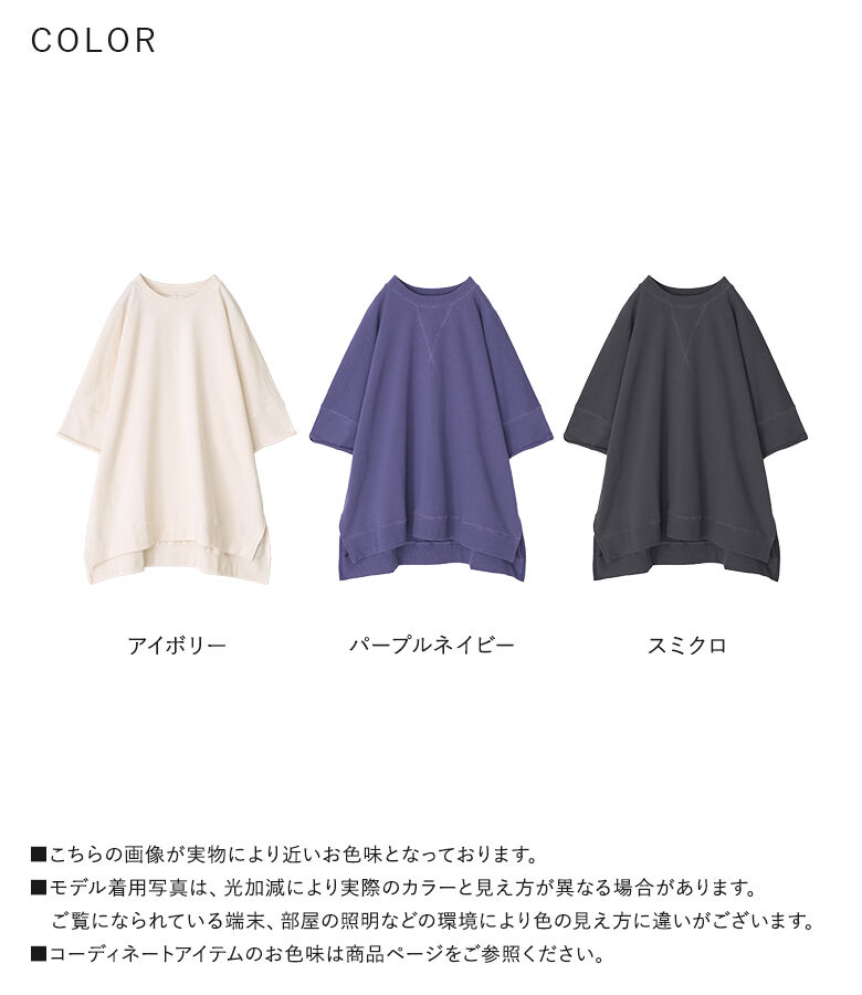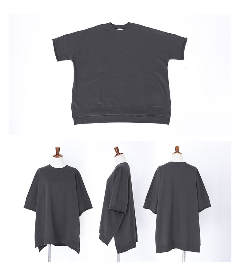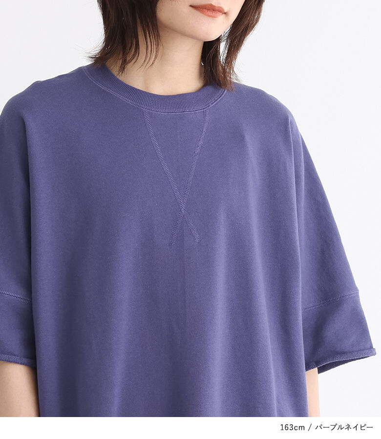 【全品送料無料】『半袖スウェットプルオーバー』[n'OrLABEL スウェット トレーナー レディース 春夏 トップス プルオーバー 半袖 五分袖 ミニ裏毛 USAコットン 綿100% クルーネック スリット シンプル カジュアル]【メール便不可】【20】