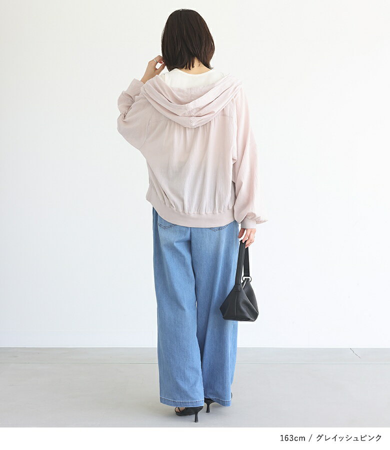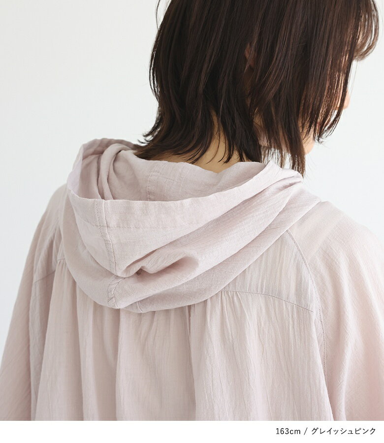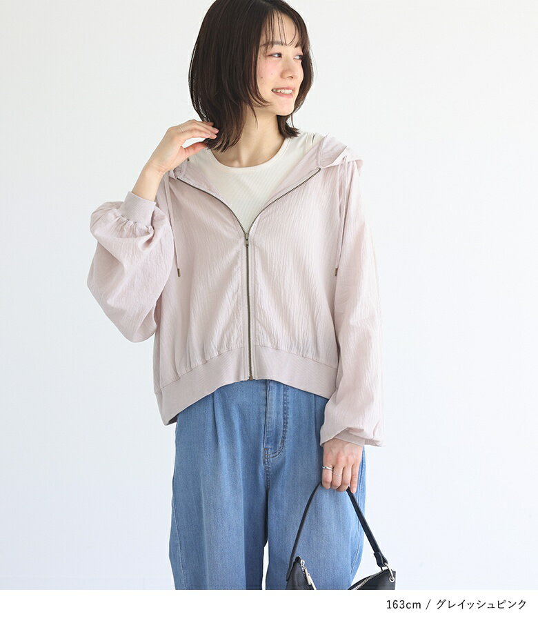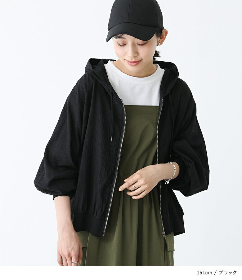 【全品送料無料】『n'OrLABELショート丈コットン楊柳パーカー』[パーカー トップス レディース 羽織 ショート丈 コットン100% 綿100% 洗い加工 楊柳 透け感 シアー リブ袖 パフスリーブ シボ感 涼し気]※メール便可※【5】