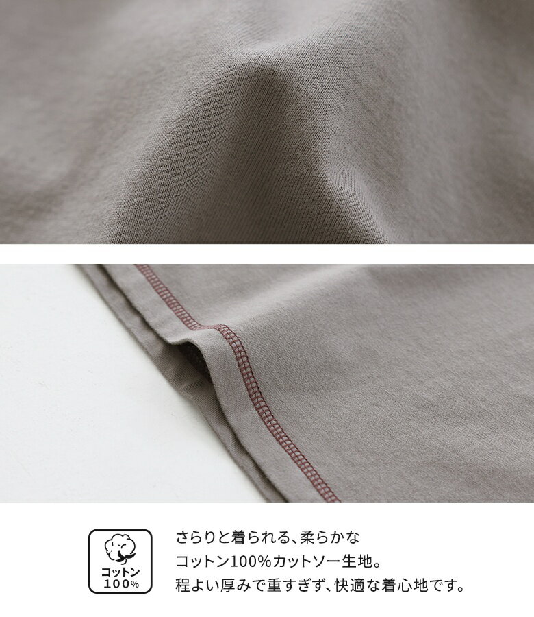 トップス レディース カットソー 長袖 チュニック ドレープ 変形 コットン100% 綿100% Vネック 体型カバー 二の腕カバー ウエストカバー ヒップカバー カジュアル シンプル お尻が隠れる 配色 ステッチ ゆるっと オシャレウォーカー※メール便可※【10】