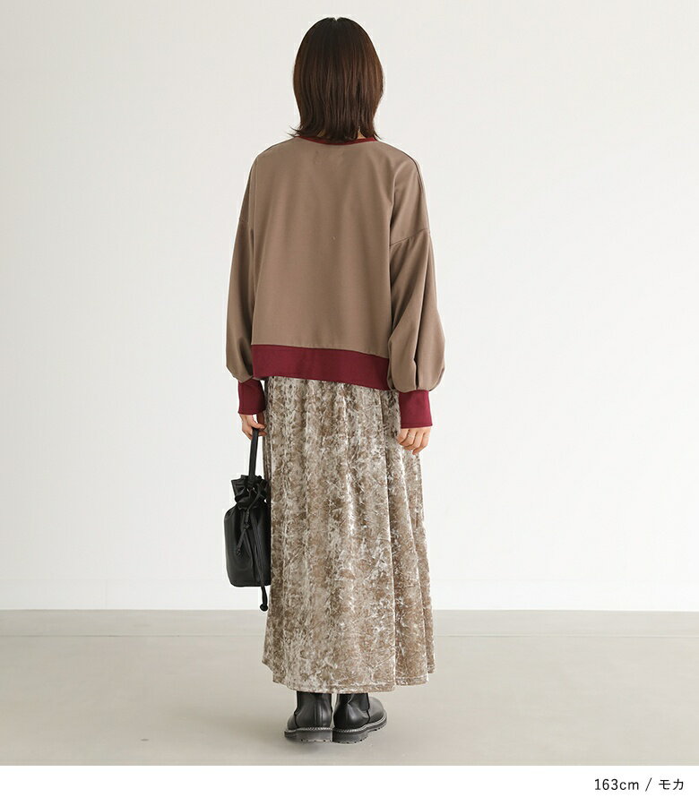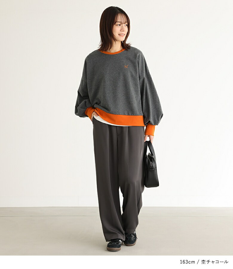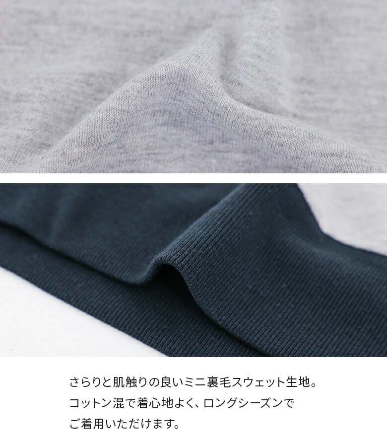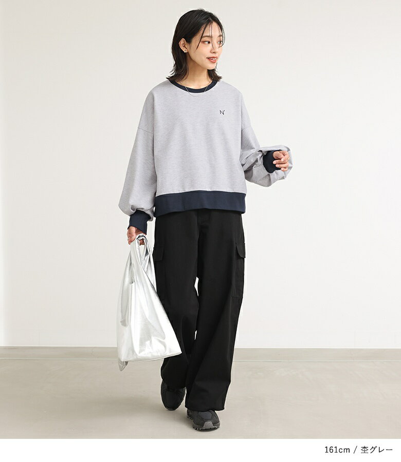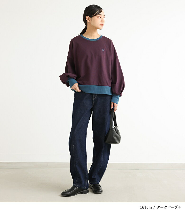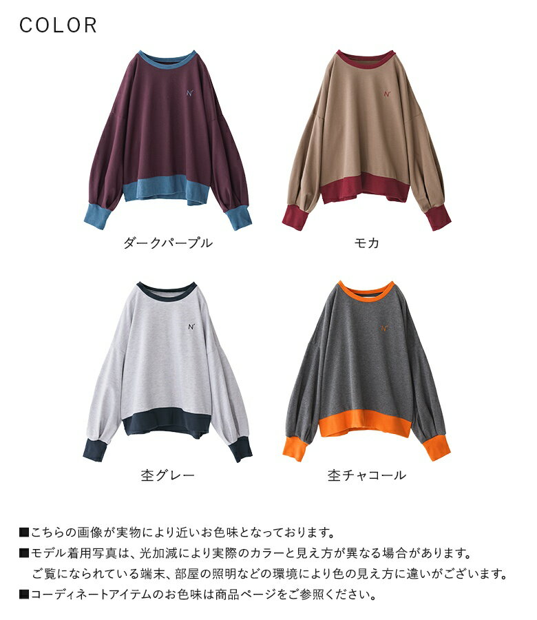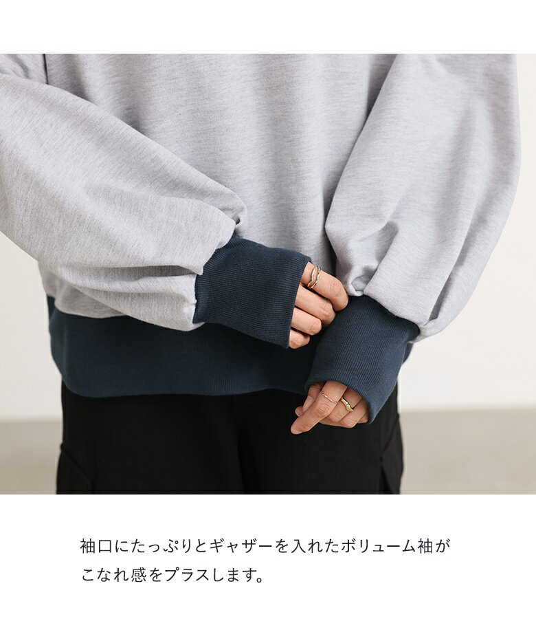 スウェット 長袖 レディース トップス スウェットトップス トレーナー クルーネック バイカラー 配色 ミニ裏毛 ボリューム袖 ショート丈 ワンポイント 刺繍 ロゴ スウェット生地 ゆったり 体型カバー カジュアル シンプル オシャレウォーカー【メール便不可】【20】