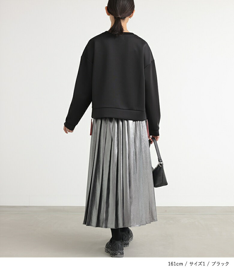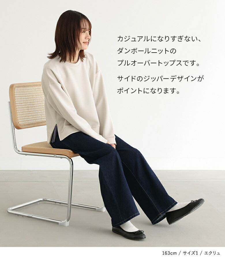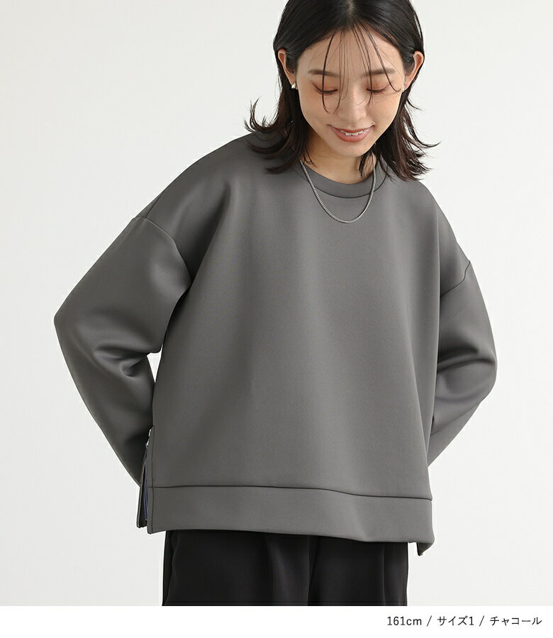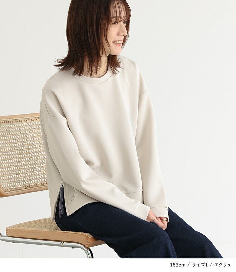 スウェット 長袖 プルオーバー レディース トップス トレーナー カットソー ダンボールニット 春 秋 冬 ストレッチ サイドファスナー ベロアテープ セットアップ 2点セット 選べる サイズ 体型カバー 大人カジュアル きれいめ オシャレウォーカー※メール便可※【10】