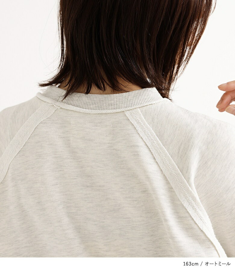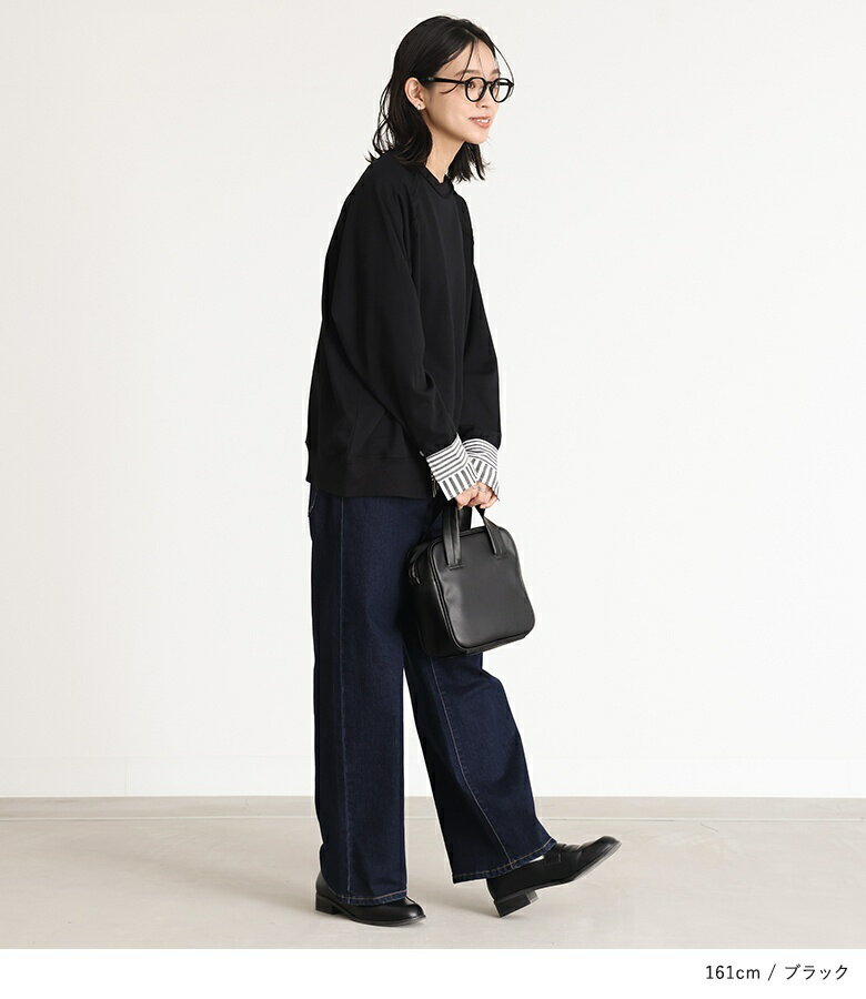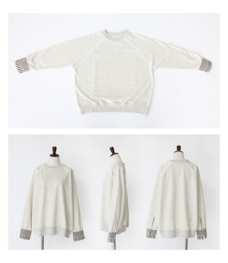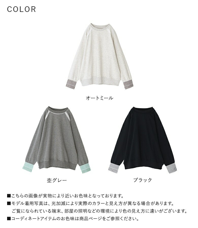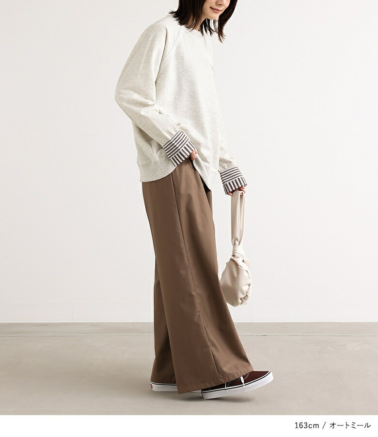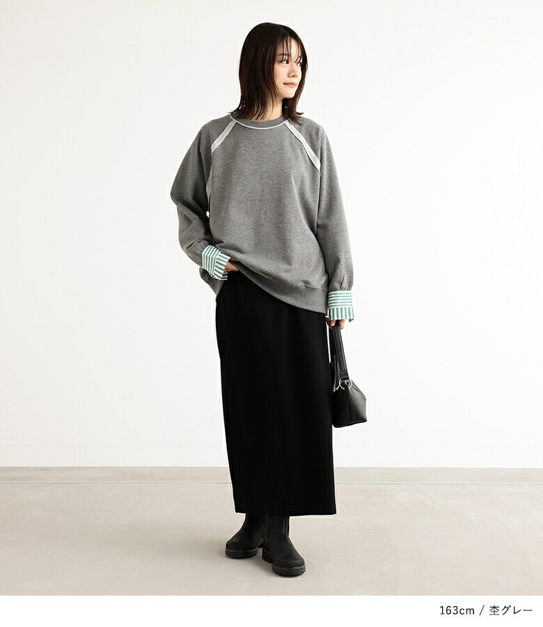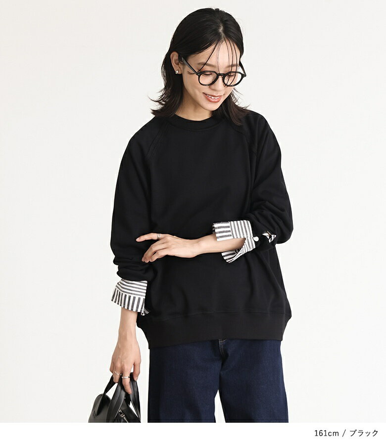 プルオーバー レディース トップス カットソー スウェット クルーネック リブ 切替 異素材 カジュアル ロンT トレーナー スエット 長袖 ストライプ柄 無地 オーバーサイズ 異素材MIX コットン混 レイヤード オシャレウォーカー【メール便不可】【20】
