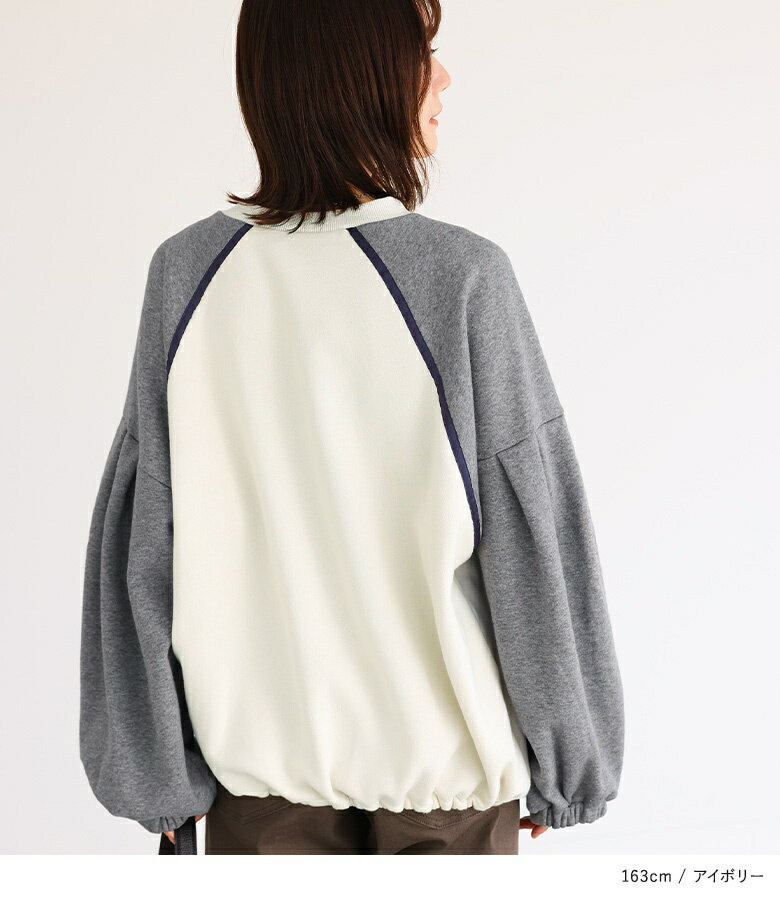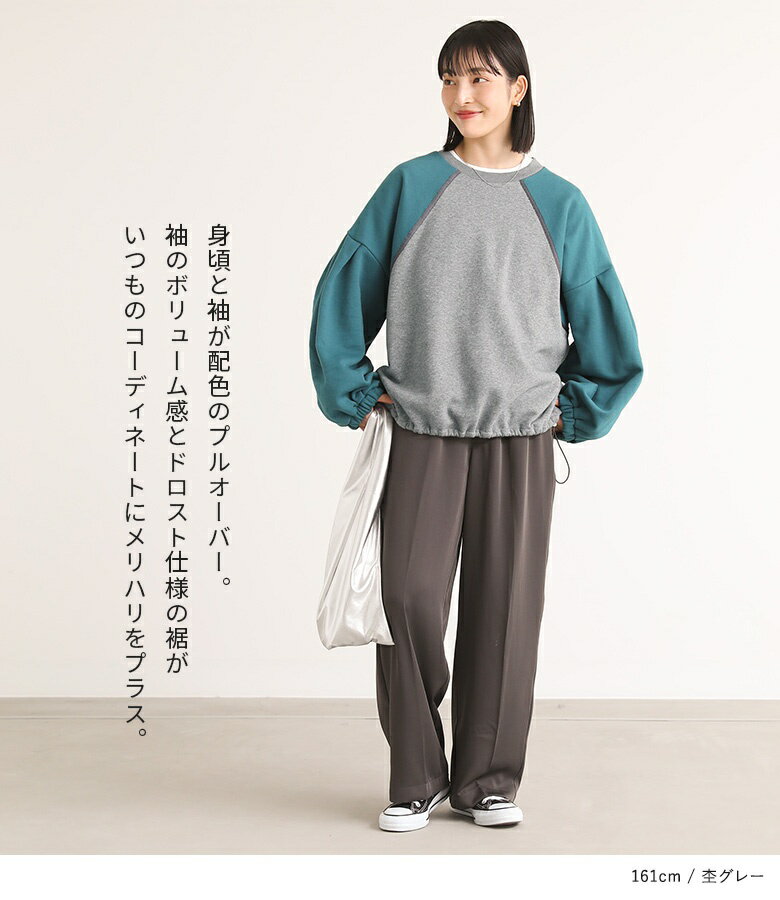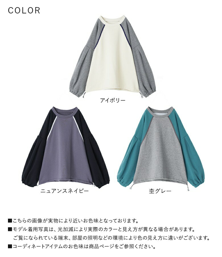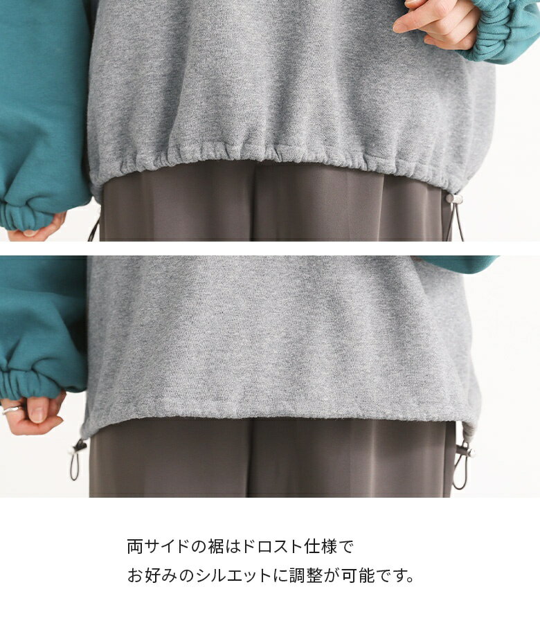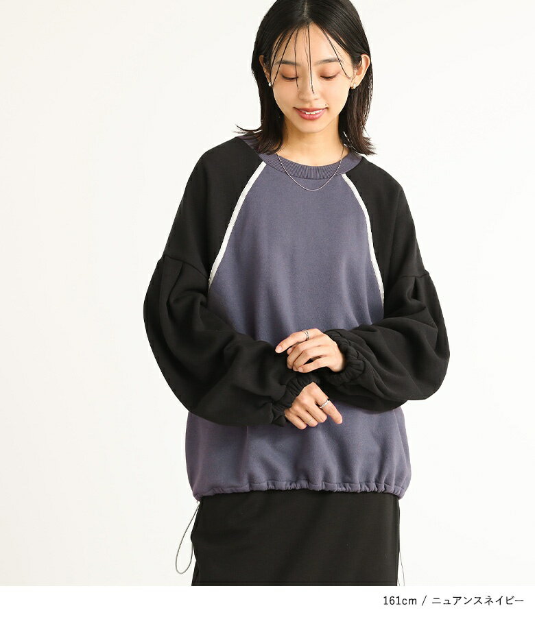 【全品送料無料】スウェット 長袖 レディース トップス トレーナー ラグラン 配色 無地 ドロスト 裏起毛 あったか ドロップショルダー ボリューム袖 プルオーバー 配色テープ 体型カバー 大きいサイズ お尻が隠れる 調整可能 オシャレウォーカー【メール便不可】【30】