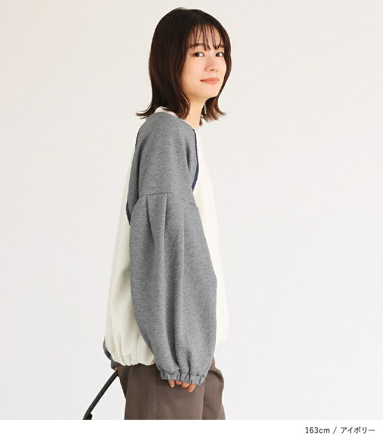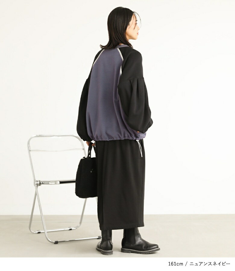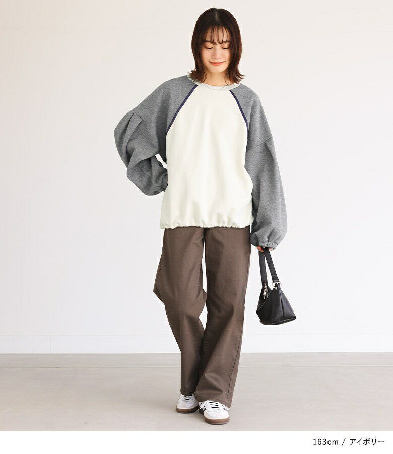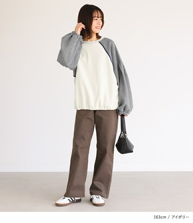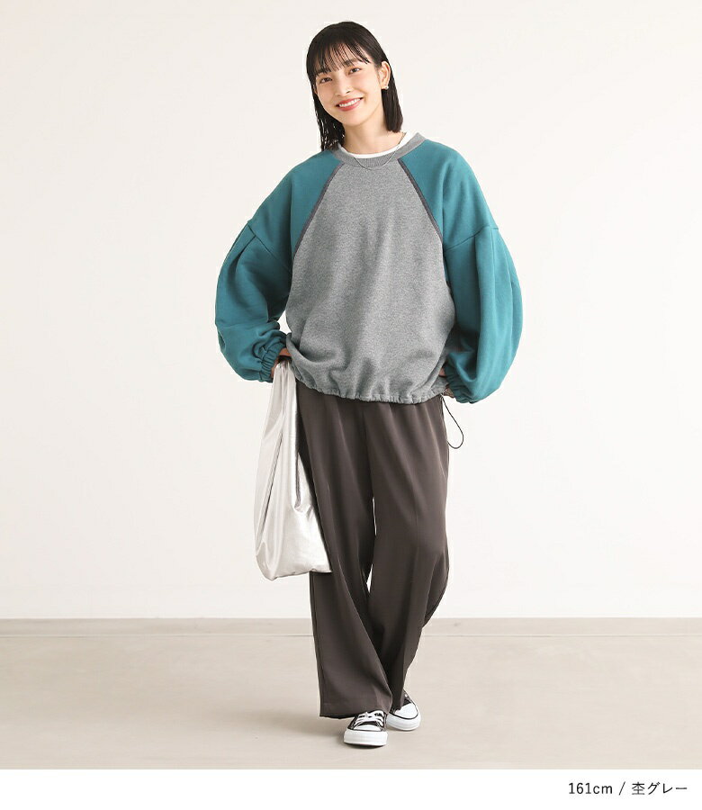 【全品送料無料】スウェット 長袖 レディース トップス トレーナー ラグラン 配色 無地 ドロスト 裏起毛 あったか ドロップショルダー ボリューム袖 プルオーバー 配色テープ 体型カバー 大きいサイズ お尻が隠れる 調整可能 オシャレウォーカー【メール便不可】【30】