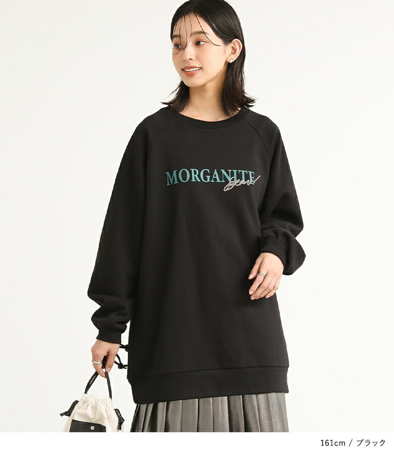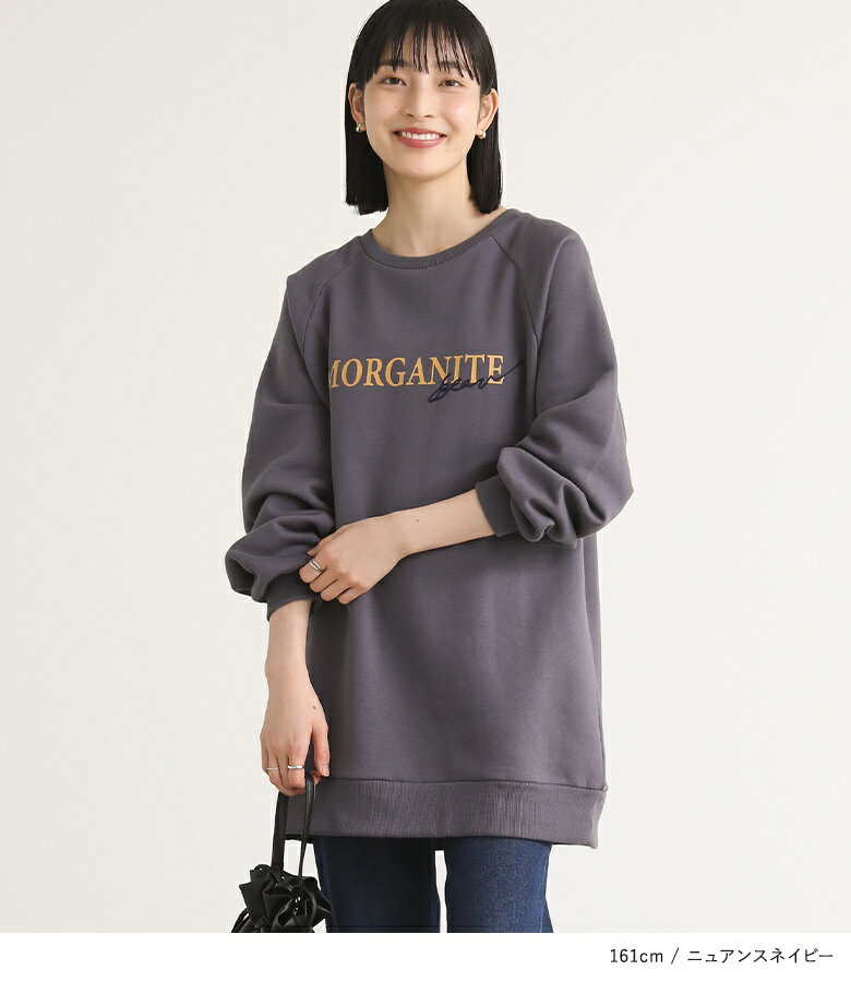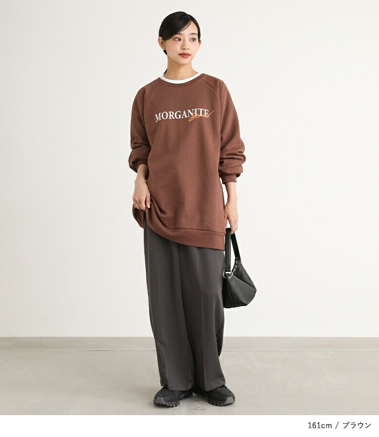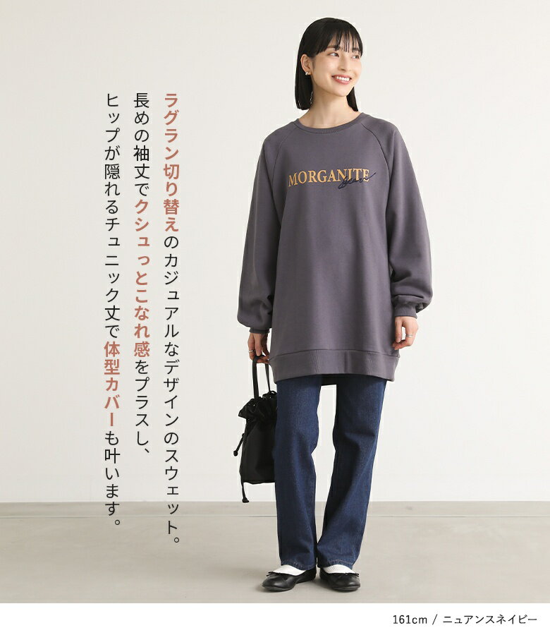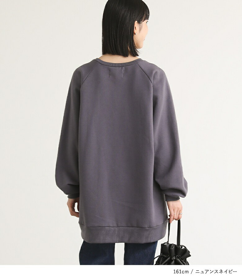 【全品送料無料】スウェット 長袖 レディース トップス トレーナー クルーネック ラグラン 裏起毛 刺繍 秋 冬 秋冬 シンプル ロゴ プリント お尻が隠れる ヒップが隠れる 体型カバー 大きいサイズ チュニック丈 オーバーサイズ オシャレウォーカー【メール便不可】【20】