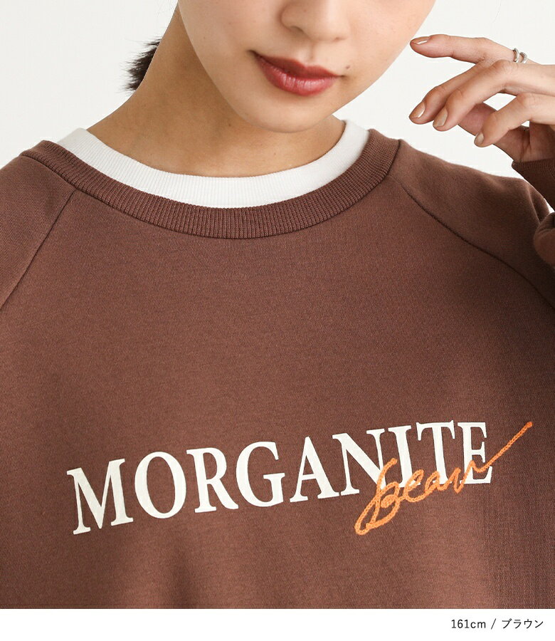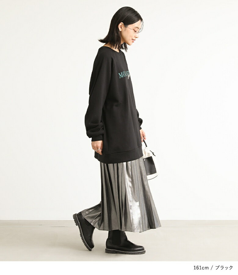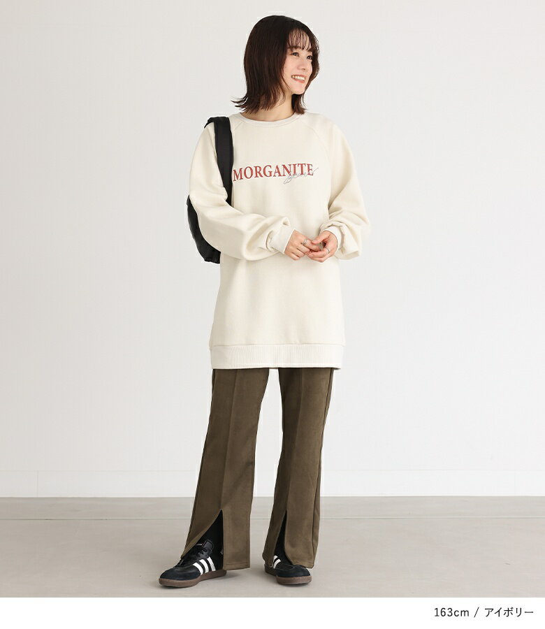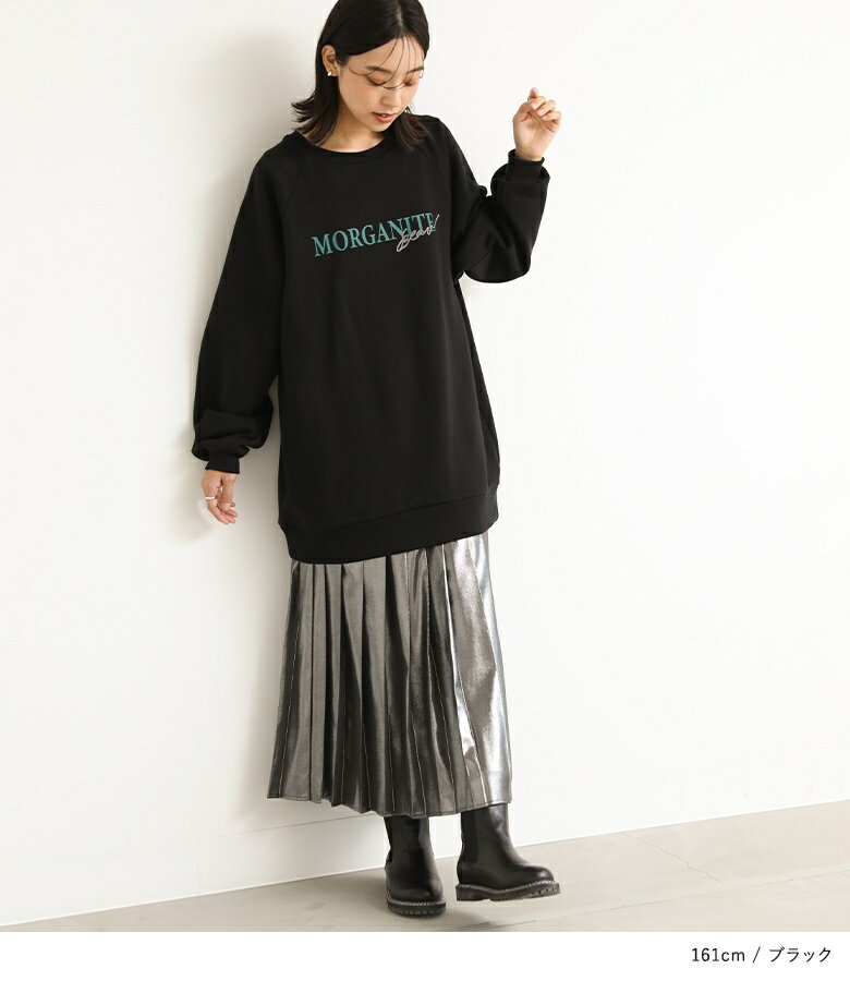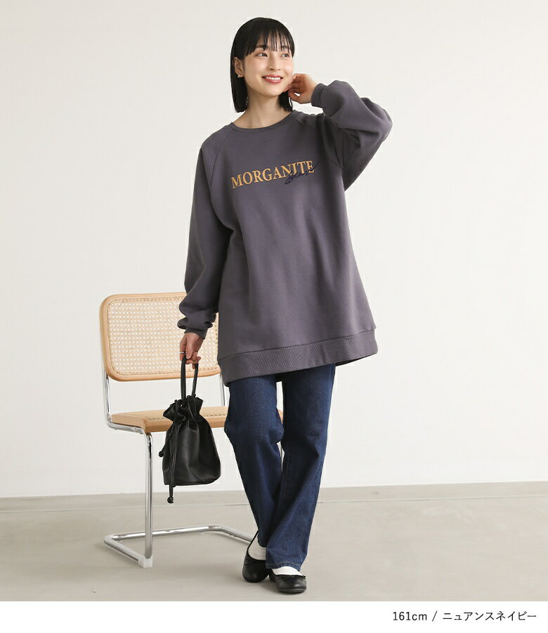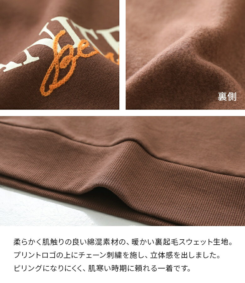 【全品送料無料】スウェット 長袖 レディース トップス トレーナー クルーネック ラグラン 裏起毛 刺繍 秋 冬 秋冬 シンプル ロゴ プリント お尻が隠れる ヒップが隠れる 体型カバー 大きいサイズ チュニック丈 オーバーサイズ オシャレウォーカー【メール便不可】【20】