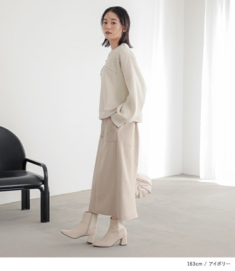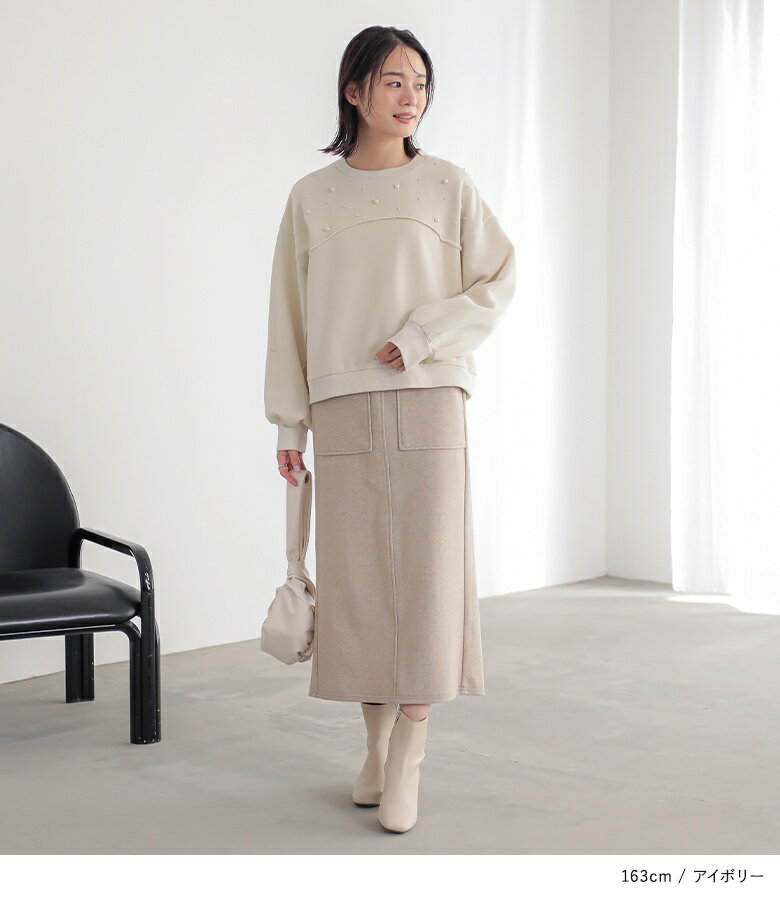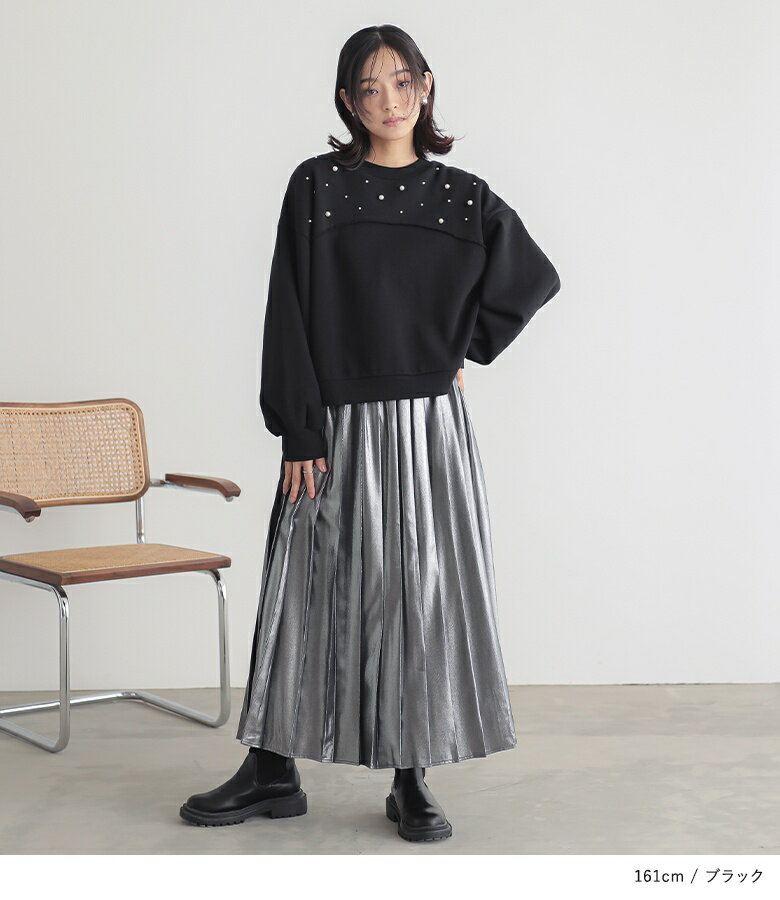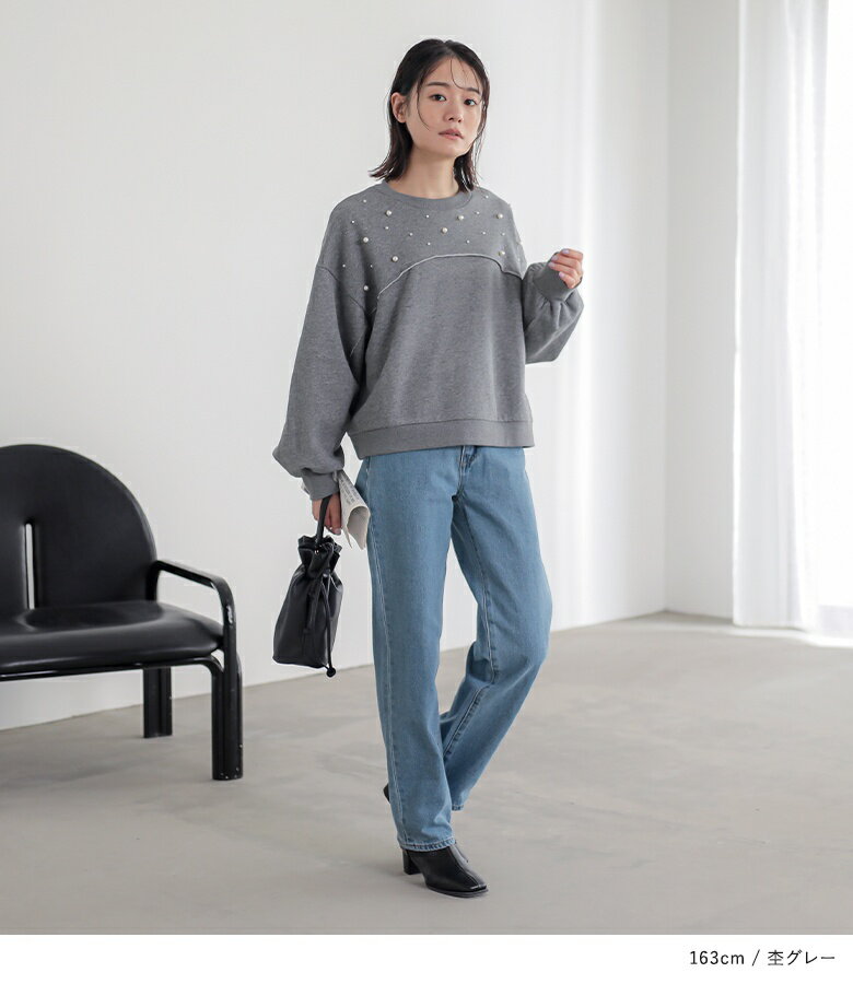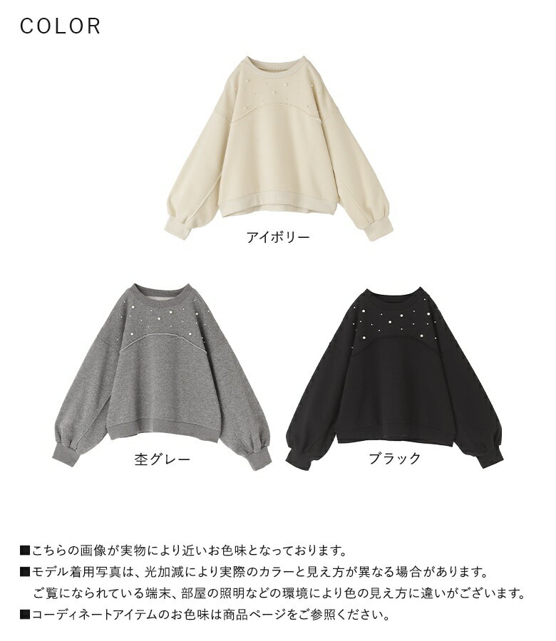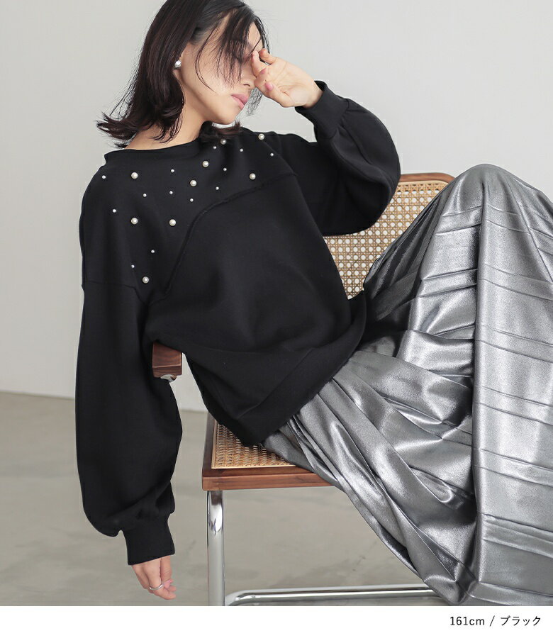 【全品送料無料】トップス レディース レディーストップス レディーストレーナー トレーナー スウェット プルオーバー クルーネック フェイクパール 裏起毛 ショート丈 切り替え 体型カバー ゆったり 大人カジュアル 無地 オシャレウォーカー【メール便不可】【30】