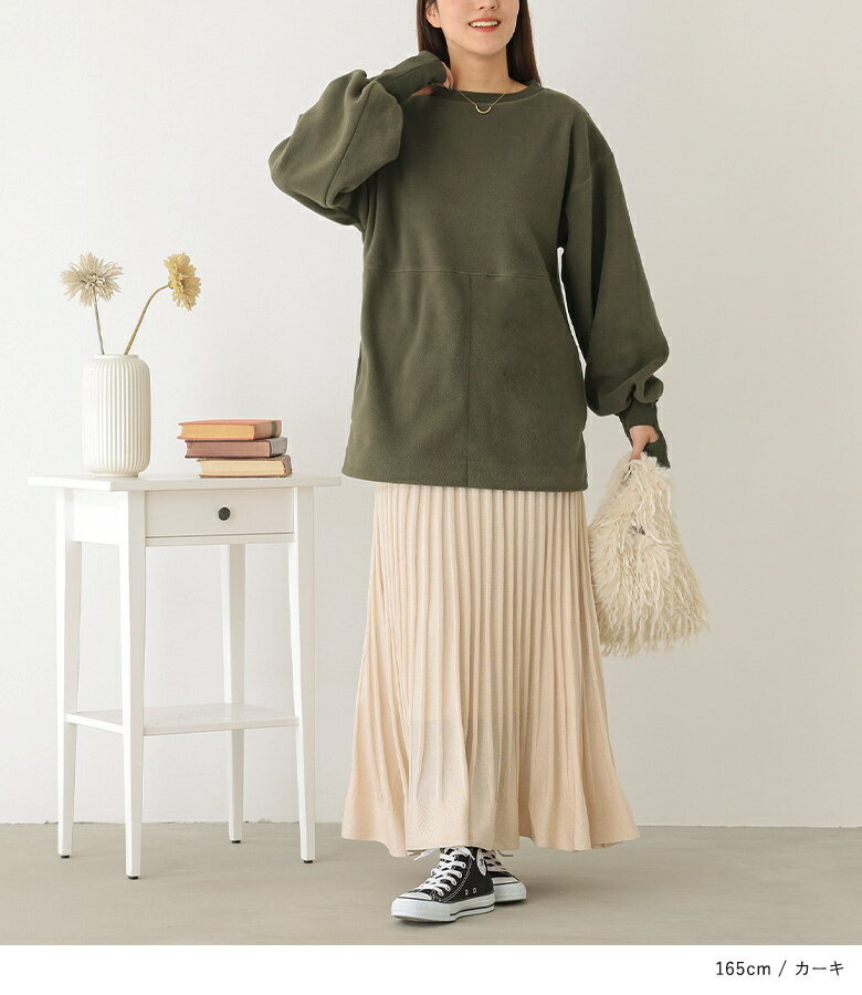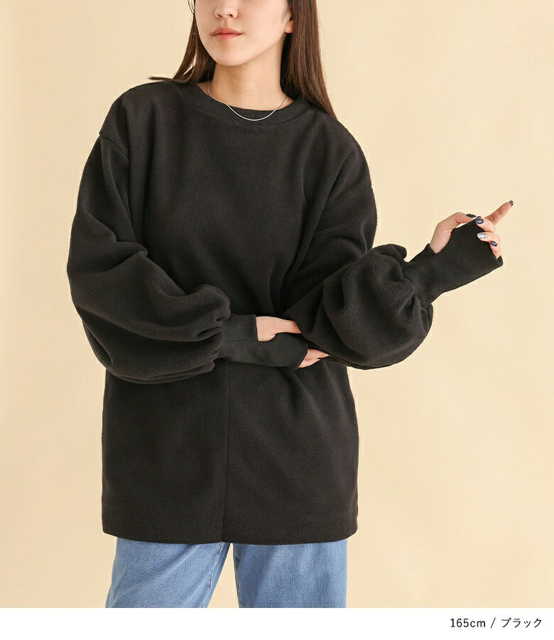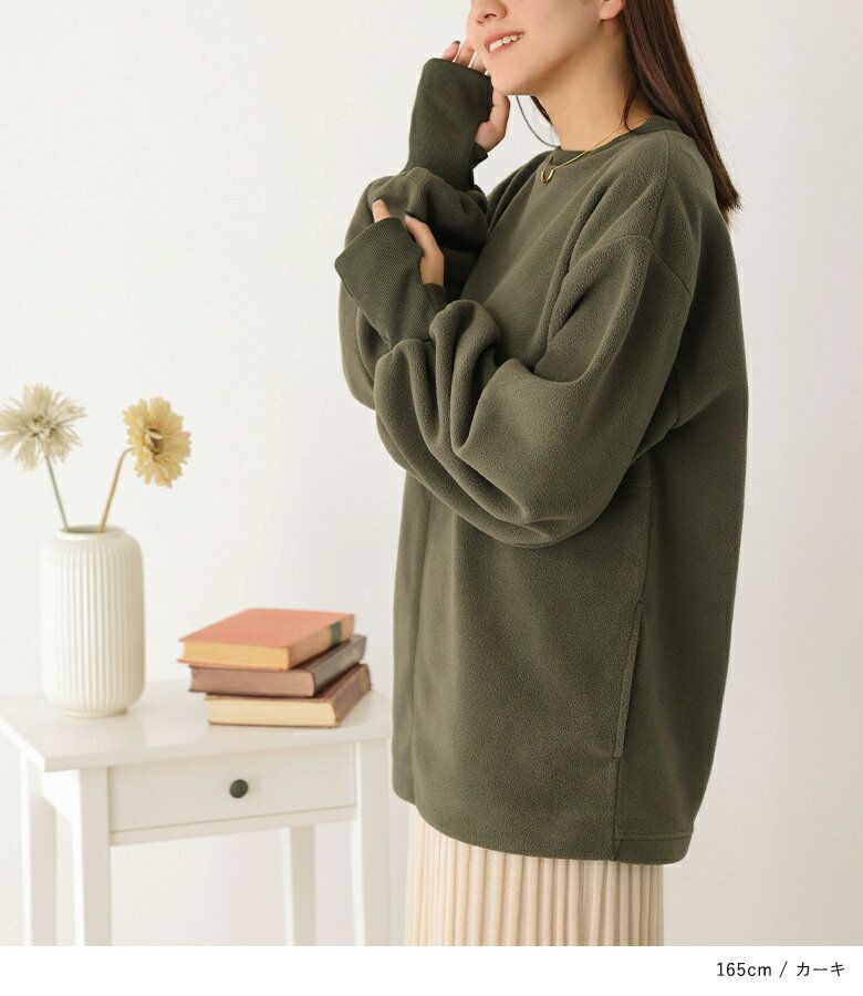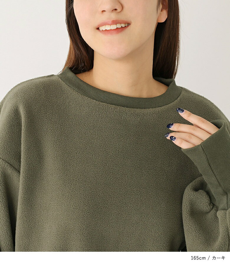 【40%OFF】スウェット レディース トップス フリース ボア 指穴 クルーネック 長袖 プルオーバー ゆったり 防寒 あったか 秋 冬 お尻が隠れる オシャレウォーカー◇【メール便不可】【30】