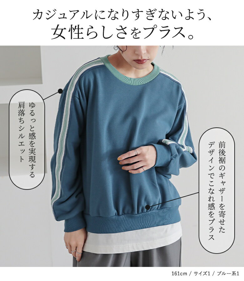 [期間限定クーポンで全品10%OFF]【全品送料無料】トップス レディース スウェット 長袖 裏毛 ラインテープ 配色ライン 長袖スウェット プルオーバー クルーネック トレーナー 着回し ニットテープ 裏毛スウェット 肩落ち オシャレウォーカー【メール便不可】【30】