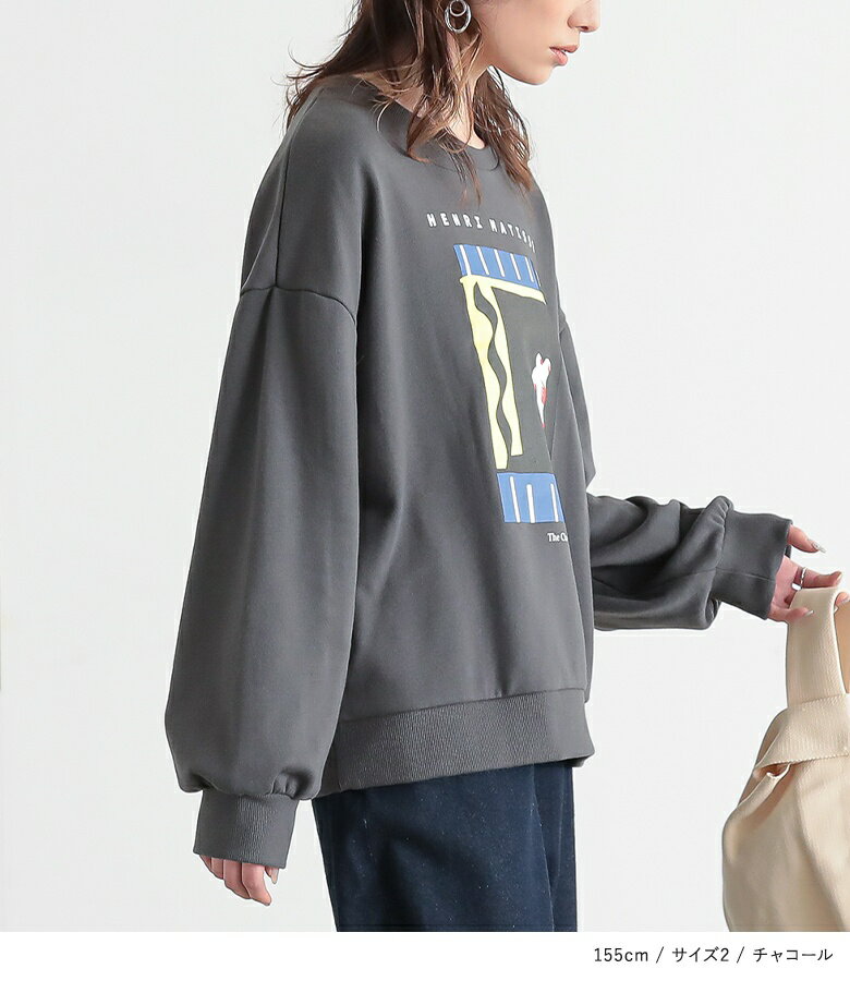 [期間限定クーポンで10%OFF]スウェット レディース トップス 長袖 トレーナー ロンT コットン混 綿混 無地 プリント 半ラバープリント アート ラフ プルオーバー クルーネック ショート丈 レイヤード 重ね着 オシャレウォーカー【メール便不可】【20】