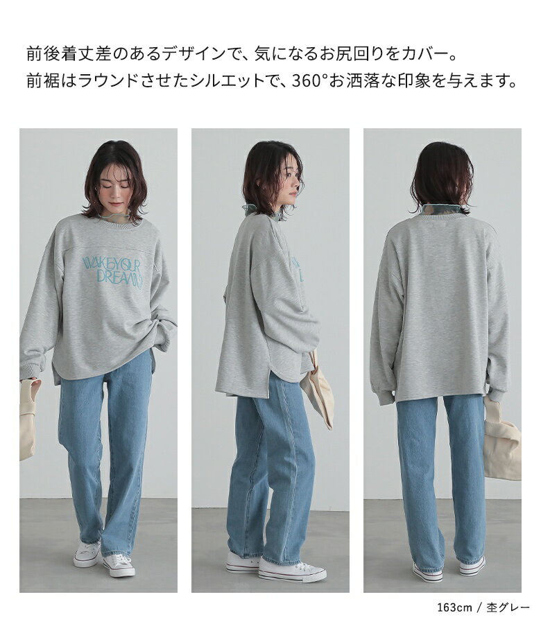 [1/31 23:59迄クーポンで10%OFF]スウェット レディース トップス トレーナー 長袖 裏毛 カットソー プリント ロゴ 綿混 ドロップショルダー プルオーバー お尻が隠れる ゆるっと 春 秋 冬 オシャレウォーカー【メール便不可】【30】