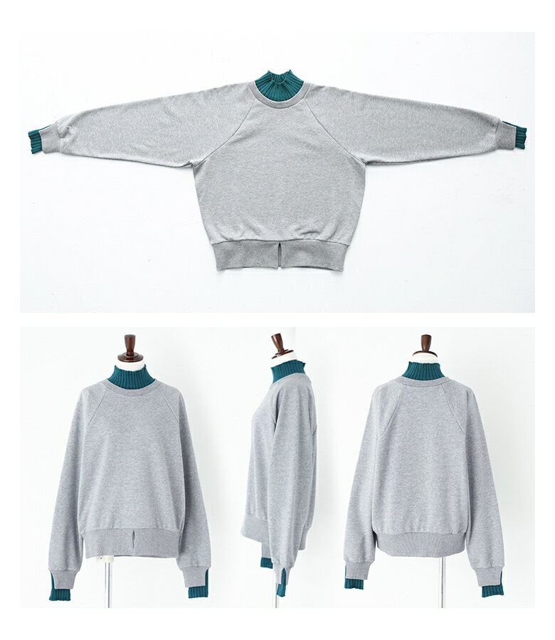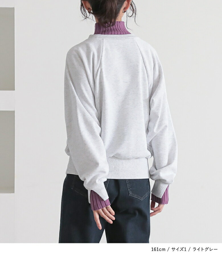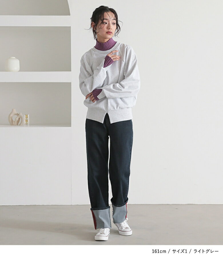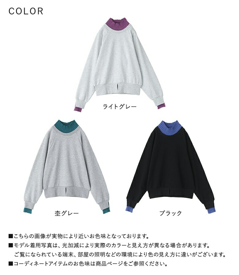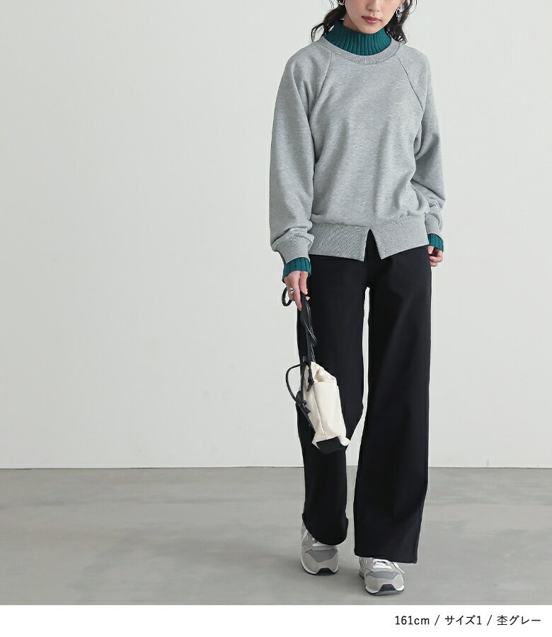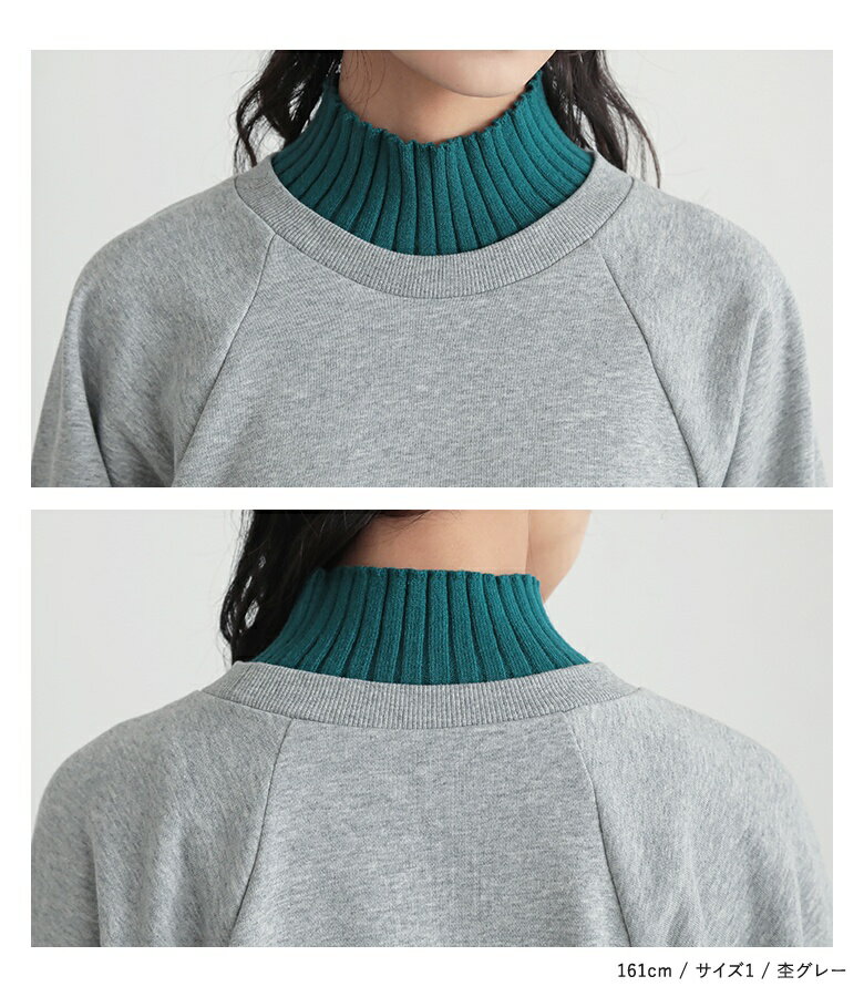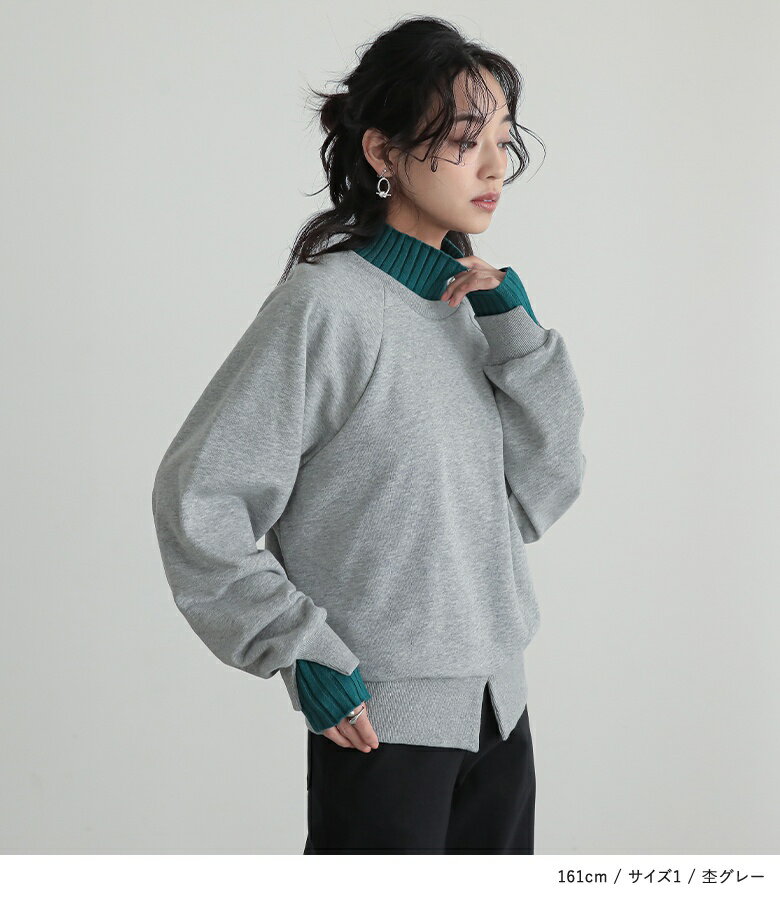 スウェット レディース トップス 長袖 トレーナー スエット プルオーバー ショート丈 ミディ丈 ミドル丈 スリット 綿混 裏毛 配色 無地 ラグランスリーブ リブニット ハイネック タートルネック オシャレウォーカー【メール便不可】【20】