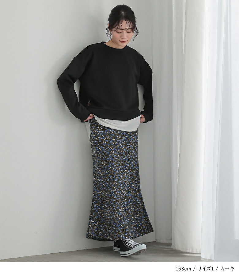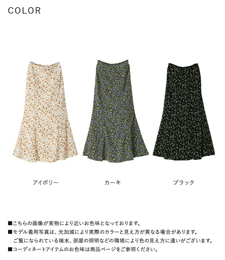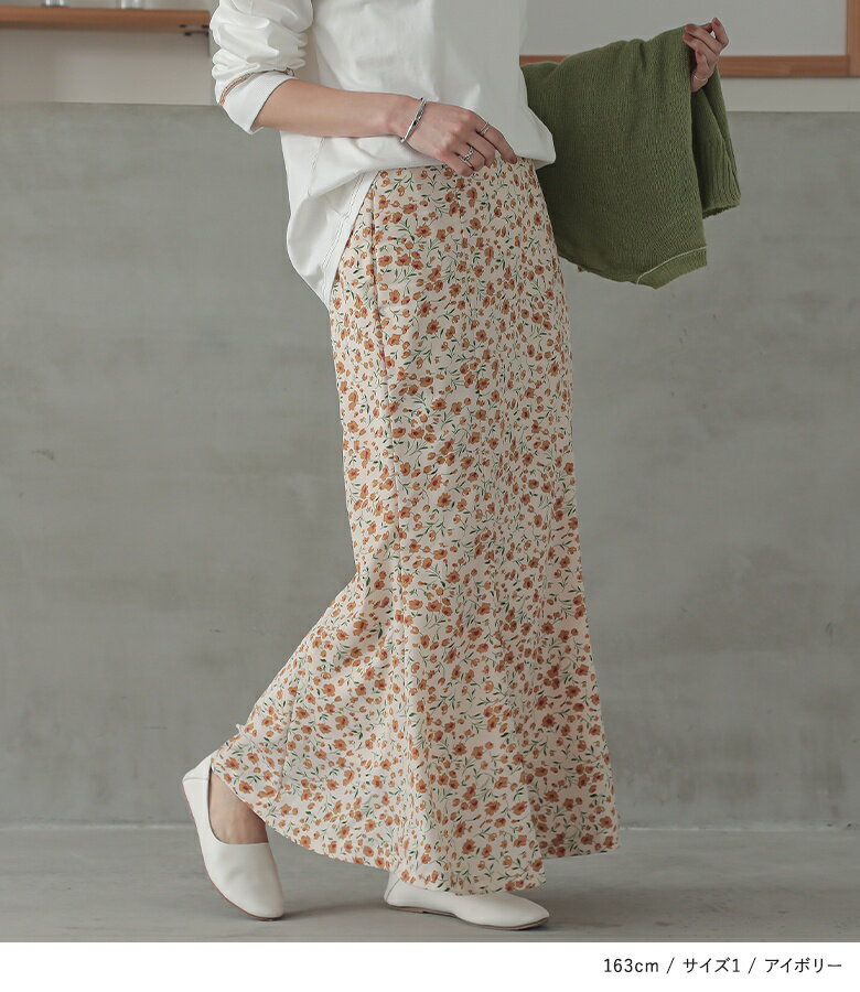 [2/20(木)23:59迄クーポンで全品30%OFF]スカート レディース ボトムス ロング丈 マキシ丈 マーメイド 小花柄 花柄 セミマーメイド セミフレア 伸縮性 裏地付き ポケット ウエストゴム 春 夏 秋 オシャレウォーカー※メール便可※【10】