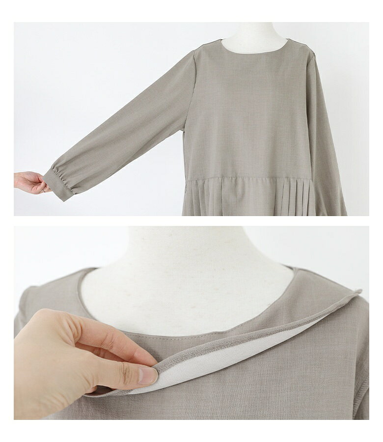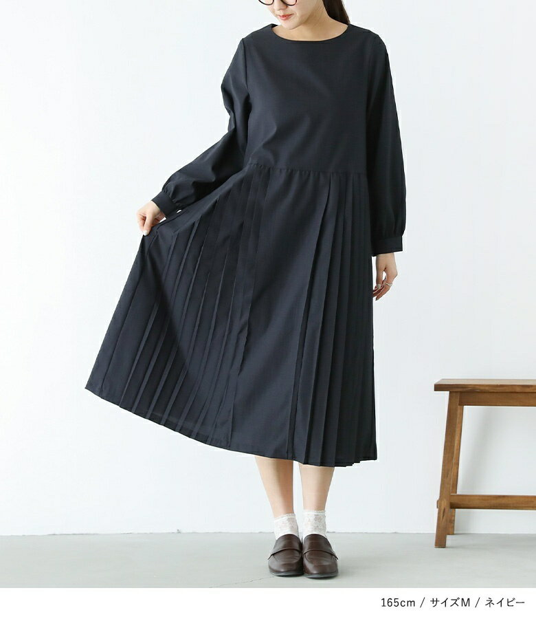 ワンピース レディース プリーツワンピース 長袖 ロング丈 ミモレ丈 クルーネック ポケット レイヤード 重ね着 きれいめ 上品 オケージョン 春 秋 オシャレウォーカー【メール便不可】【30】