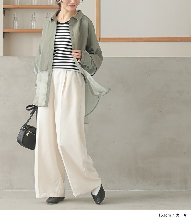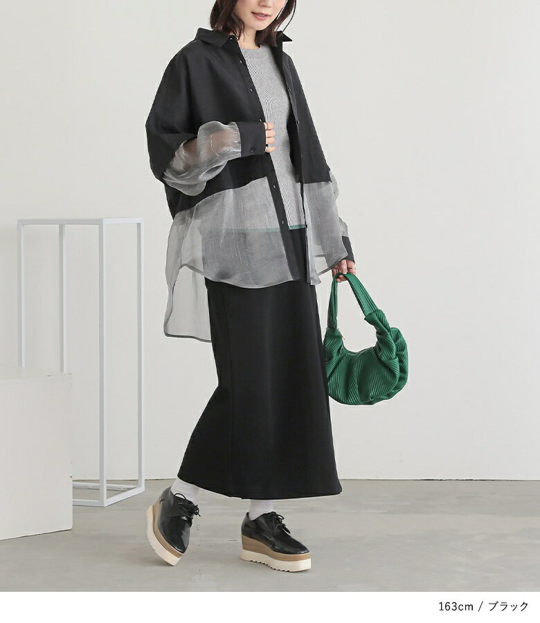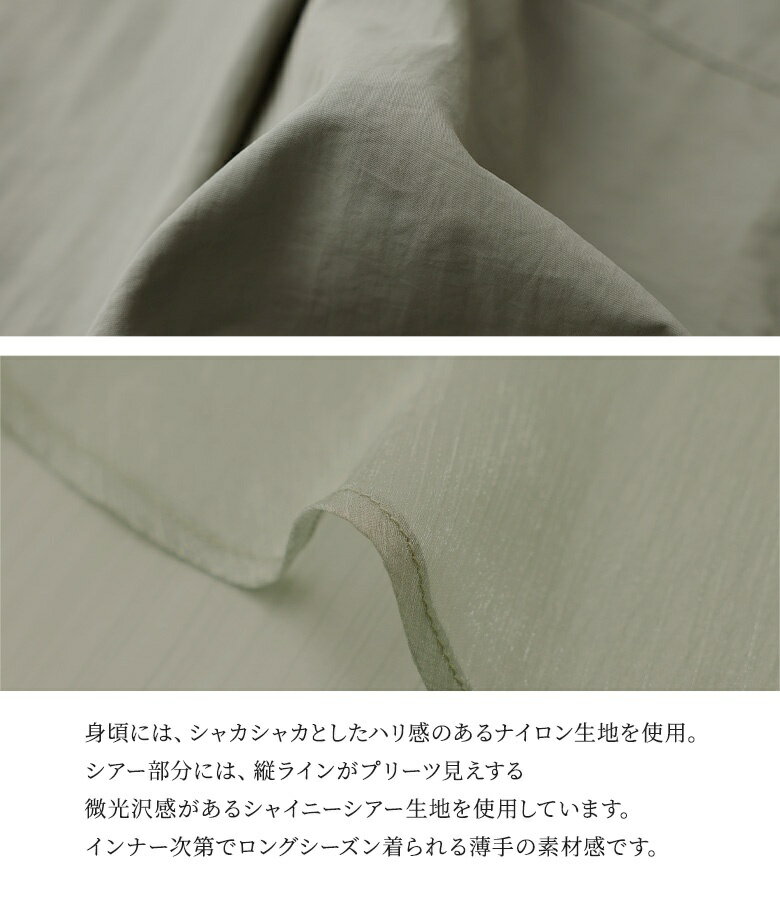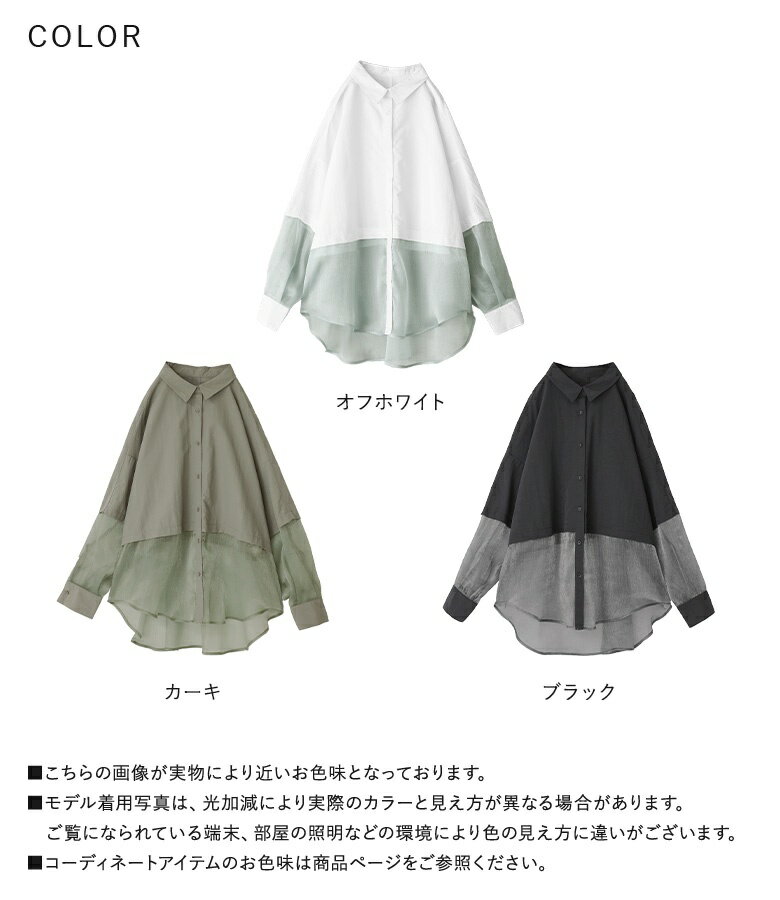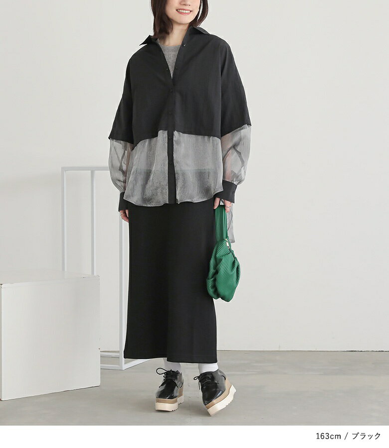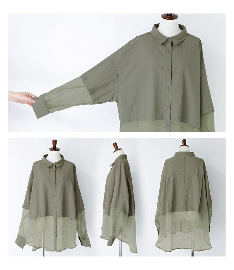 シャツ レディース トップス ブラウス 長袖 ドッキング シアー 体型カバー シャカシャカ 重ね着 レイヤード ゆったり ヨーク 切り替え オシャレウォーカー※メール便可※【10】