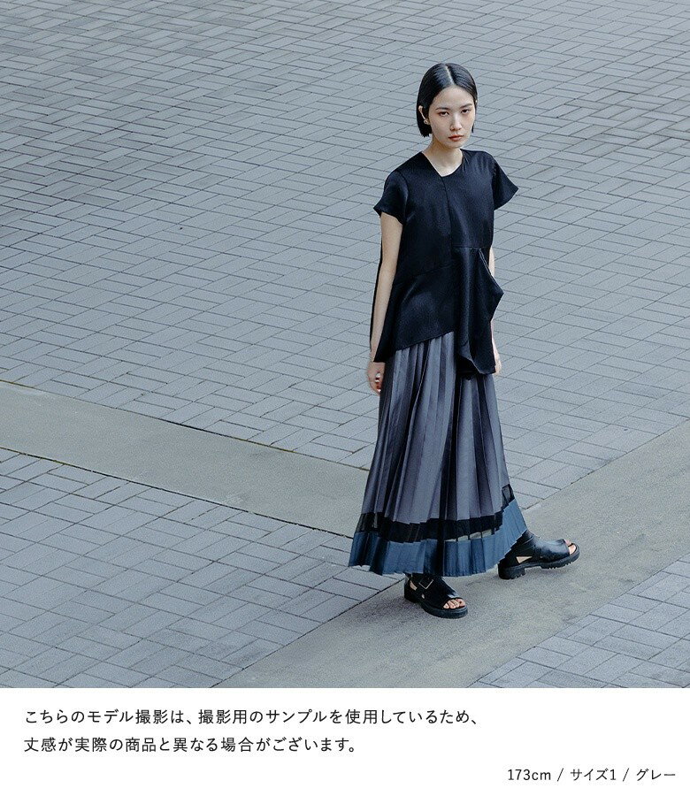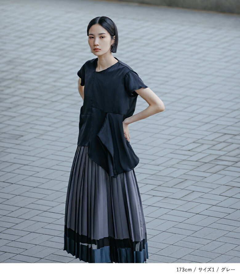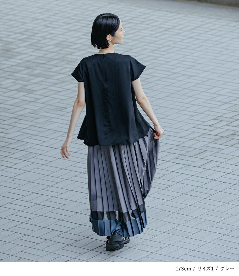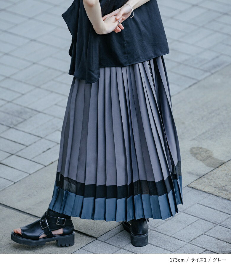 【予約期間限定!6,980円(税込)→6,282円(税込)】『kOhAKUシアー切替配色プリーツスカート』[スカート レディース ボトムス ロング丈 マキシ丈 プリーツ 配色 シアー 切り替え ウエストゴム 春 夏]【メール便不可】【30】