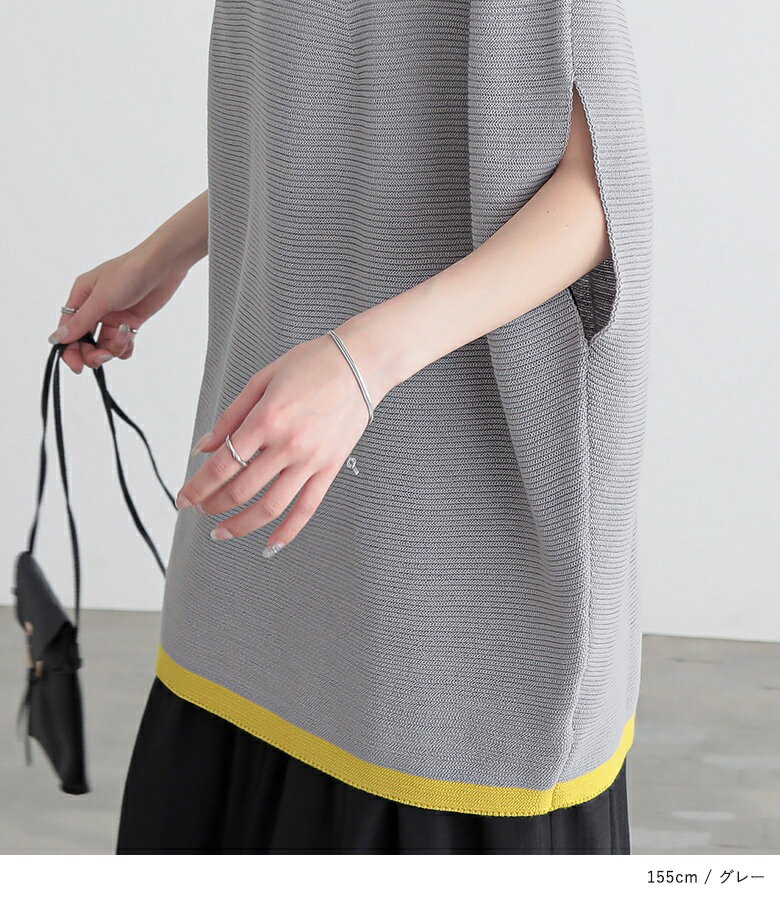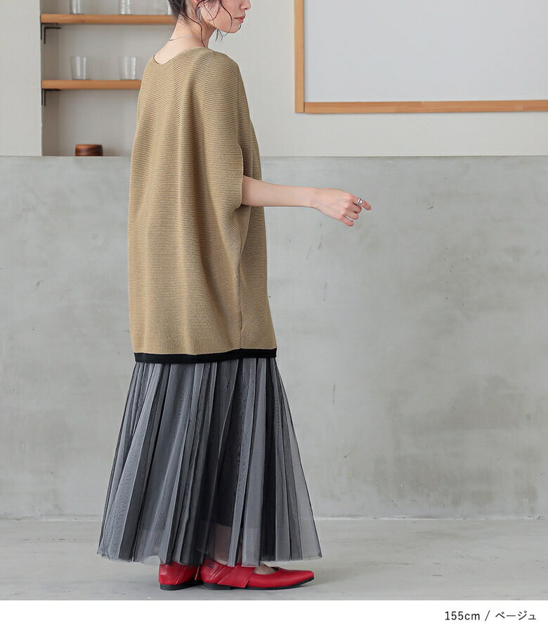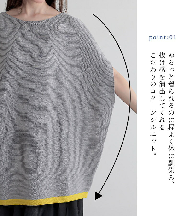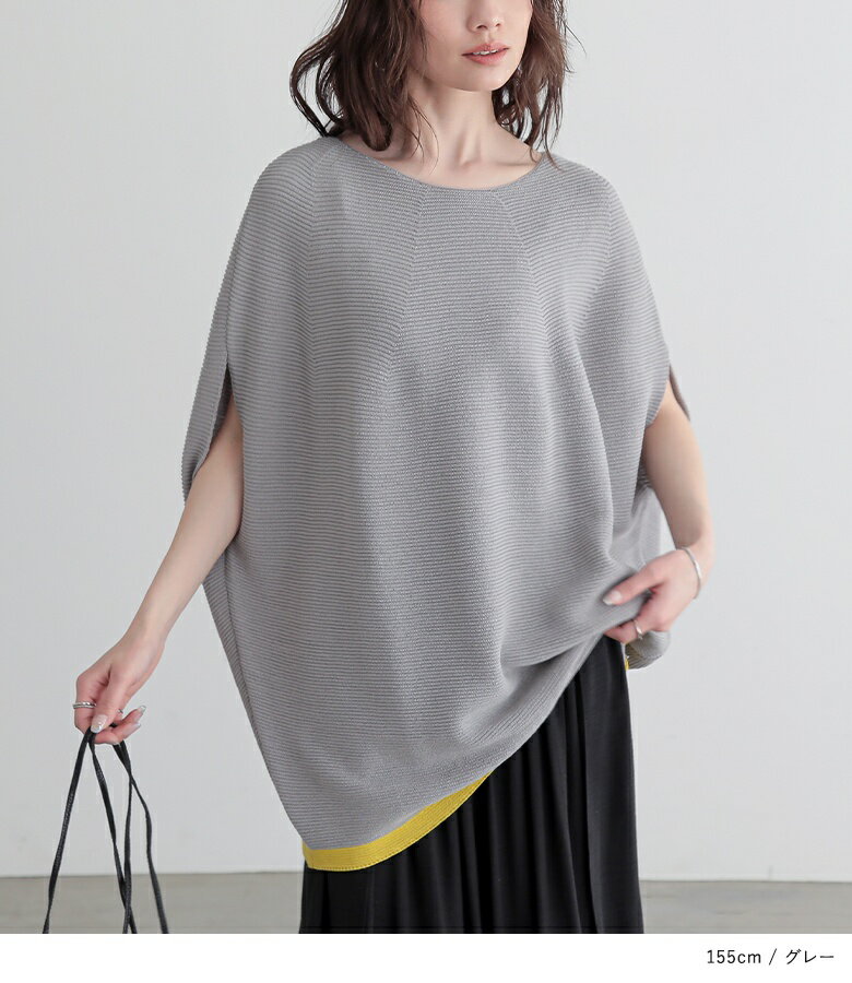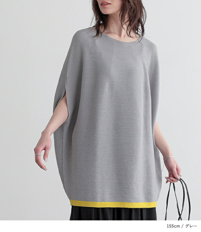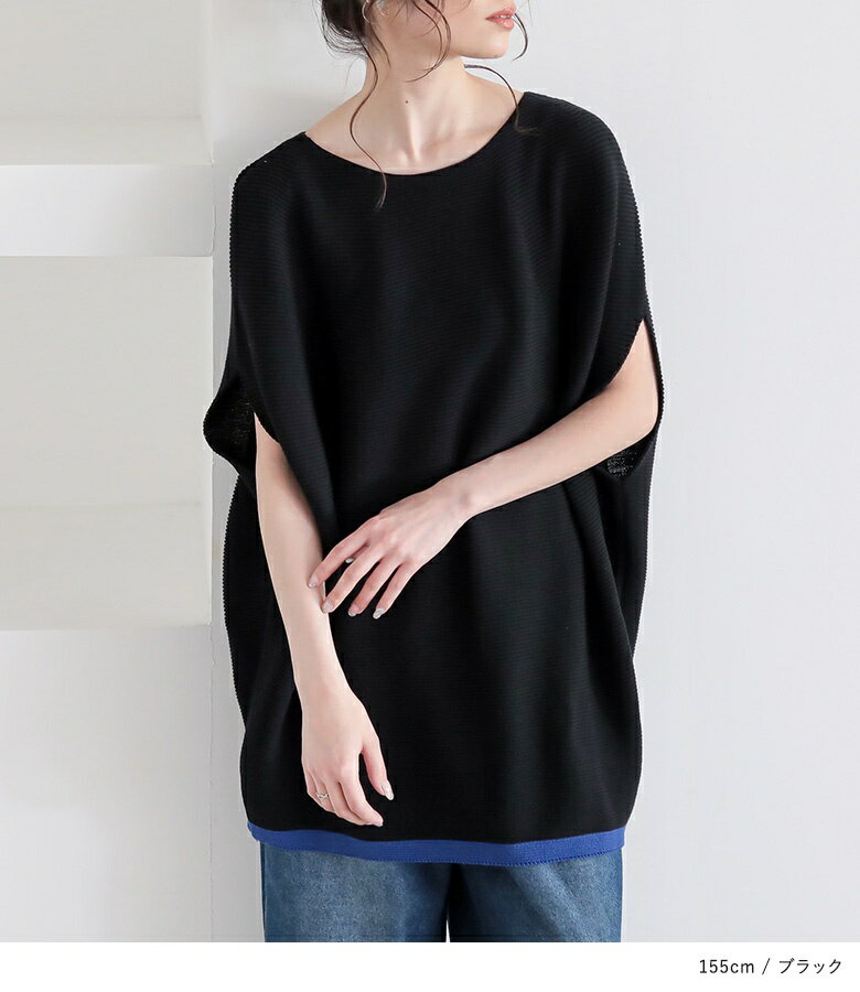【5/26 12:59迄クーポンで20%OFF】ニット レディース トップス 半袖 サマーニット コクーン 配色 ライン ボートネック 綿混 プルオーバー レイヤード 重ね着 セーター ミドル丈 チュニック丈 無地 春 夏 オシャレウォーカー【メール便不可】【30】