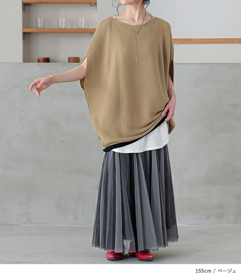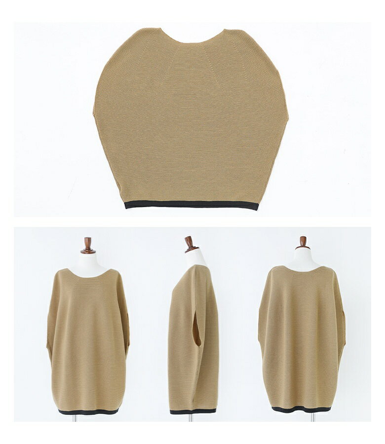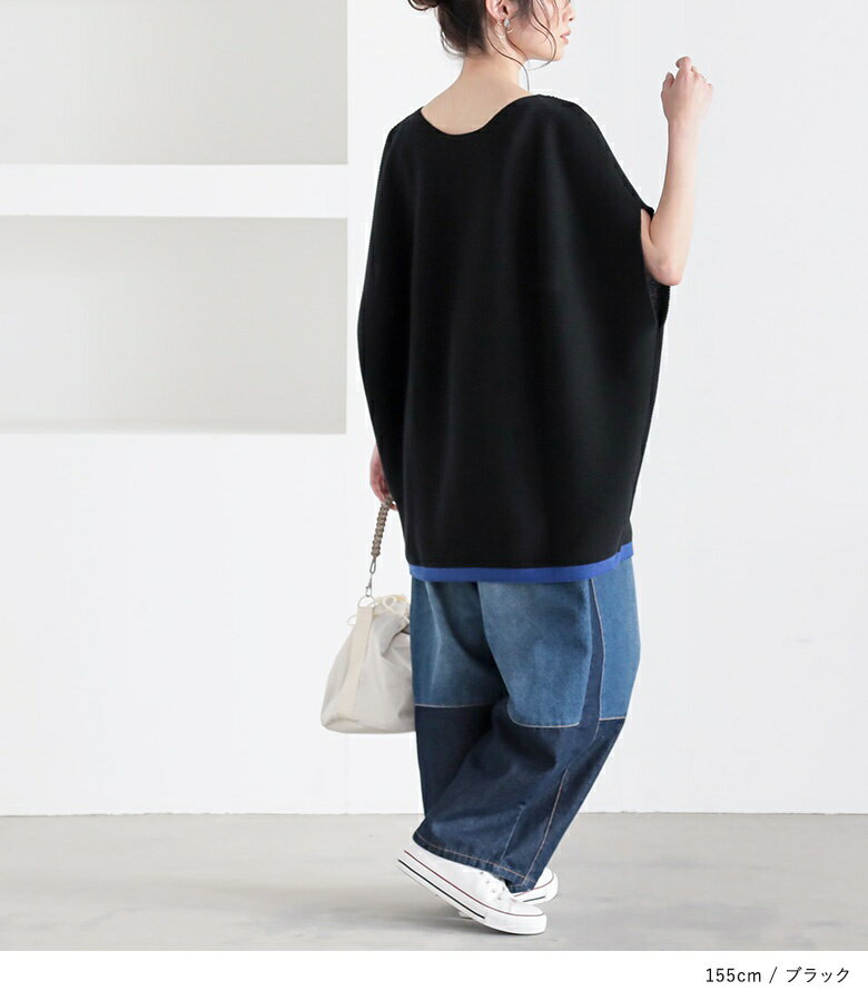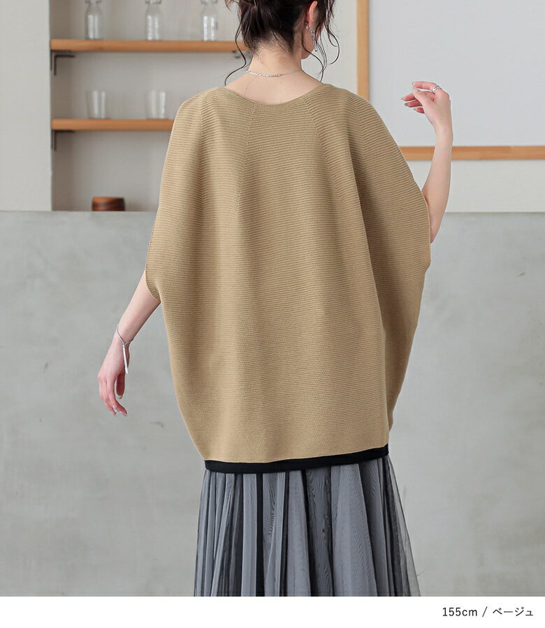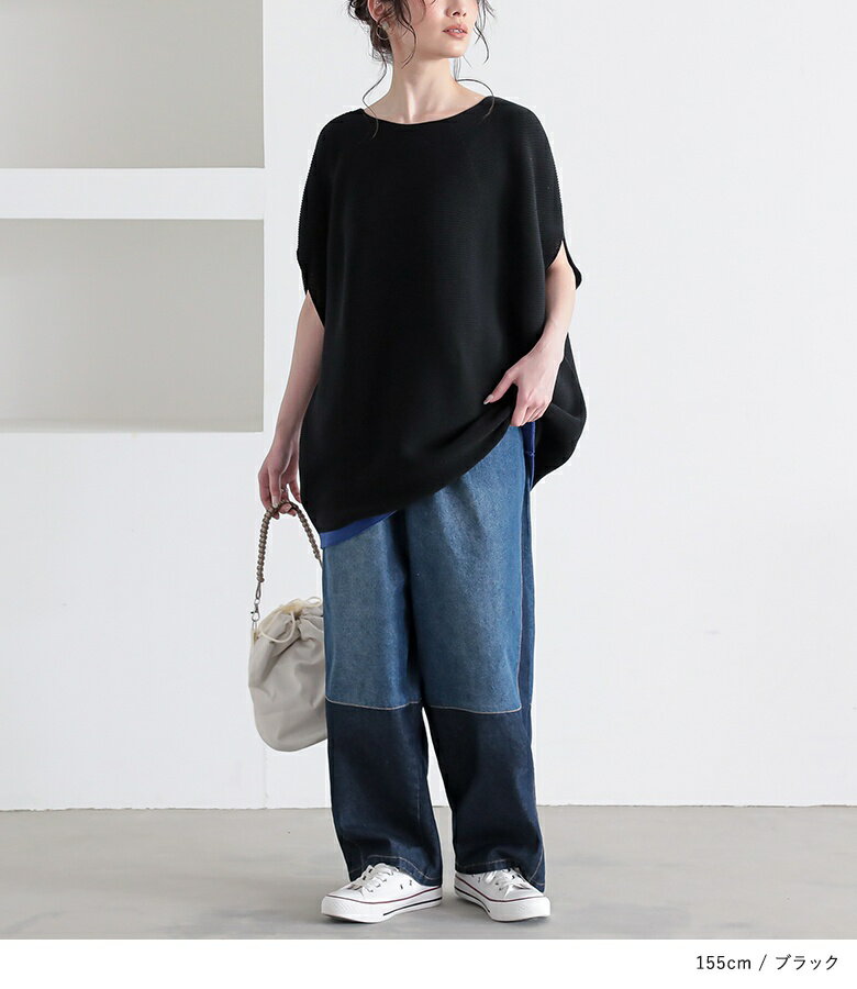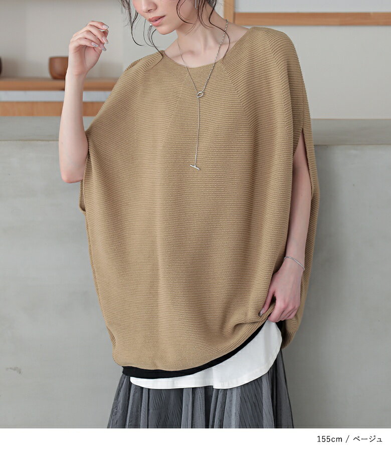【5/26 12:59迄クーポンで20%OFF】ニット レディース トップス 半袖 サマーニット コクーン 配色 ライン ボートネック 綿混 プルオーバー レイヤード 重ね着 セーター ミドル丈 チュニック丈 無地 春 夏 オシャレウォーカー【メール便不可】【30】