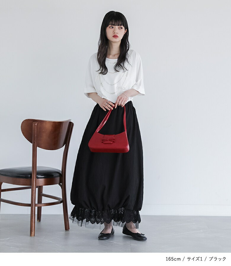 【予約期間限定!6,980円(税込)→6,282円(税込)】スカート レディース ボトムス ロング丈 マキシ丈 バルーン レース チュール ウエストゴム ウエスト紐 裏地付き ゆったり 着回し 春 夏 オシャレウォーカー【メール便不可】【30】