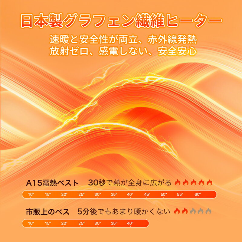 【COUPONで3,580円~!超安SALE】 電熱ベスト バッテリー付き 楽天1位 日本製繊維ヒーター 15箇所発熱 ヒーター 5秒速暖 Max 65℃ 電熱ジャケット ベスト 3段階調温 ヒーターベスト usb 電気ベスト 電熱ウェア 発熱 防寒 M L XL XXL 防寒服 防寒対策