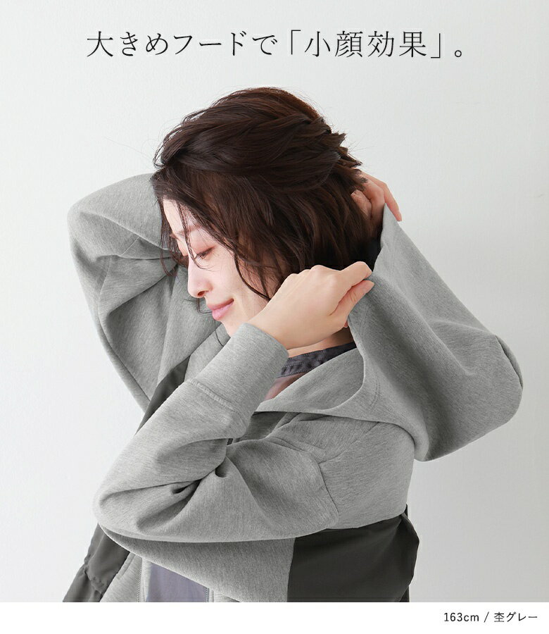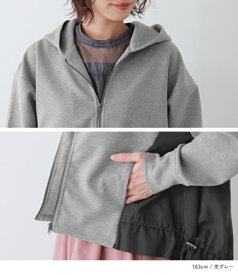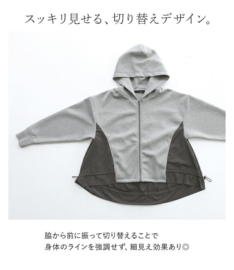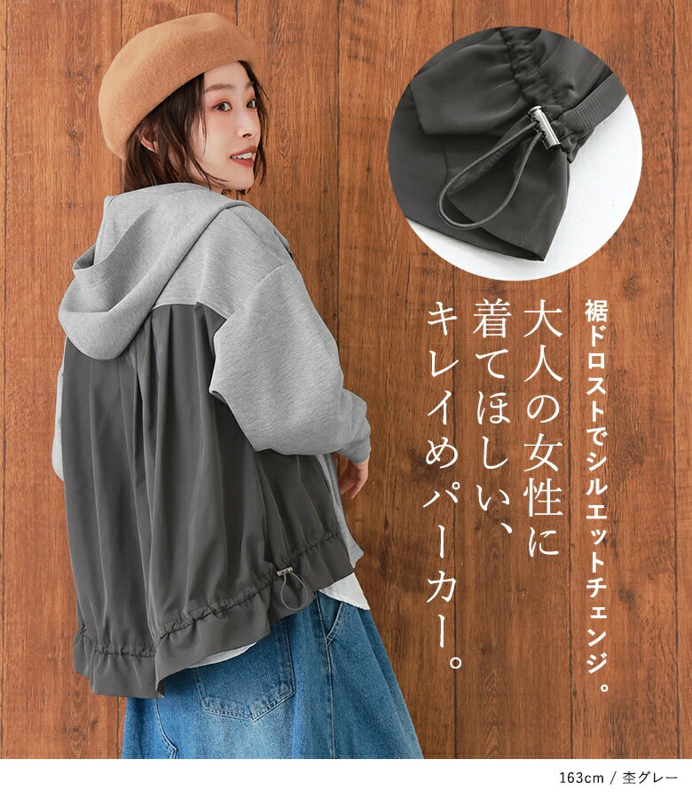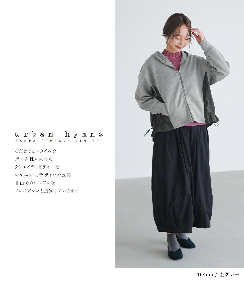 2点で10%オフクーポン有★パーカー レディース 長袖 秋 冬 アウター ドッキング フード 異素材スウェット 異素材 ドロスト スッキリ 体型カバー カジュアル キレイめ 大人 urban hymns アーバンヒムス OUKA オウカ【メール便不可】【20】