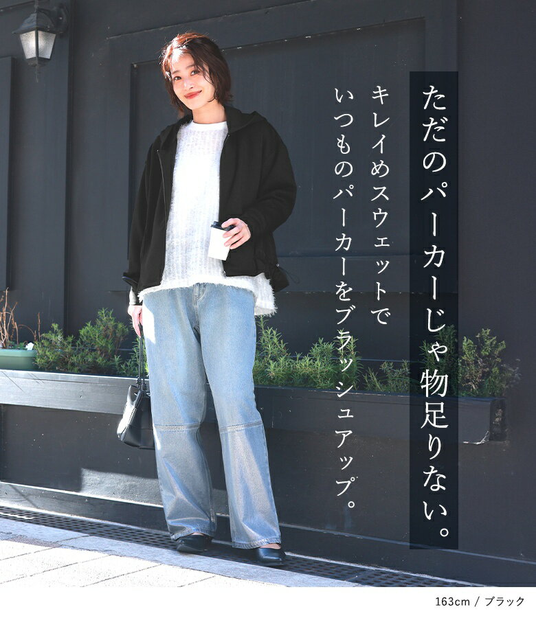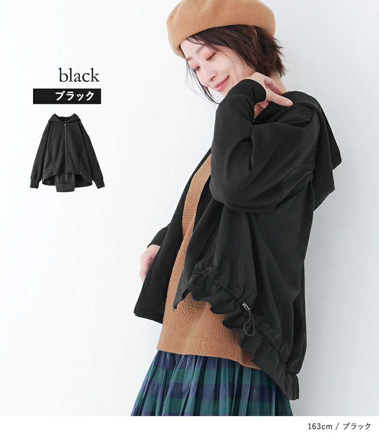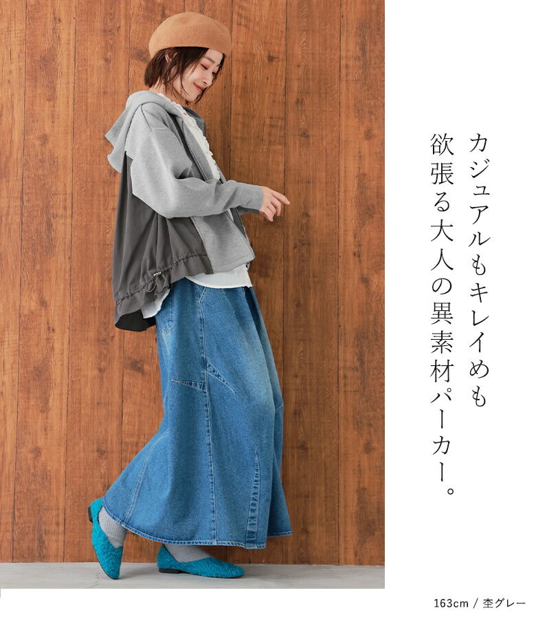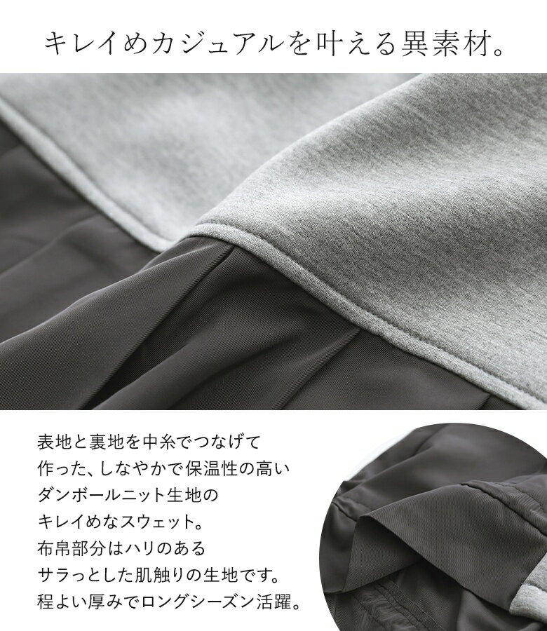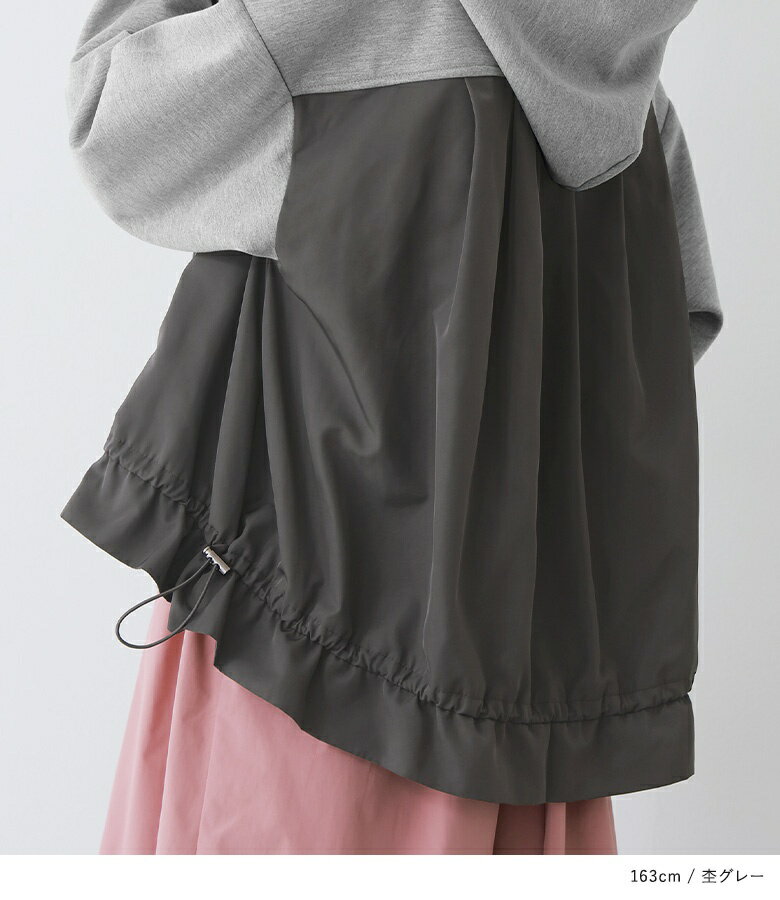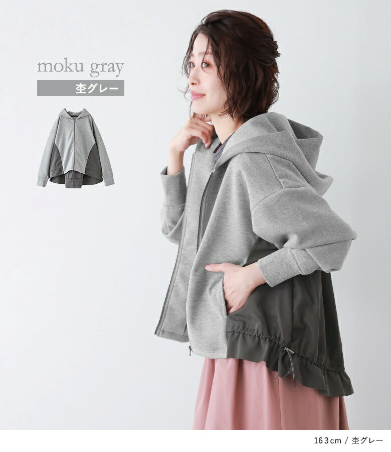 2点で10%オフクーポン有★パーカー レディース 長袖 秋 冬 アウター ドッキング フード 異素材スウェット 異素材 ドロスト スッキリ 体型カバー カジュアル キレイめ 大人 urban hymns アーバンヒムス OUKA オウカ【メール便不可】【20】