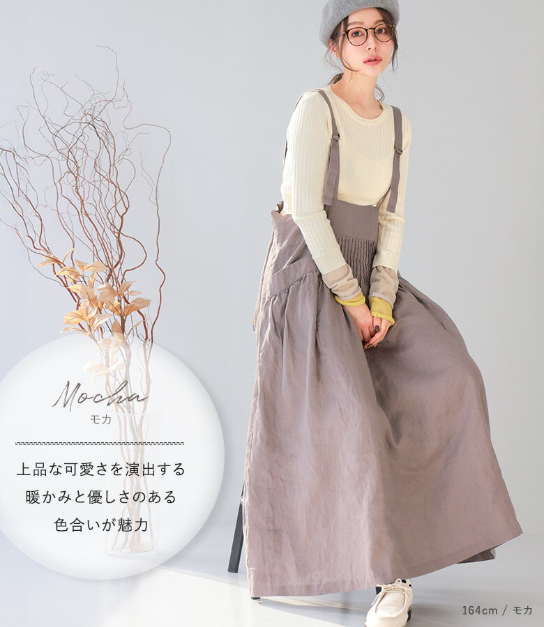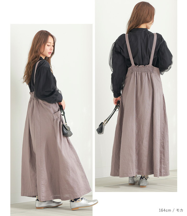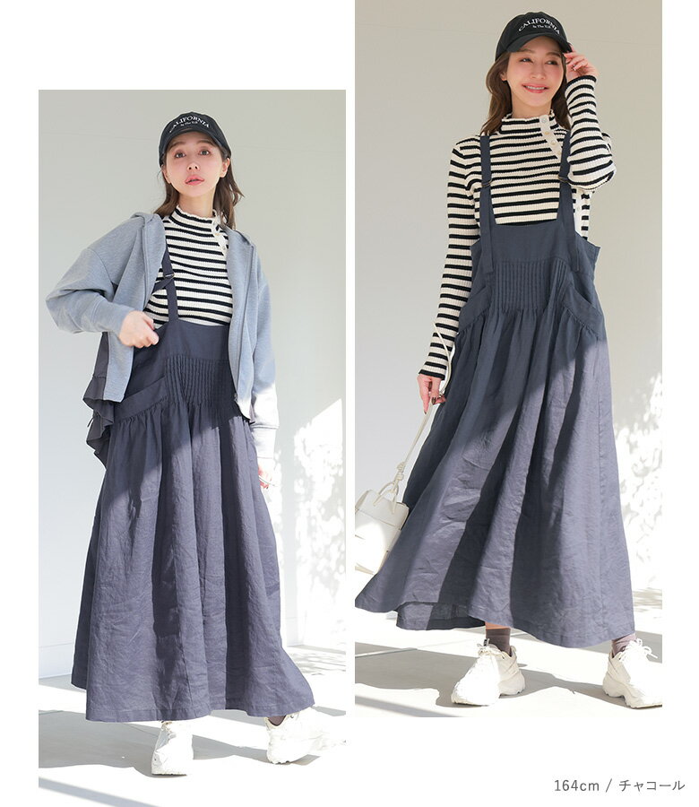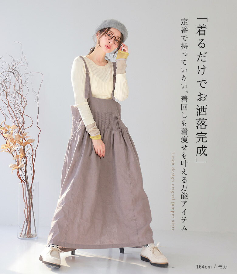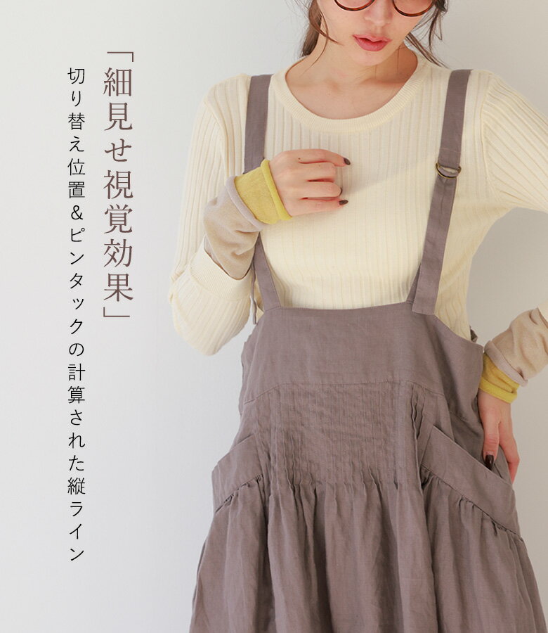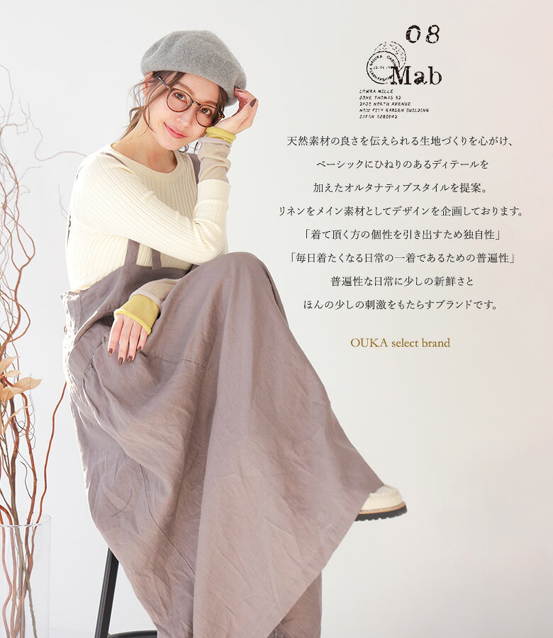 【全品★送料無料】 ジャンパースカート ワンピース レディース 春 夏 秋 冬 オールシーズン ジャンスカ サロペット ロング ピンタック 麻100% リネン100% 数量限定 コラボ 08mab ゼロハチマブ OUKA オウカ【メール便不可】【20】