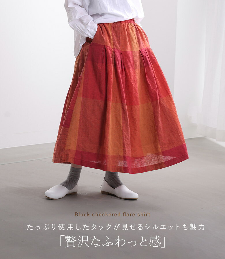 お得300円OFFクーポン有★ スカート レディース 春 夏 秋 ロング丈 チェックスカート ロングスカート ブロックチェック フレア タック ウエストゴム 裏地付き ポケット カジュアル D*g*y ディージーワイ OUKA オウカ【メール便不可】【30】