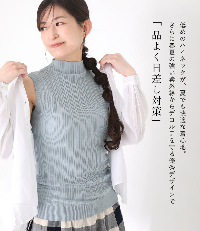 【全品★送料無料】 ニット トップス レディース 春 夏 ノースリーブ 袖なし リブ メローネック ハイネック コットン100% チクチクしない 薄手 軽い 重ね着 素肌ニット 08Mab ゼロハチマブ OUKA オウカ※メール便可※【10】