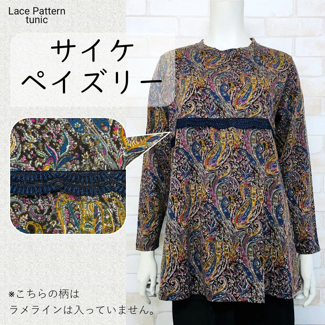 切替レースチュニック レディース ミセス 長袖 フリーサイズ LLサイズ 秋冬 レース 切替え チュニック 総柄プリント ラメ 花柄 柄豊富 Aライン 体型カバー プレゼント ギフト対応 送料無料 韓国製 ネコポス配送