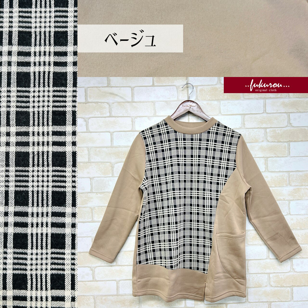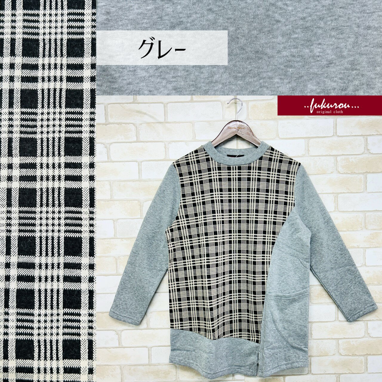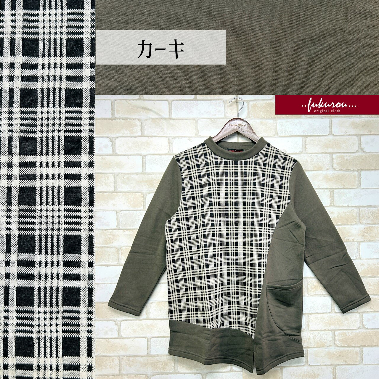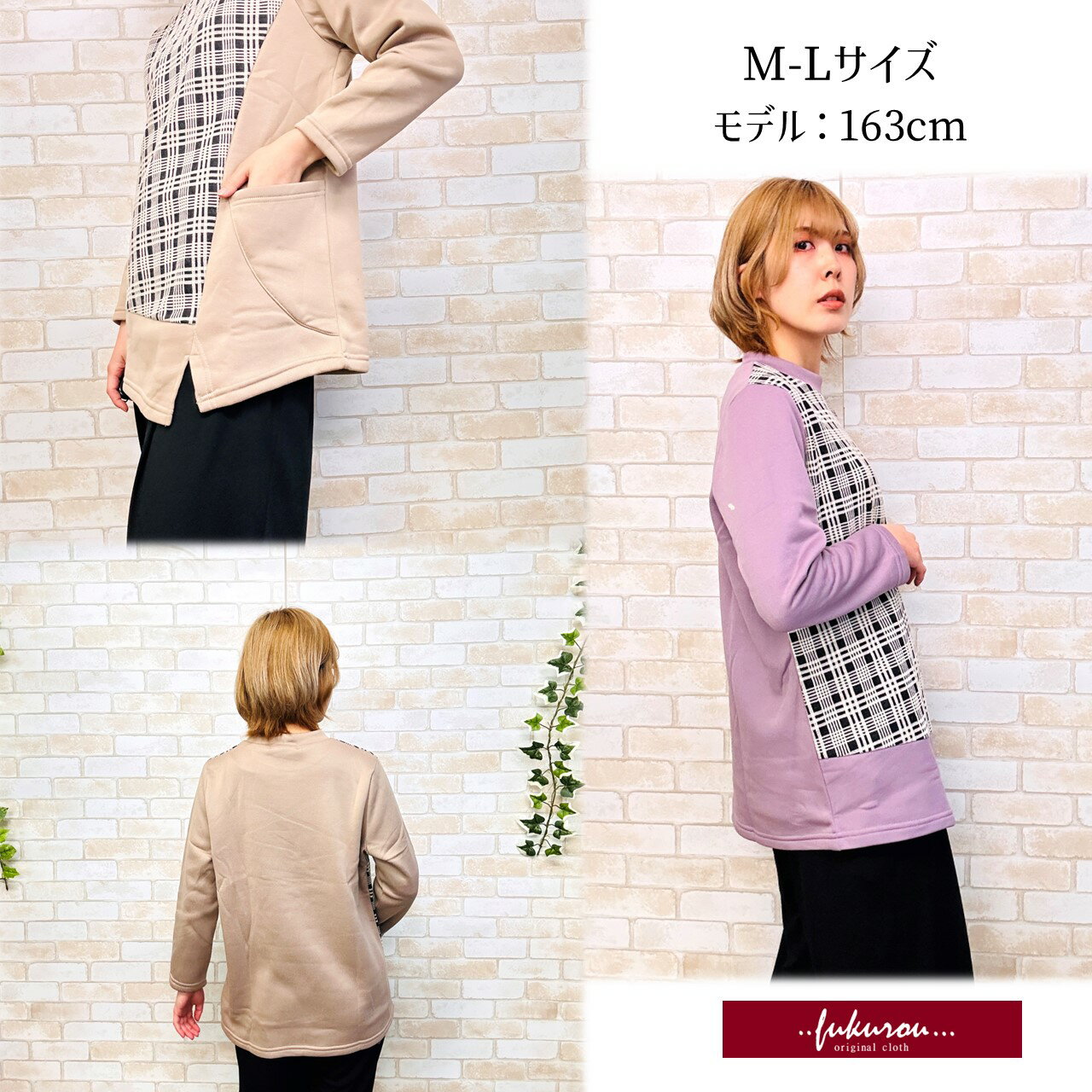 裏起毛 あったか チェック切替えチュニック レディース トップス チュニック チェック カットソー ミセス ポケット 秋冬 フリーサイズ M-L カラバリ豊富 長袖 送料無料